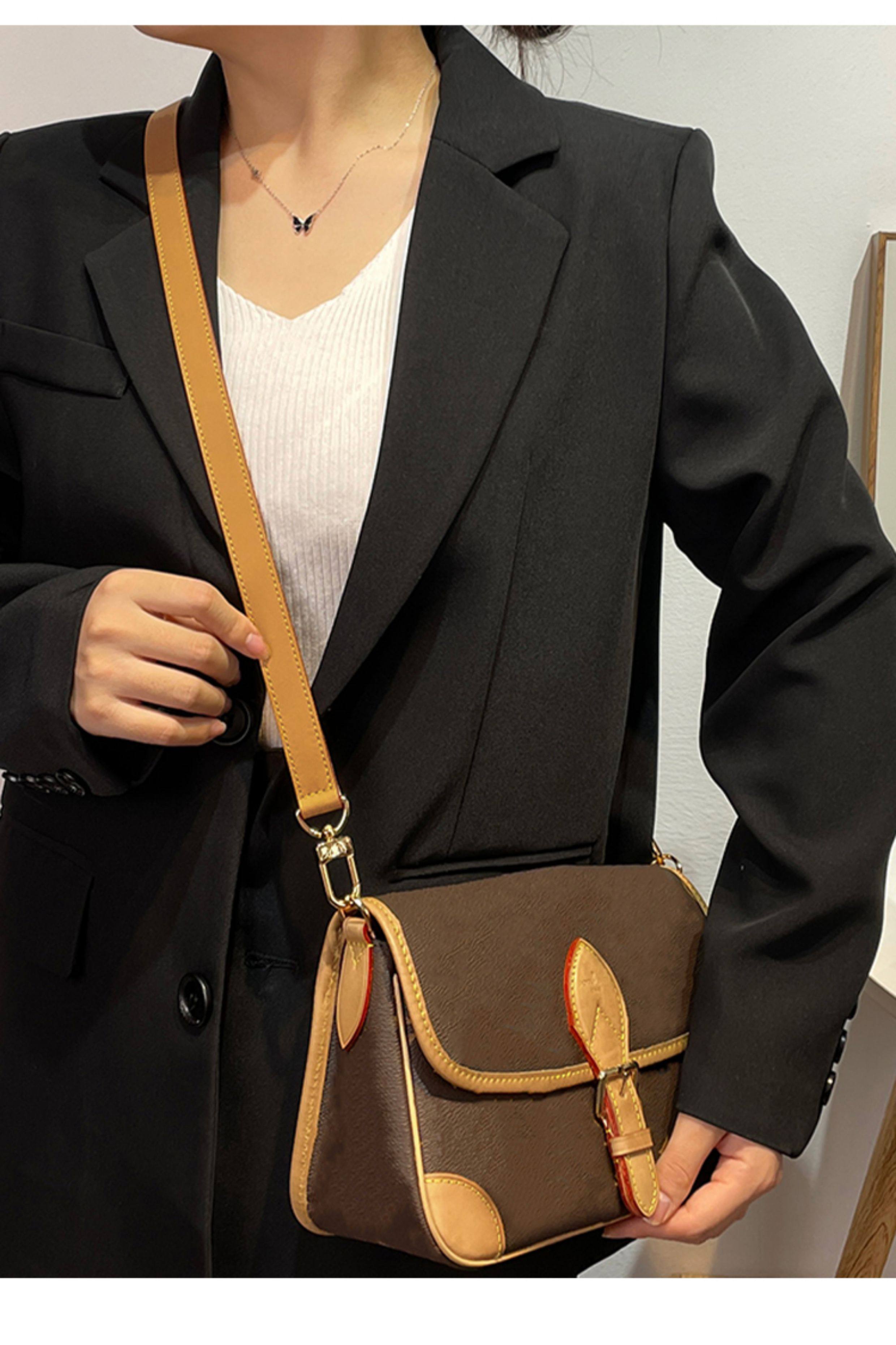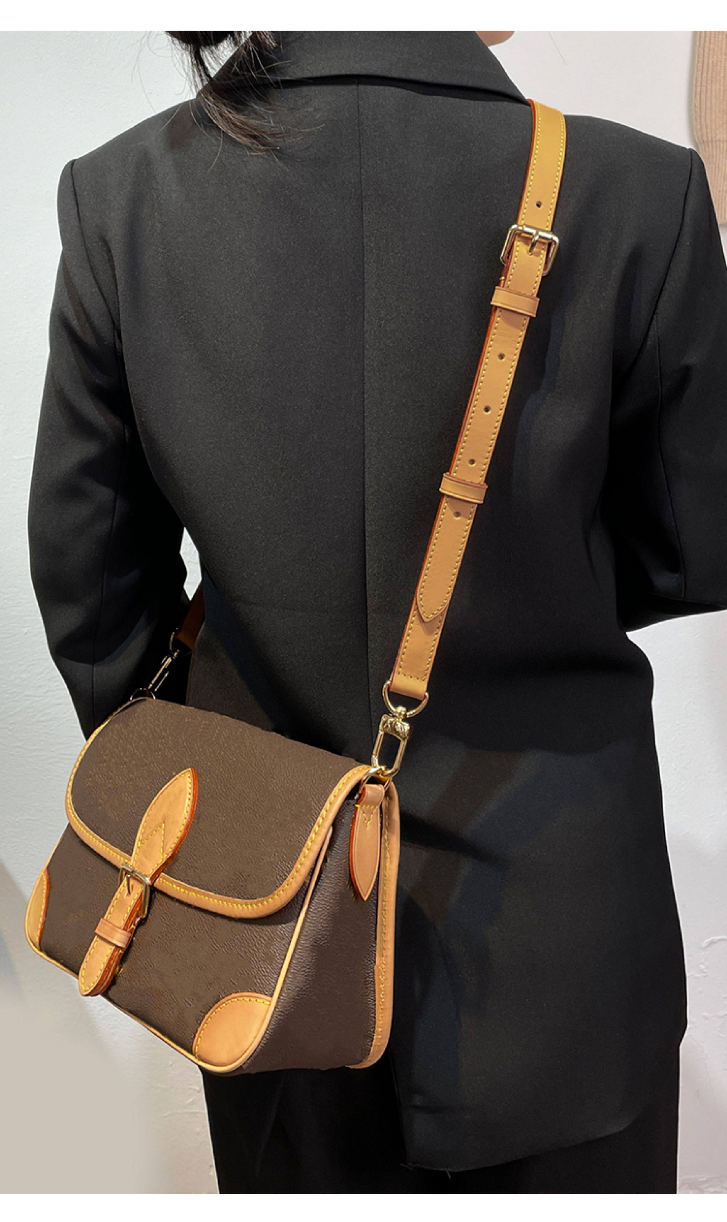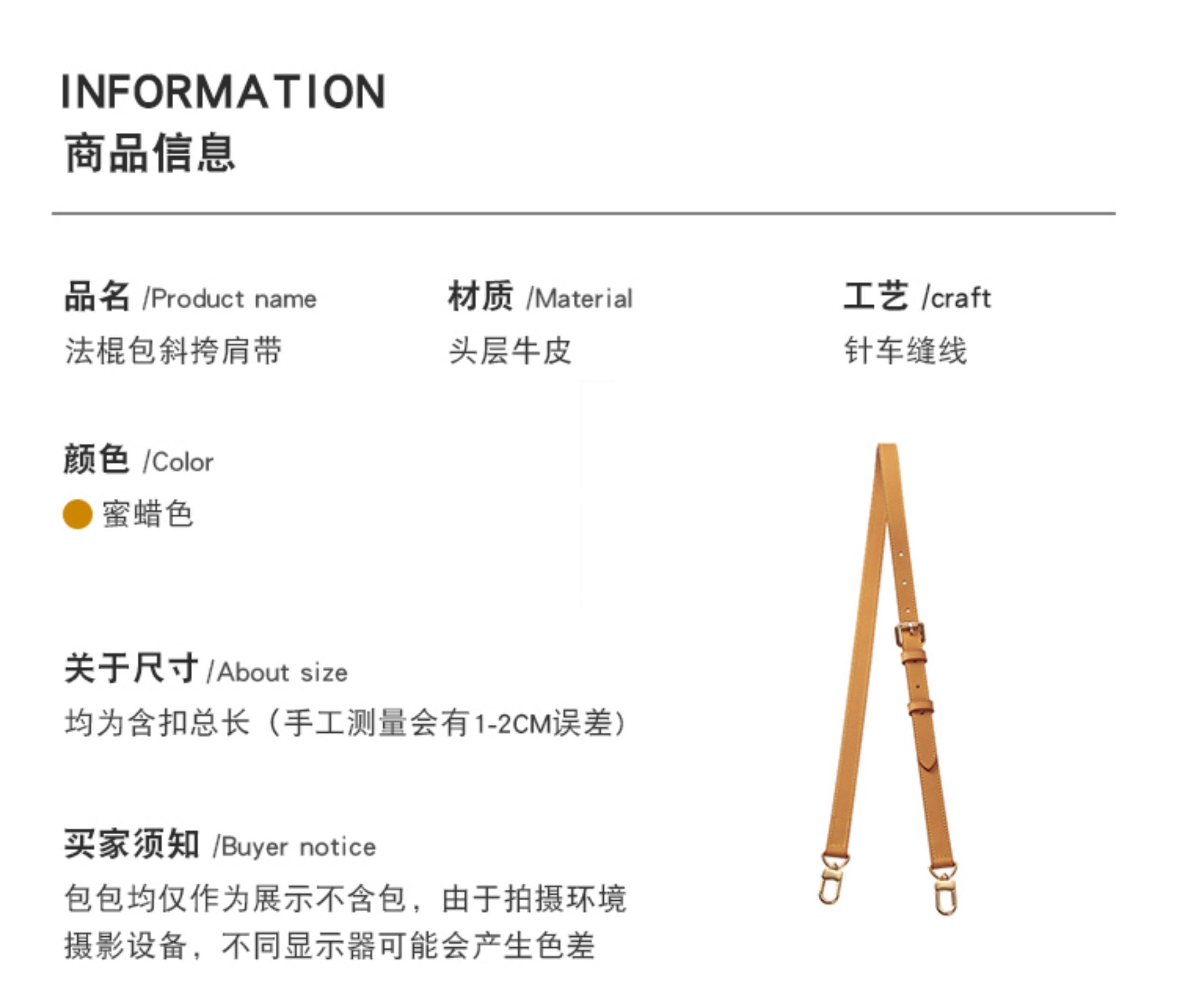 Suitable for Lv Diane Yellow Leather Baguette Bag Shoulder Strap Modification Vegetable-Tanned Leather Honey Wax Color Crossbody Bag Strap Accessories Sold Separately