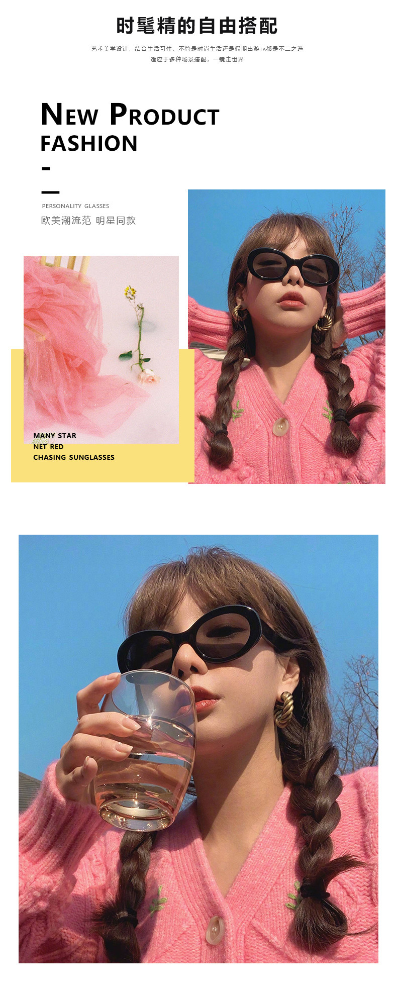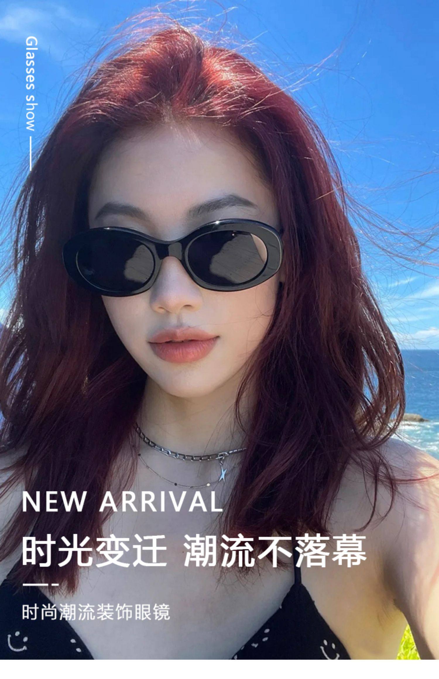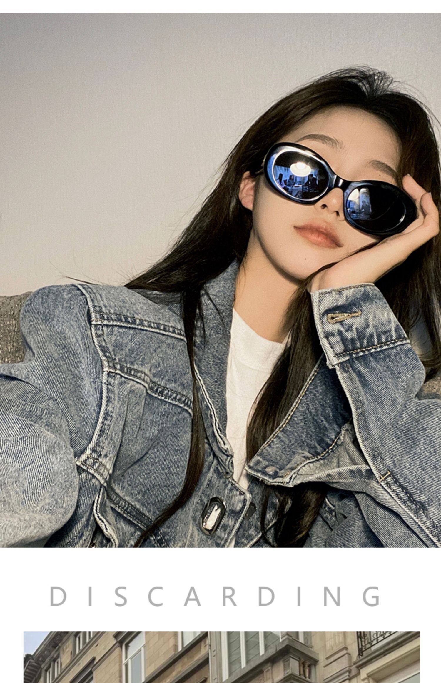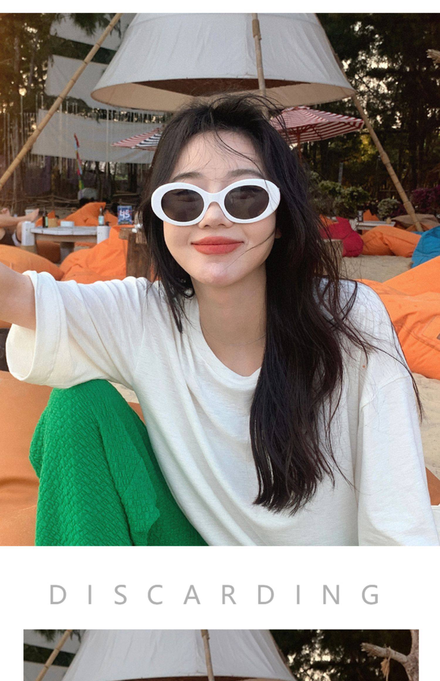 European and American retro oval high cheekbone sunglasses for women with small face, ins style internet celebrity anti-UV sunglasses