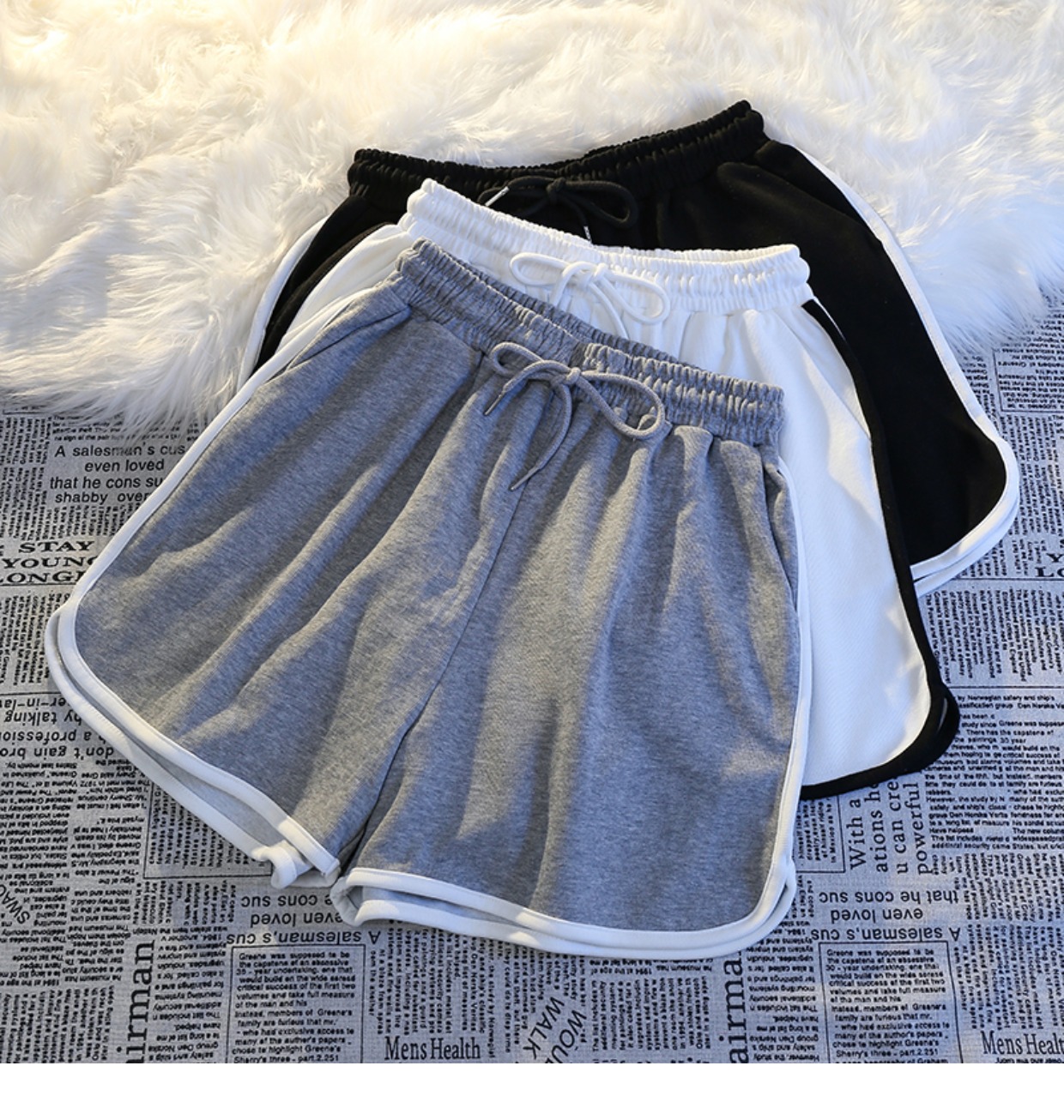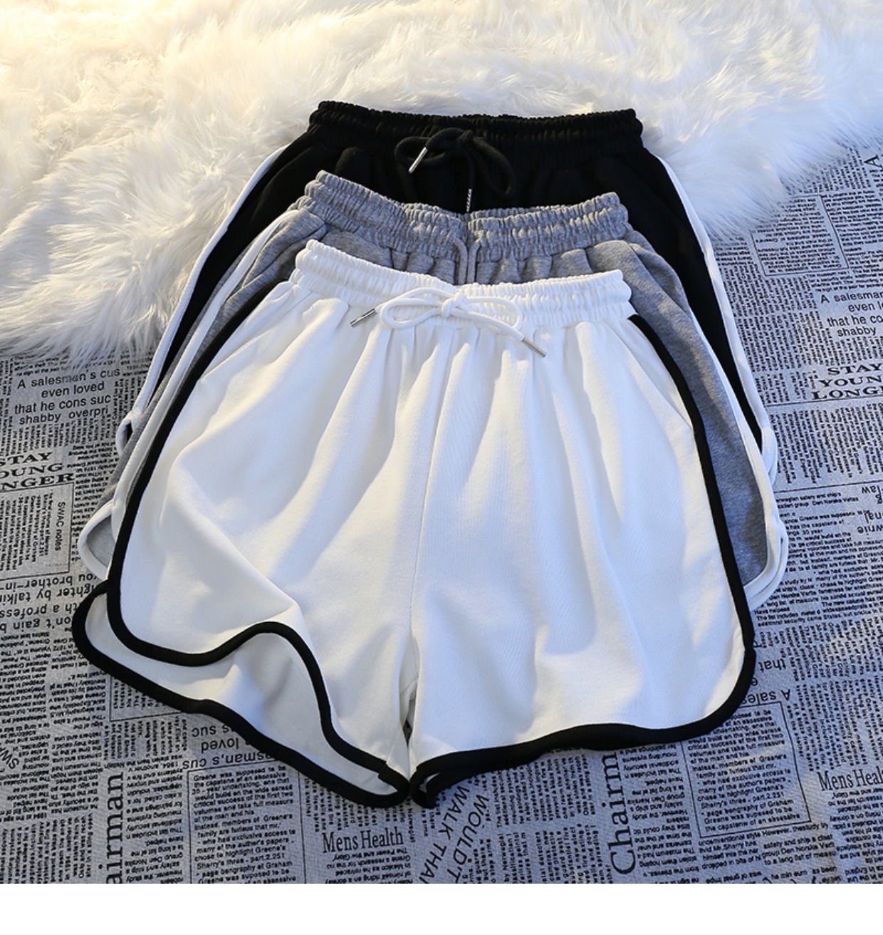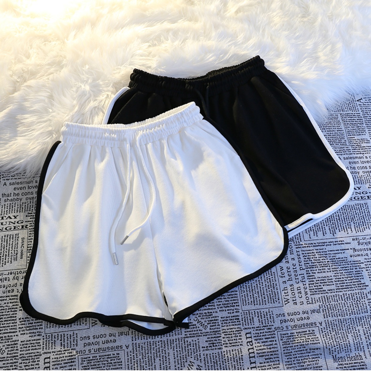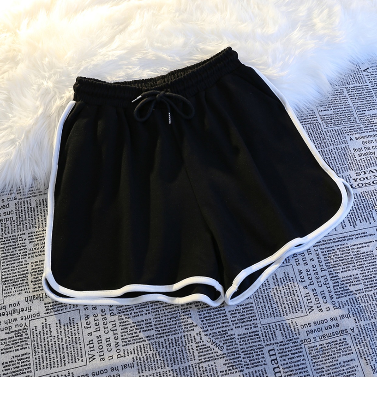 Pure Cotton Summer Black High-Waisted Sports Shorts for Women, Fitness Casual Shorts, Loose Home Sleep Shorts, Suitable for Wearing Outside, with Large Pockets