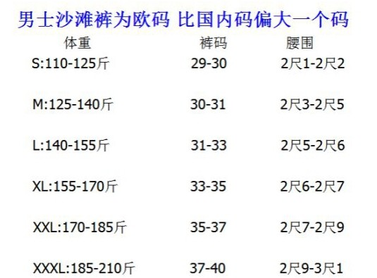 USA(inch) 28-30 30-32 32-34 34-38 38-42