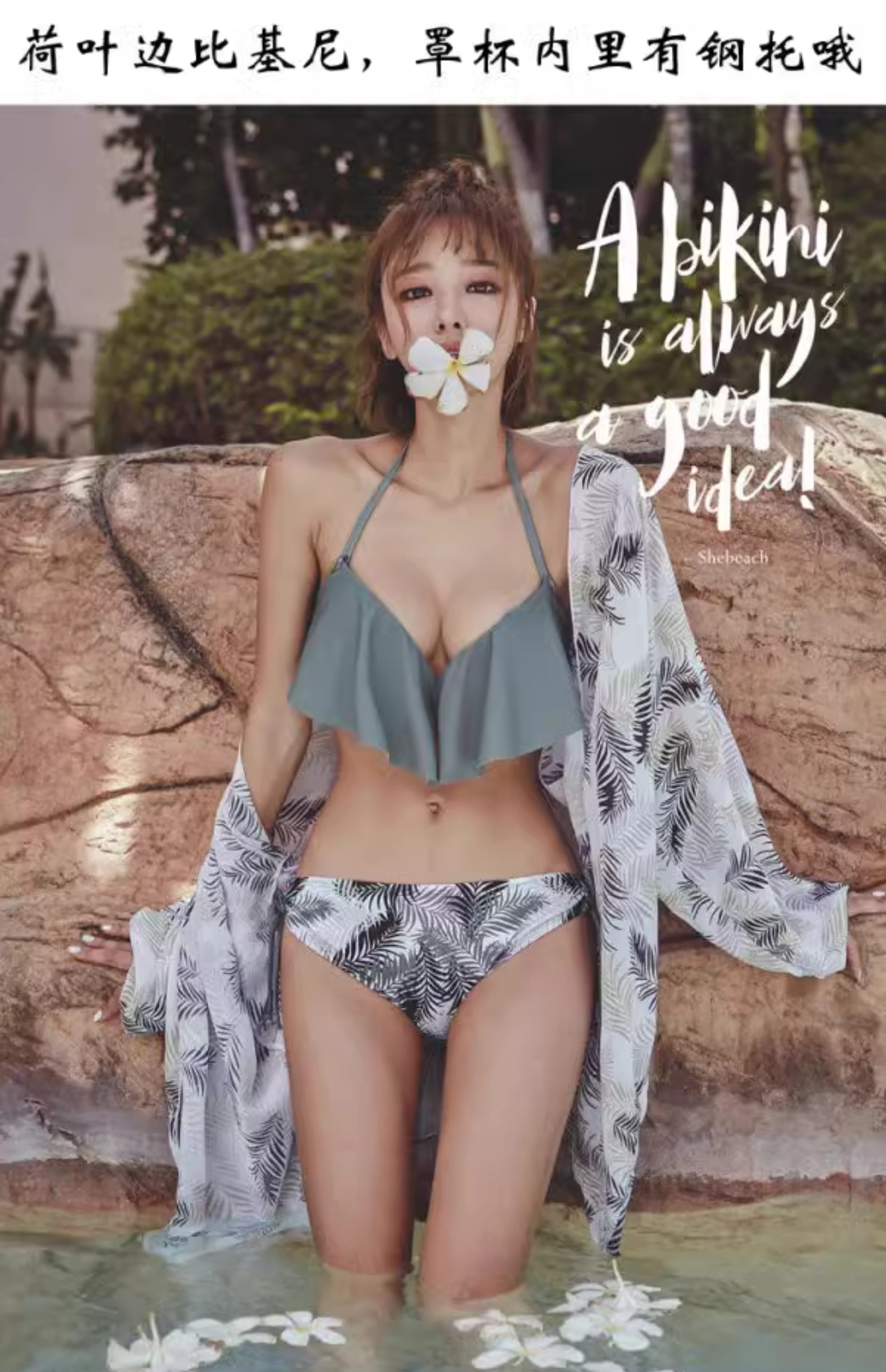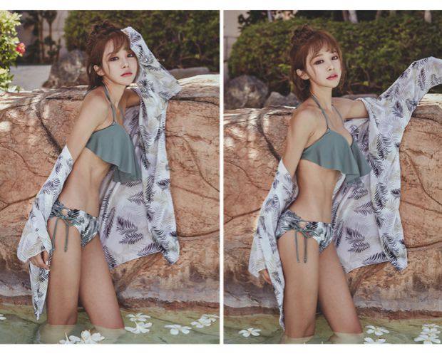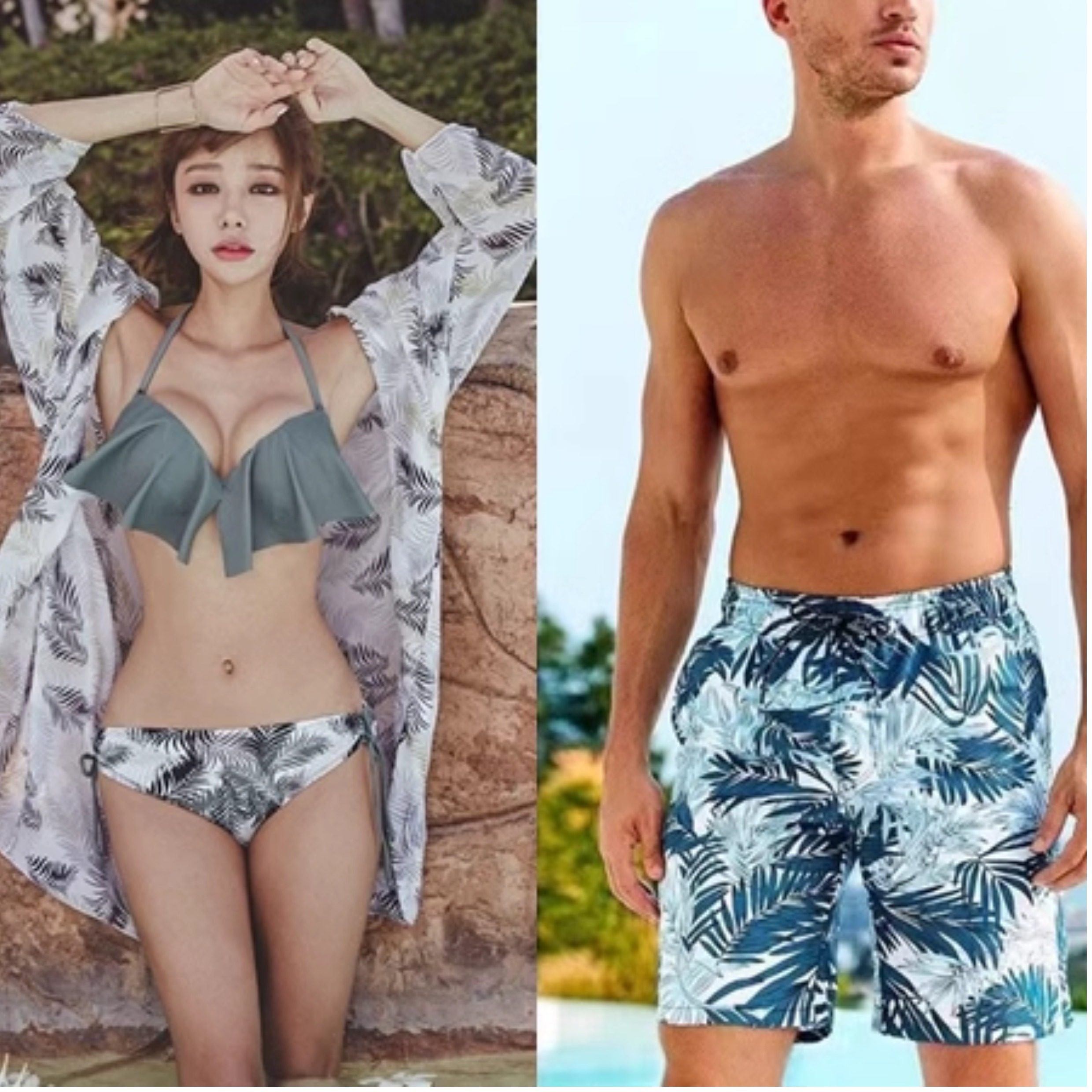 Sexy bikini swimsuit for women, sun protection cover-up, three-piece set to cover belly, small breasts, push up, hot spring couple swimsuit, swimming trunks for men