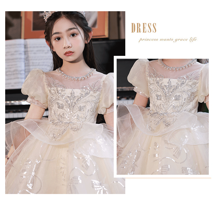 夏天超仙女童公主裙高端洋气儿童礼服裙十岁生日女孩主持钢琴演奏