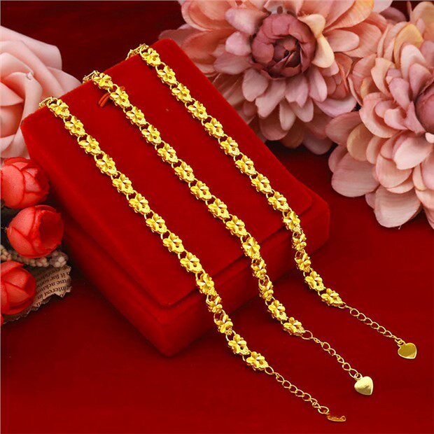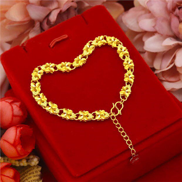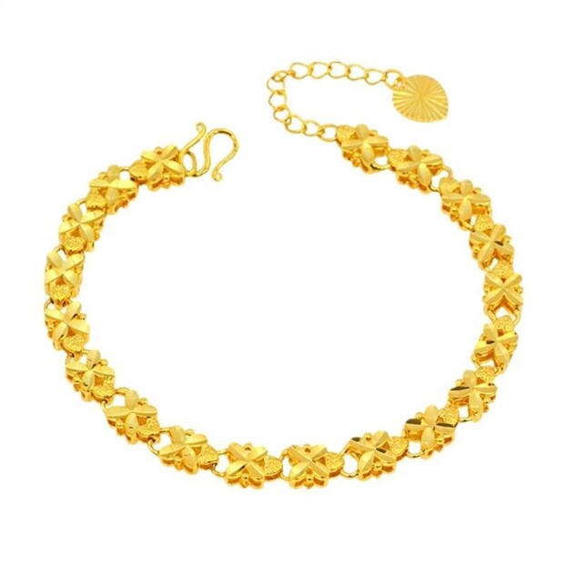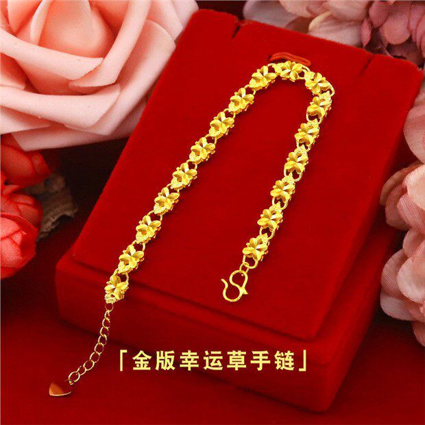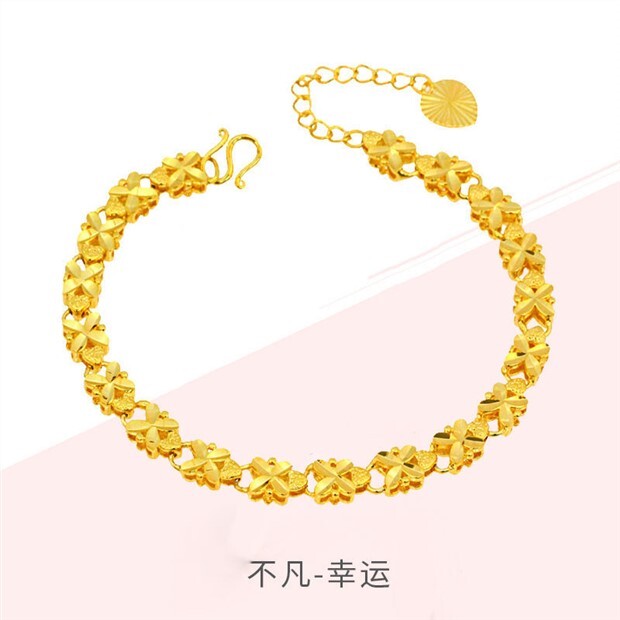 Hong kong genuine gold bracelet women's gold transfer bead bracelet gold four-leaf clover bracelet gift