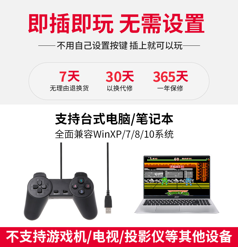 Laptop classic game controller usb double computer red and white machine FC nostalgic arcade wired joystick handle