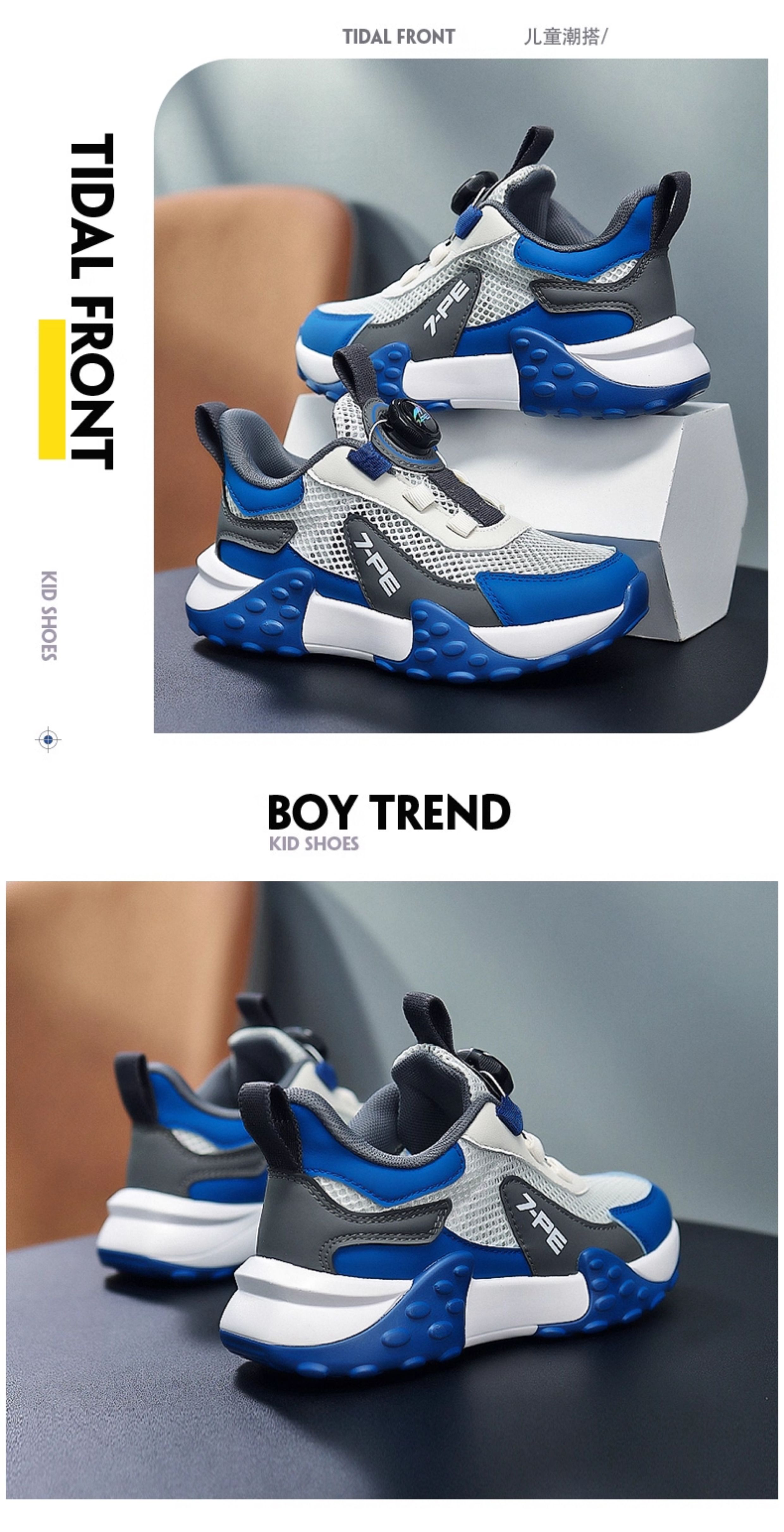 Qibohui 2025 Spring/Summer New Boys' Shoes, Medium and Large Children's Mesh Breathable Running Shoes, Single Mesh Children's Sports Shoes