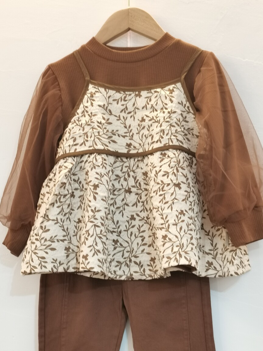 Autumn baby girl's three-piece suit with maillard style bootcut pants and exquisite western style suit