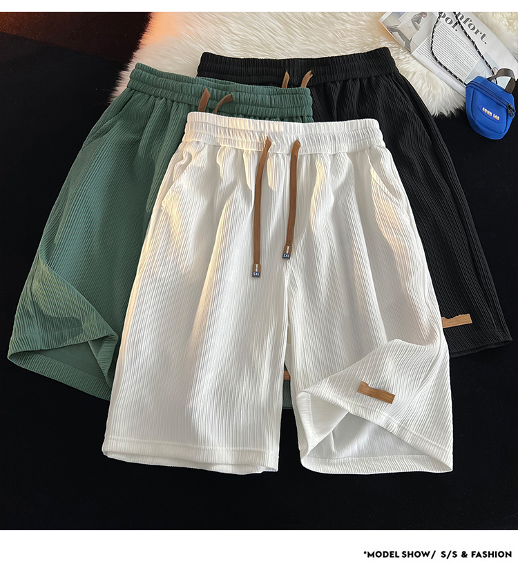 Ice Silk Casual Shorts for Men, Summer Thin Style, American Trendy Quick-Drying Sports Loose Pants, Large Size Beach Shorts