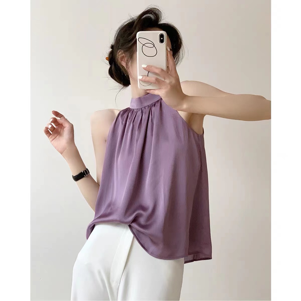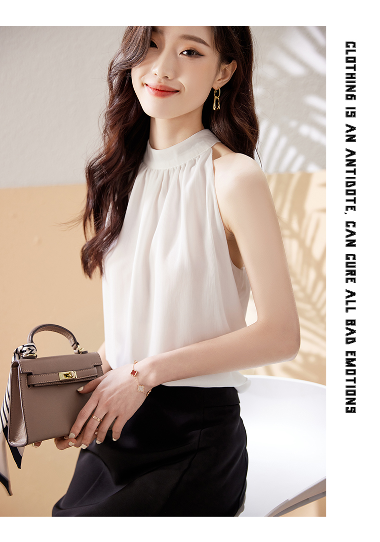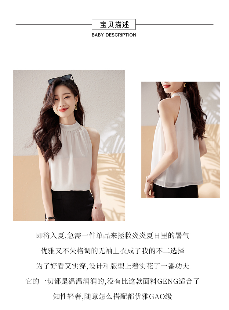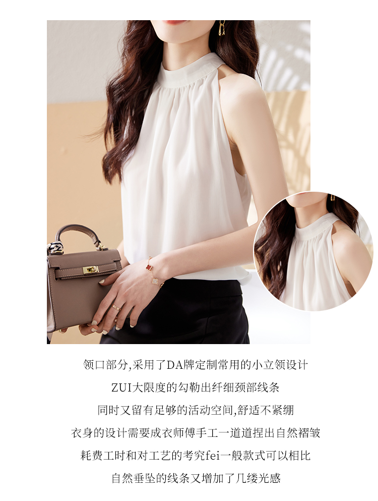 法式挂脖无袖雪纺衫女夏装2025年新款高级感时尚洋气性感漂亮小衫