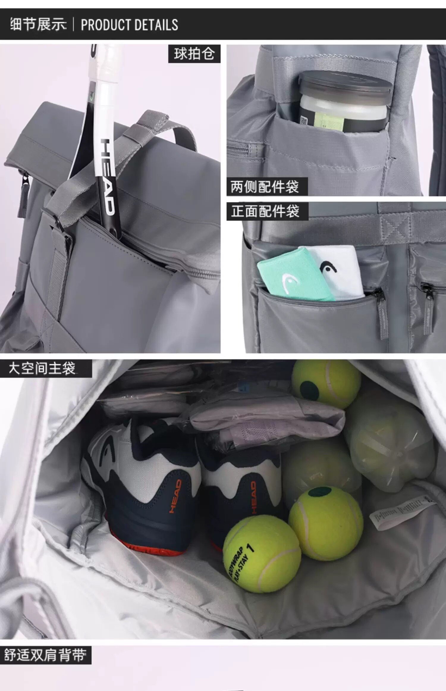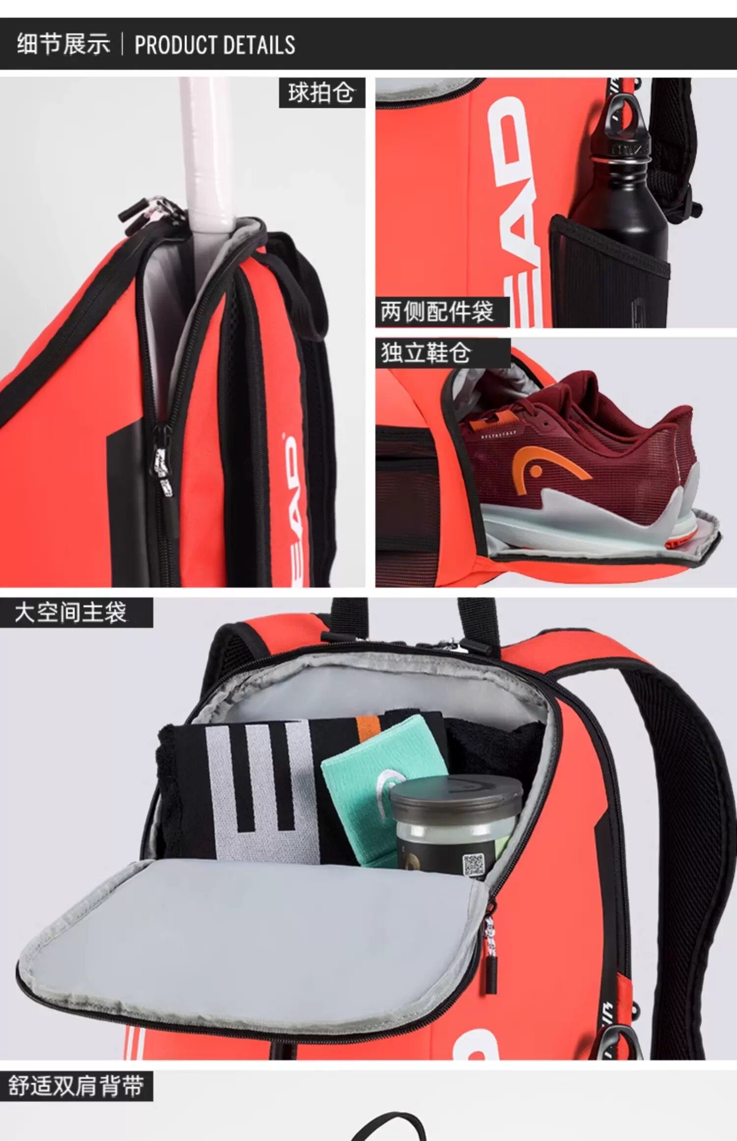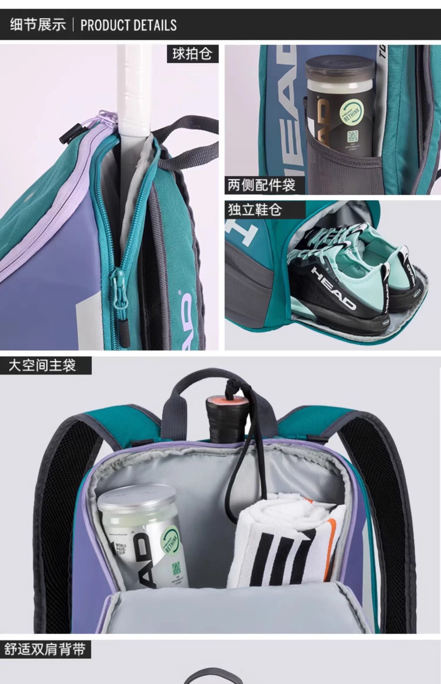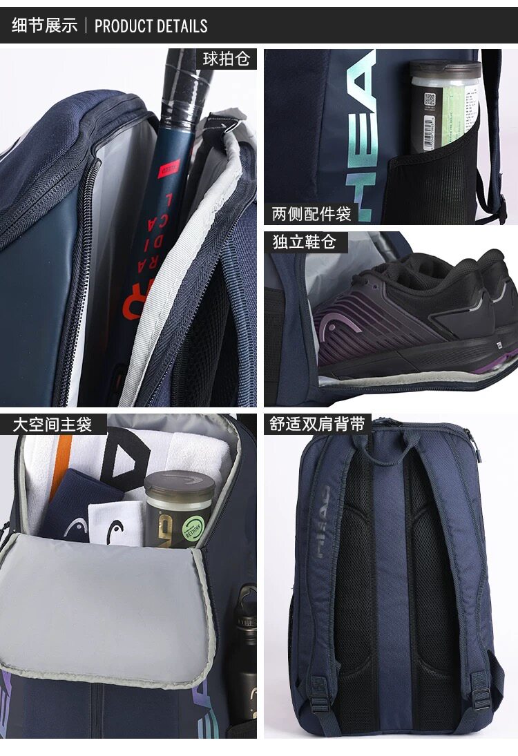 Genuine HEAD tennis bag, badminton bag, men's and women's single shoulder portable three-use multi-functional sports backpack