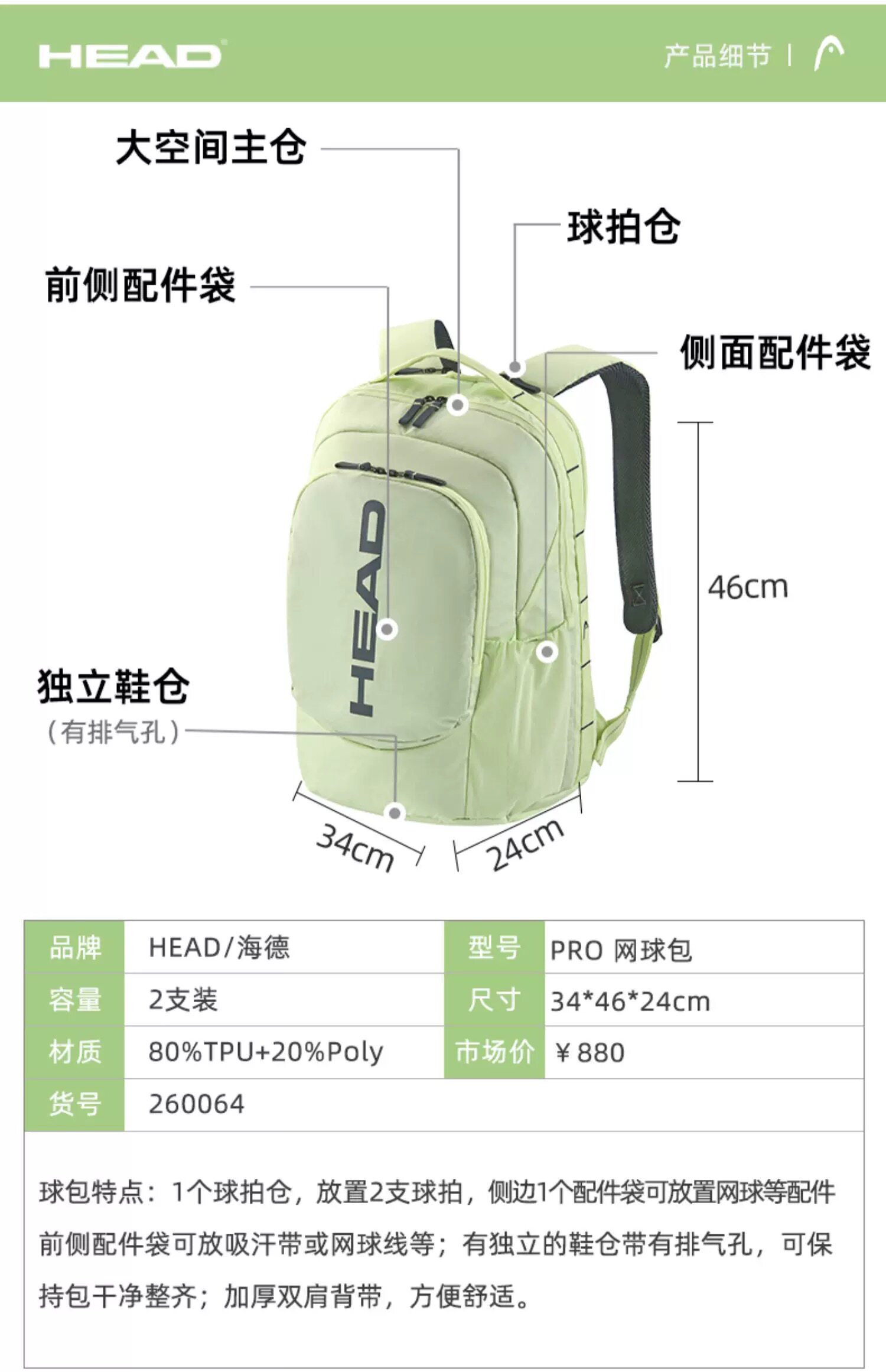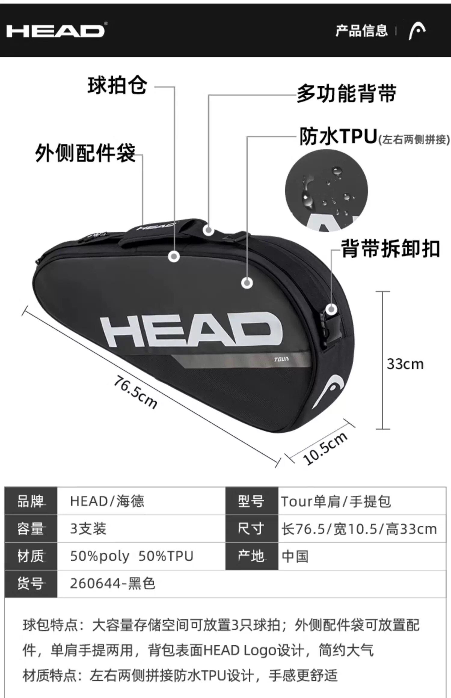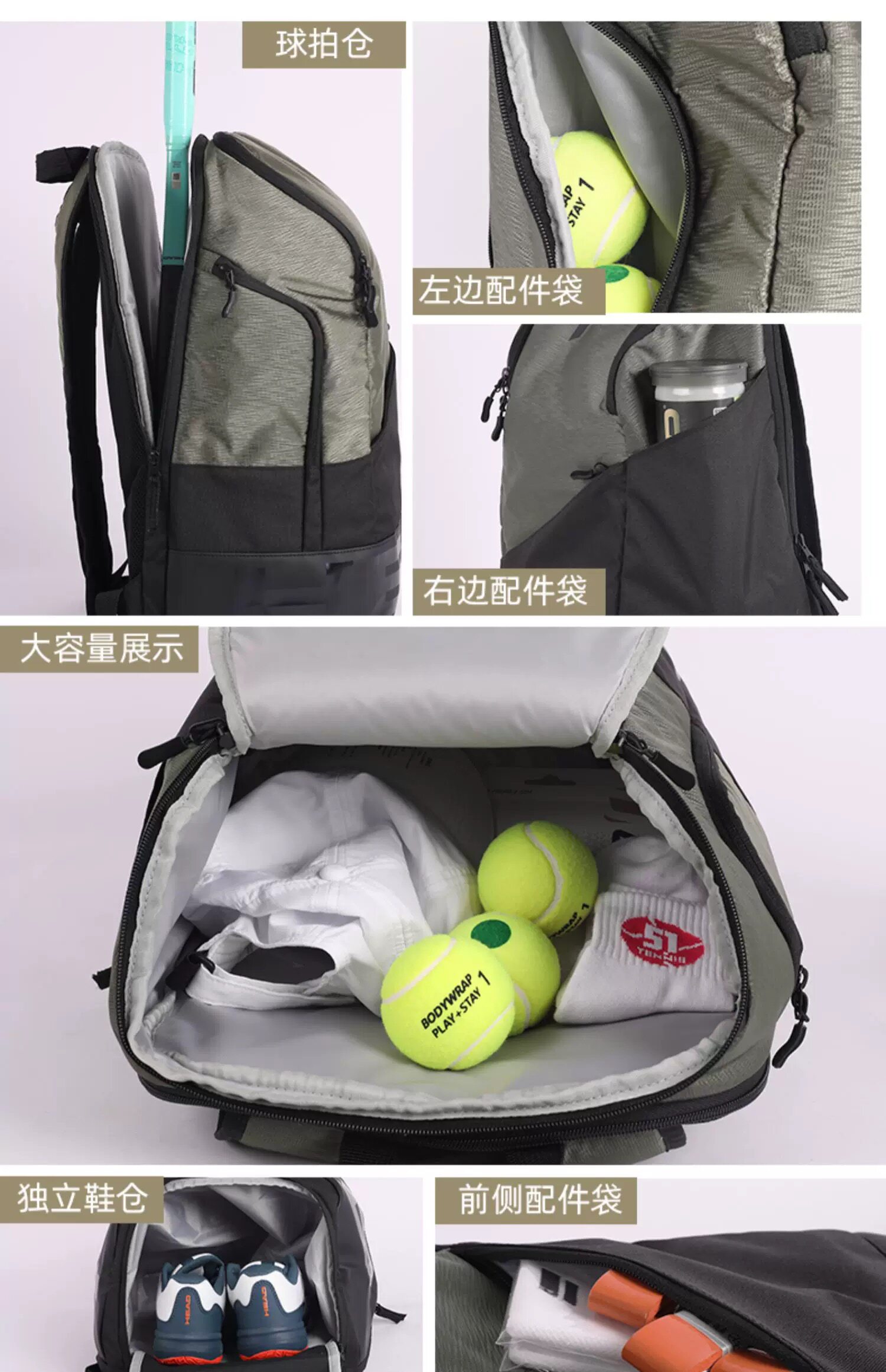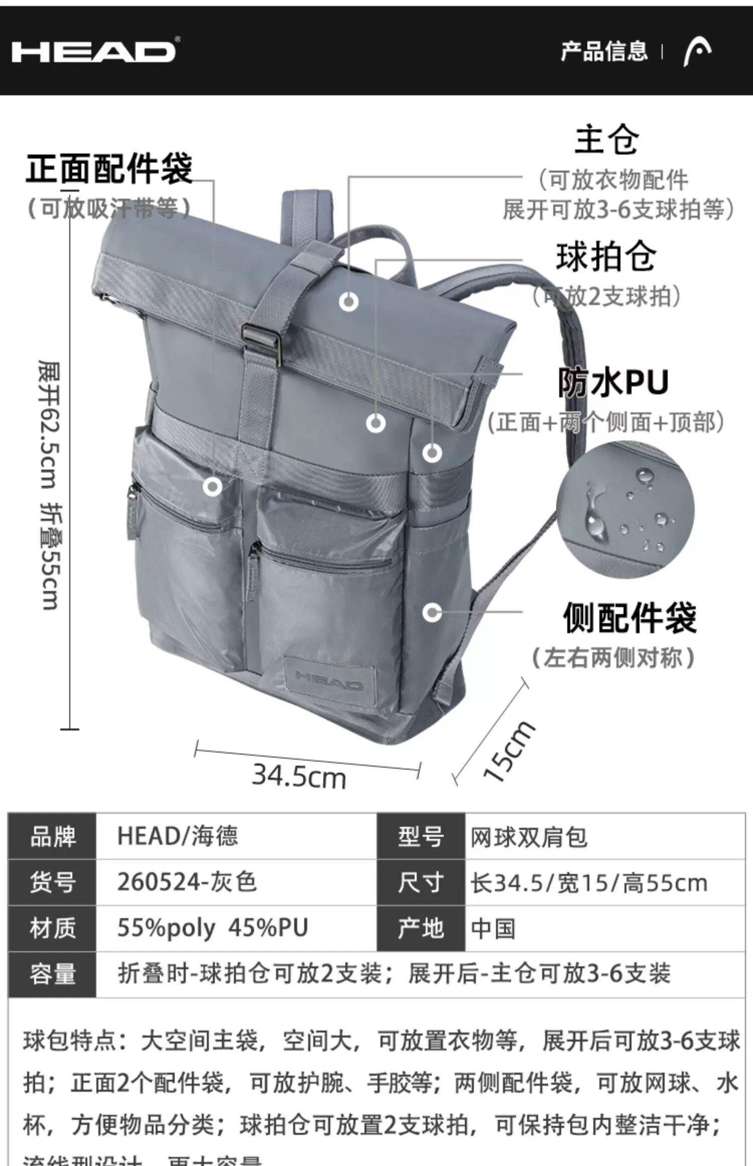 Genuine HEAD tennis bag, badminton bag, men's and women's single shoulder portable three-use multi-functional sports backpack