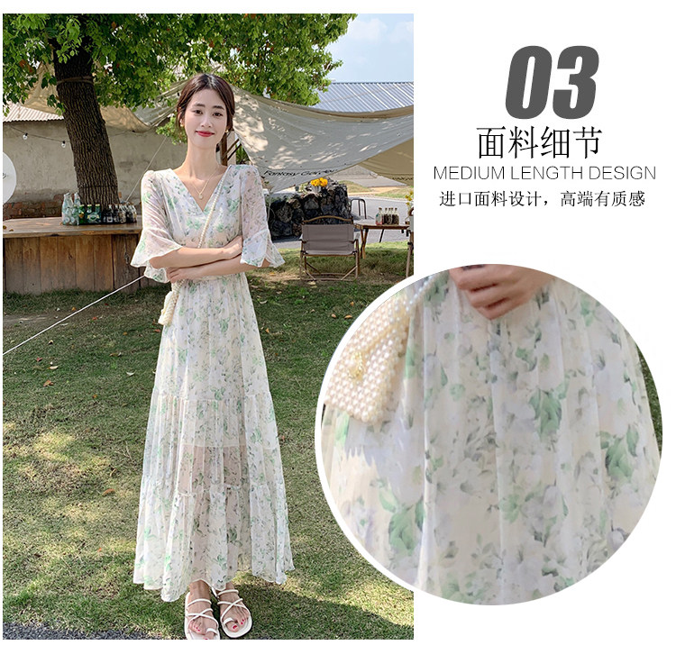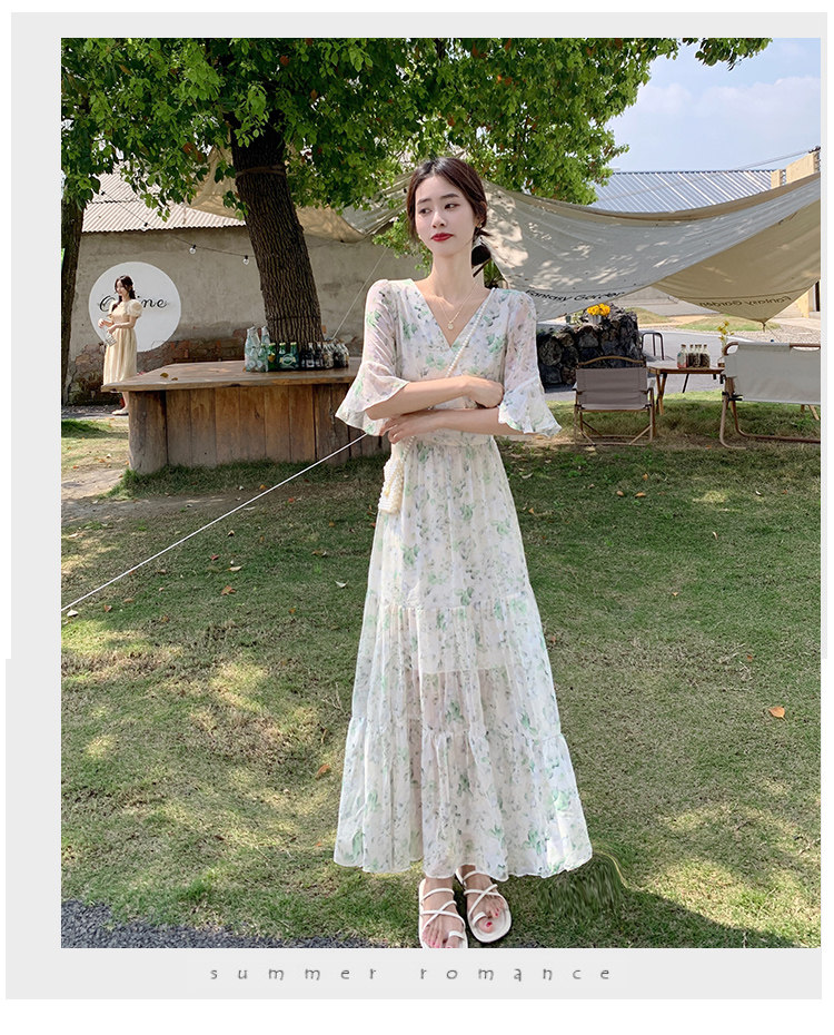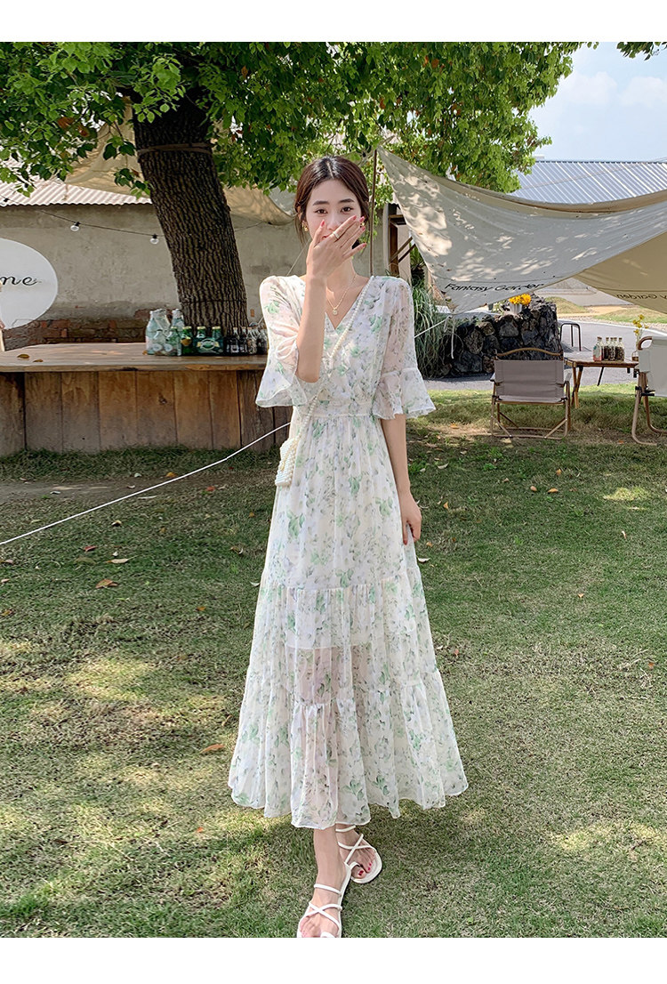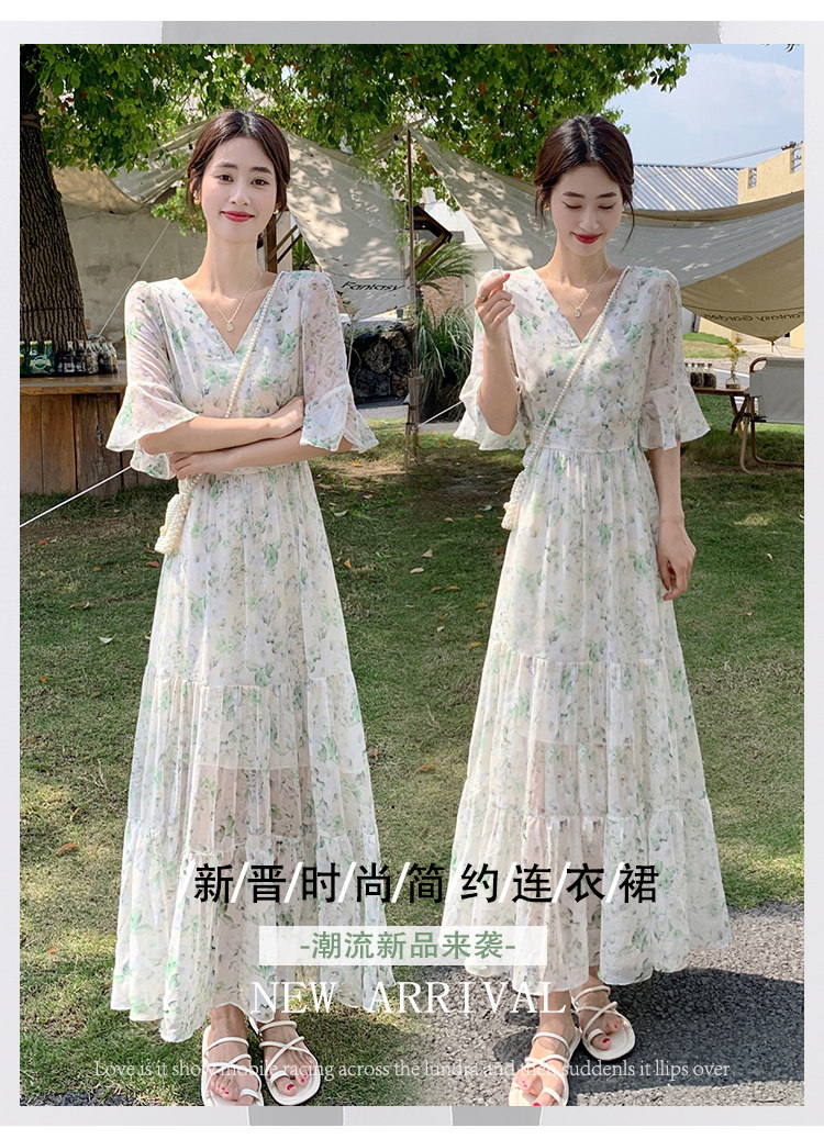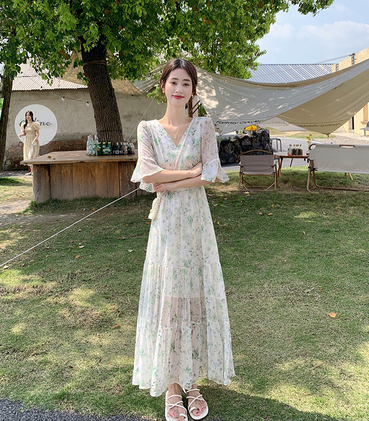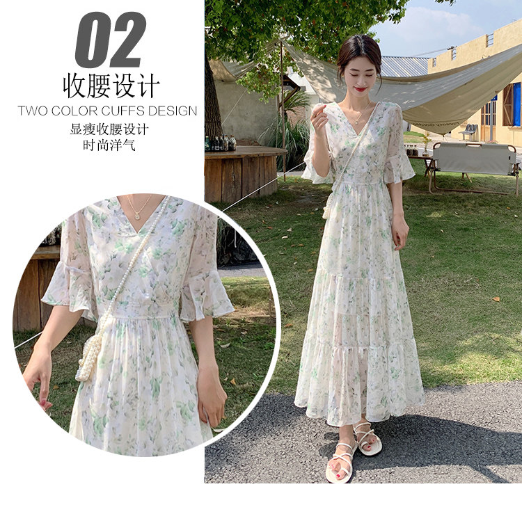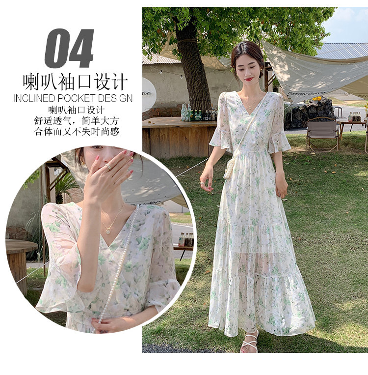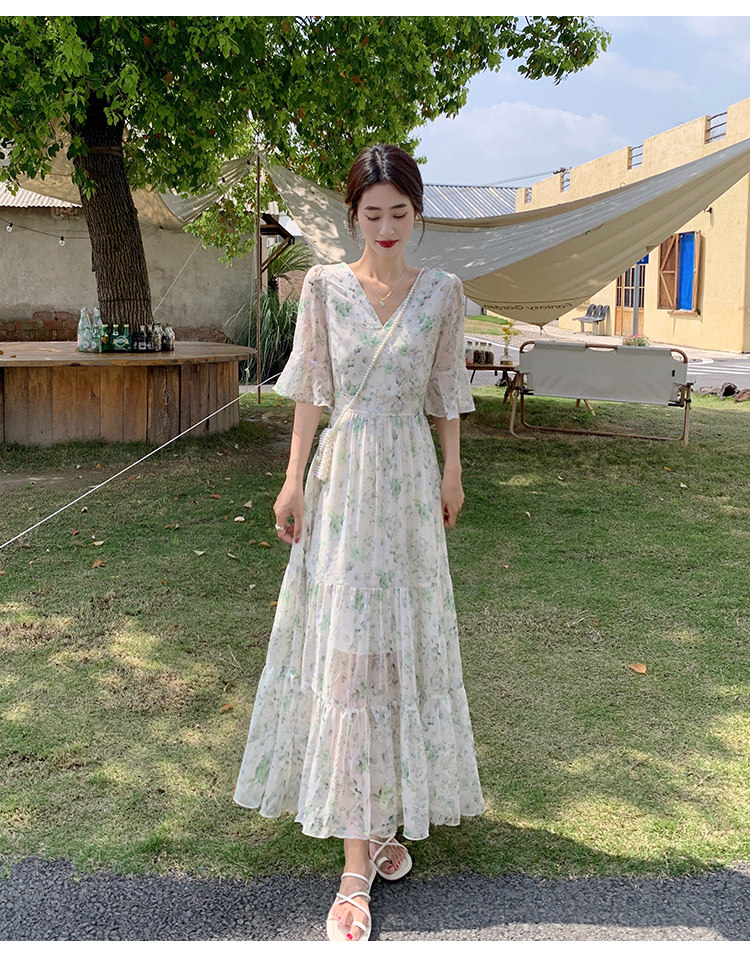 Long floral chiffon dress for women summer 2025 new style waist slimming long skirt fairy a-line skirt