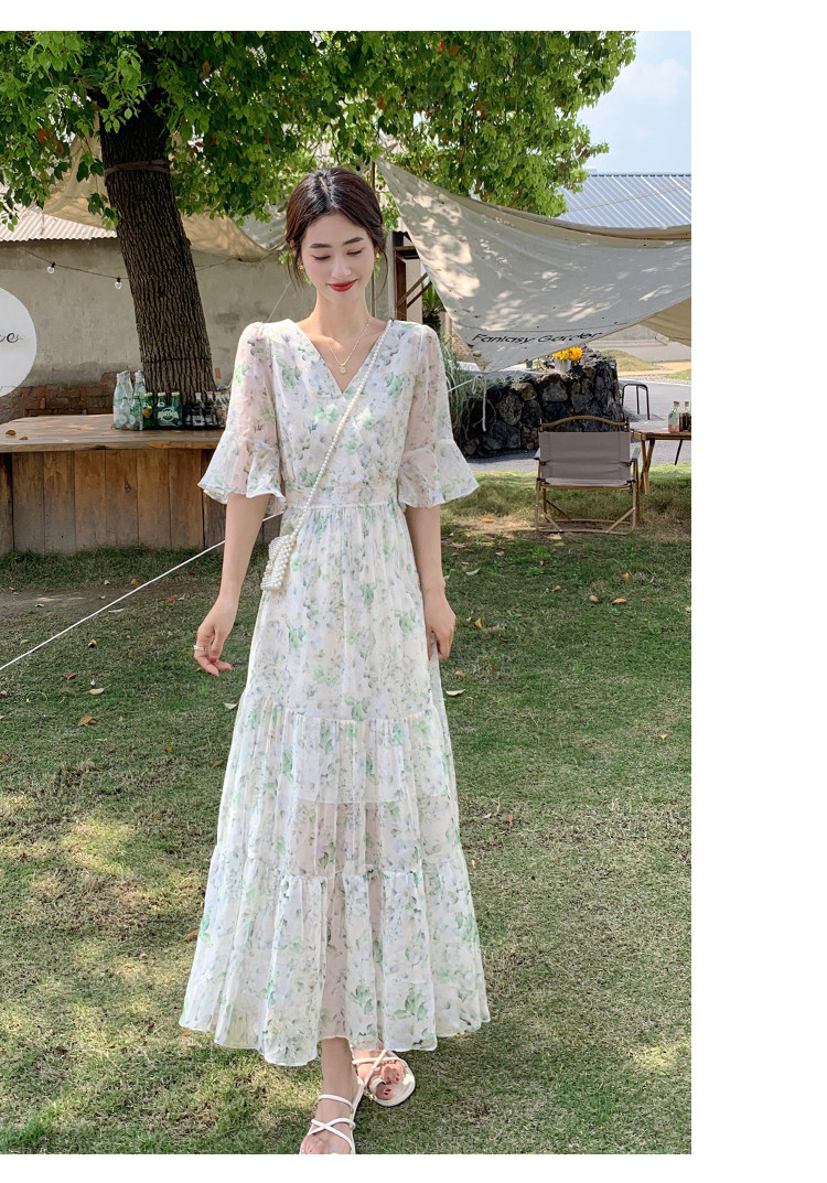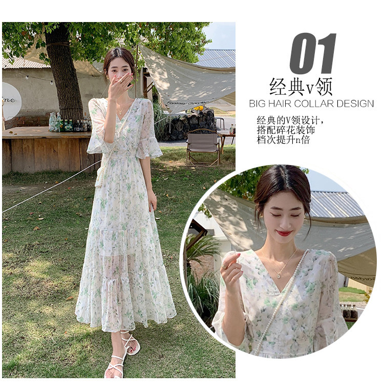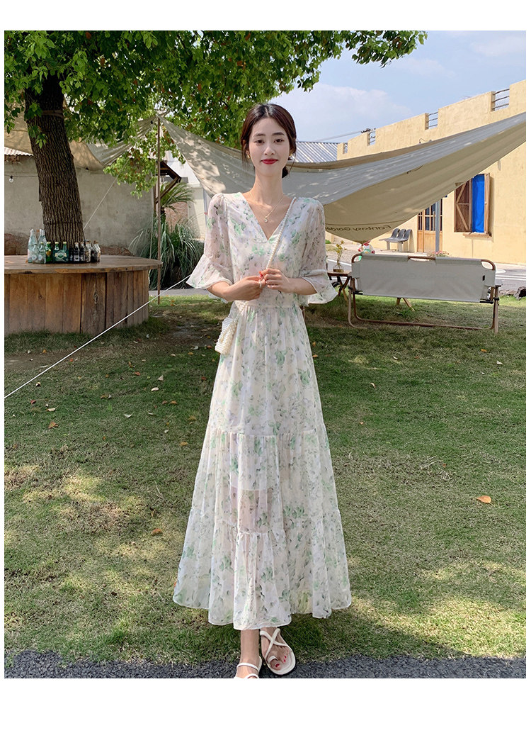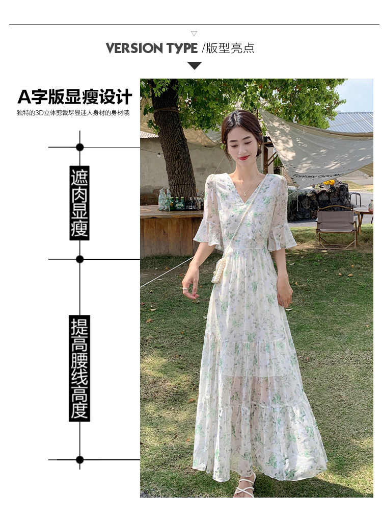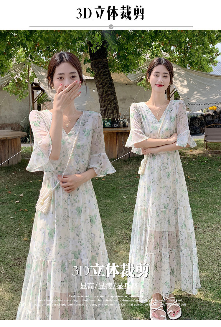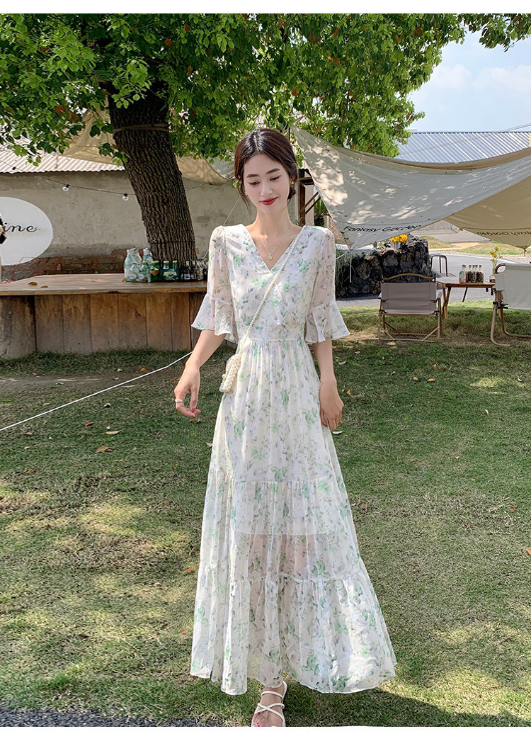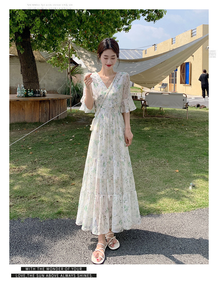 Long floral chiffon dress for women summer 2025 new style waist slimming long skirt fairy a-line skirt