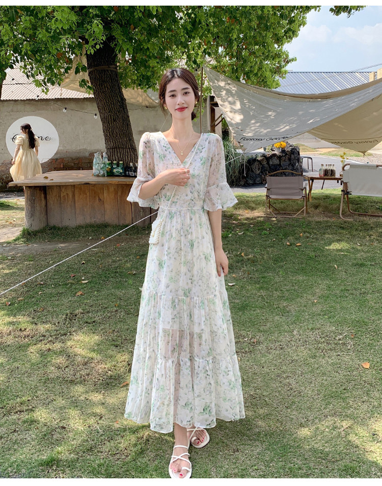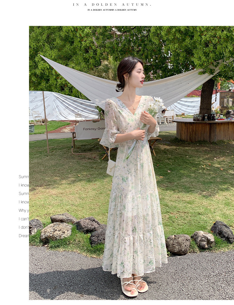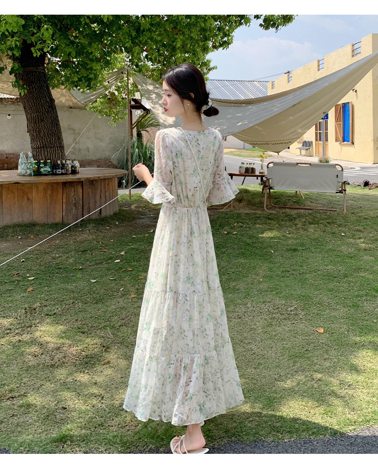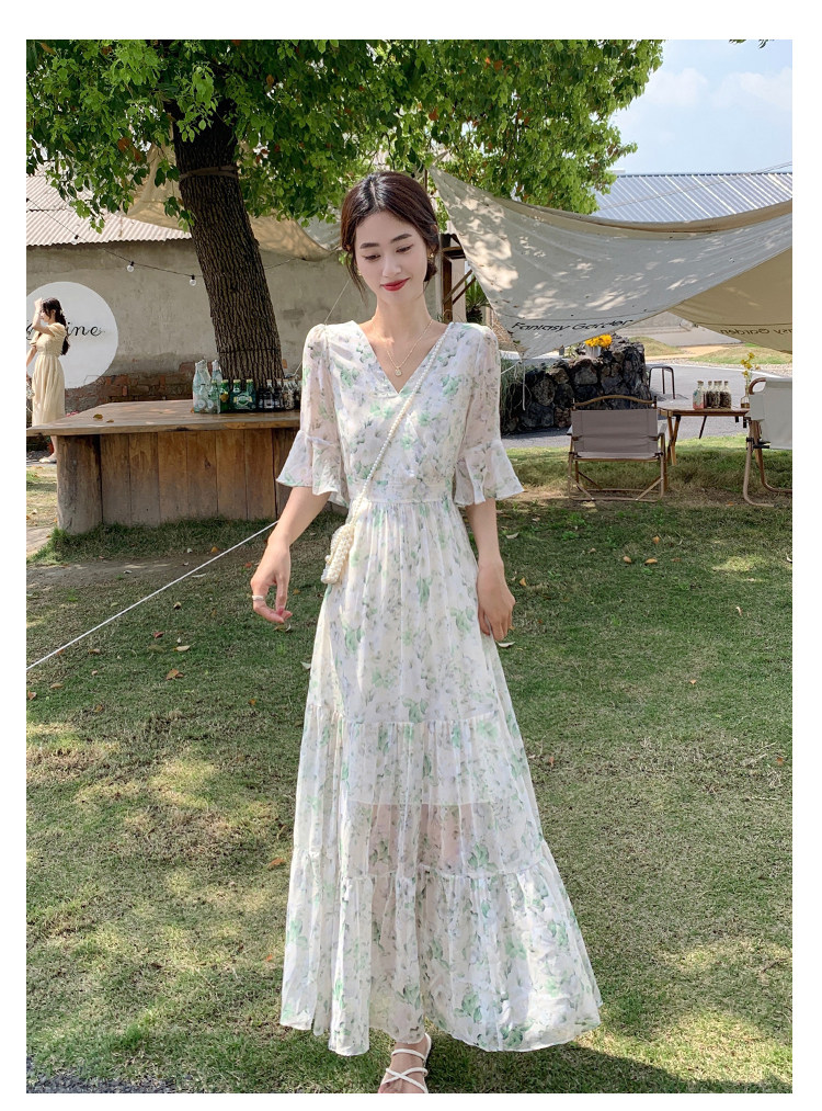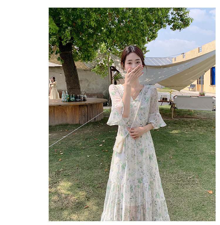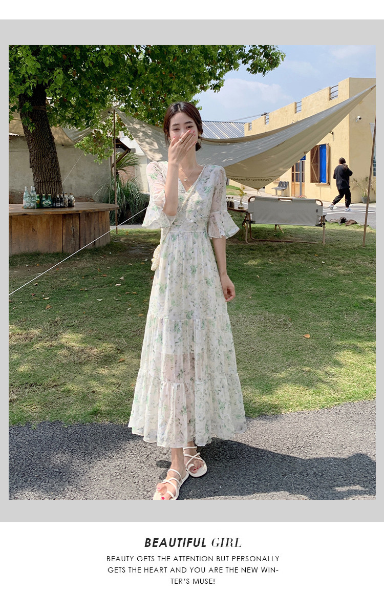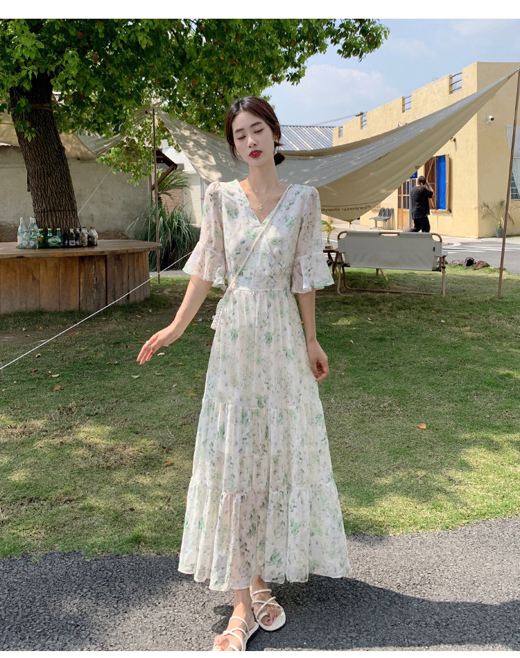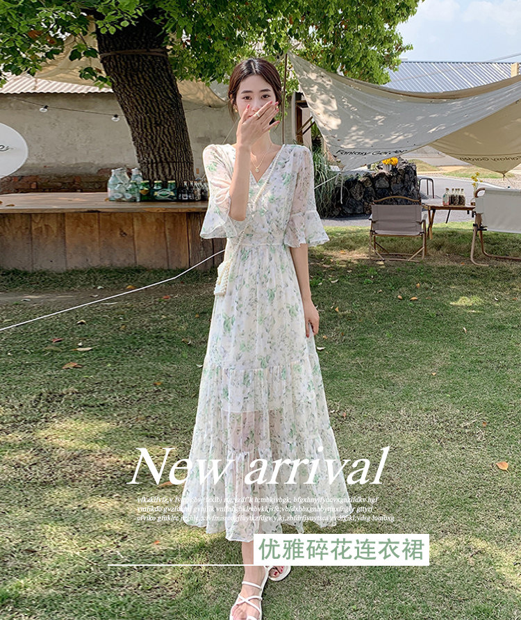 Long floral chiffon dress for women summer 2025 new style waist slimming long skirt fairy a-line skirt
