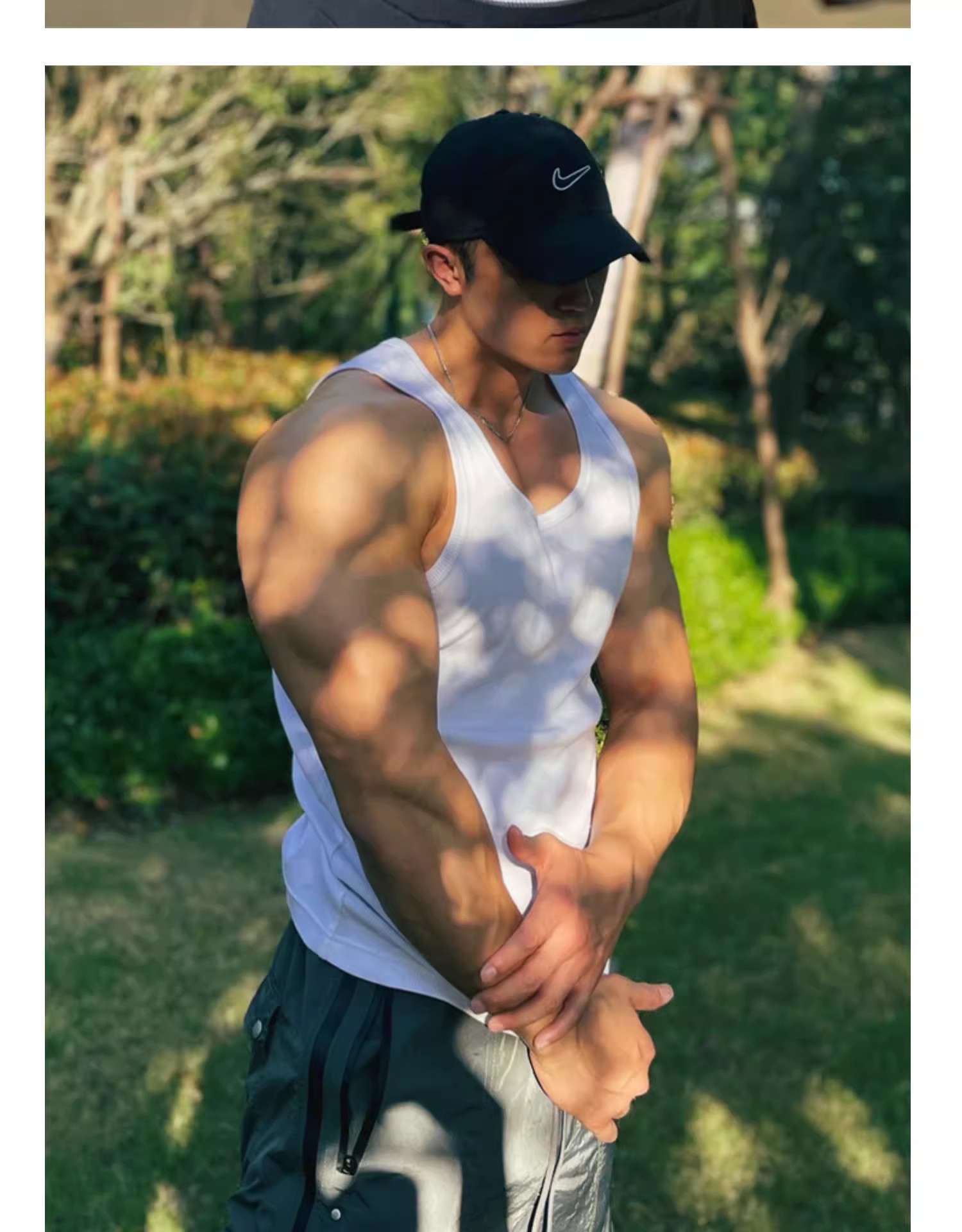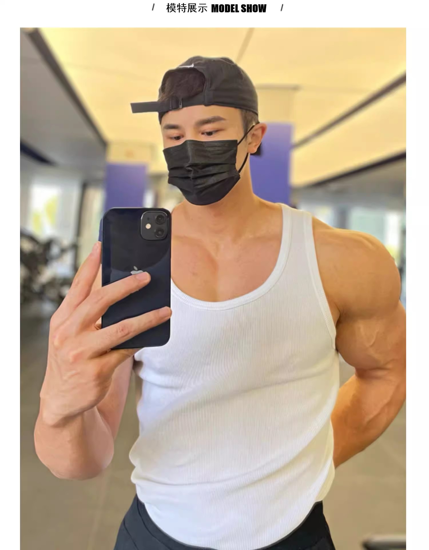 Pure coarse thread slim fit elastic sports fitness cotton vest men's round neck large size quick-drying muscle training breathable