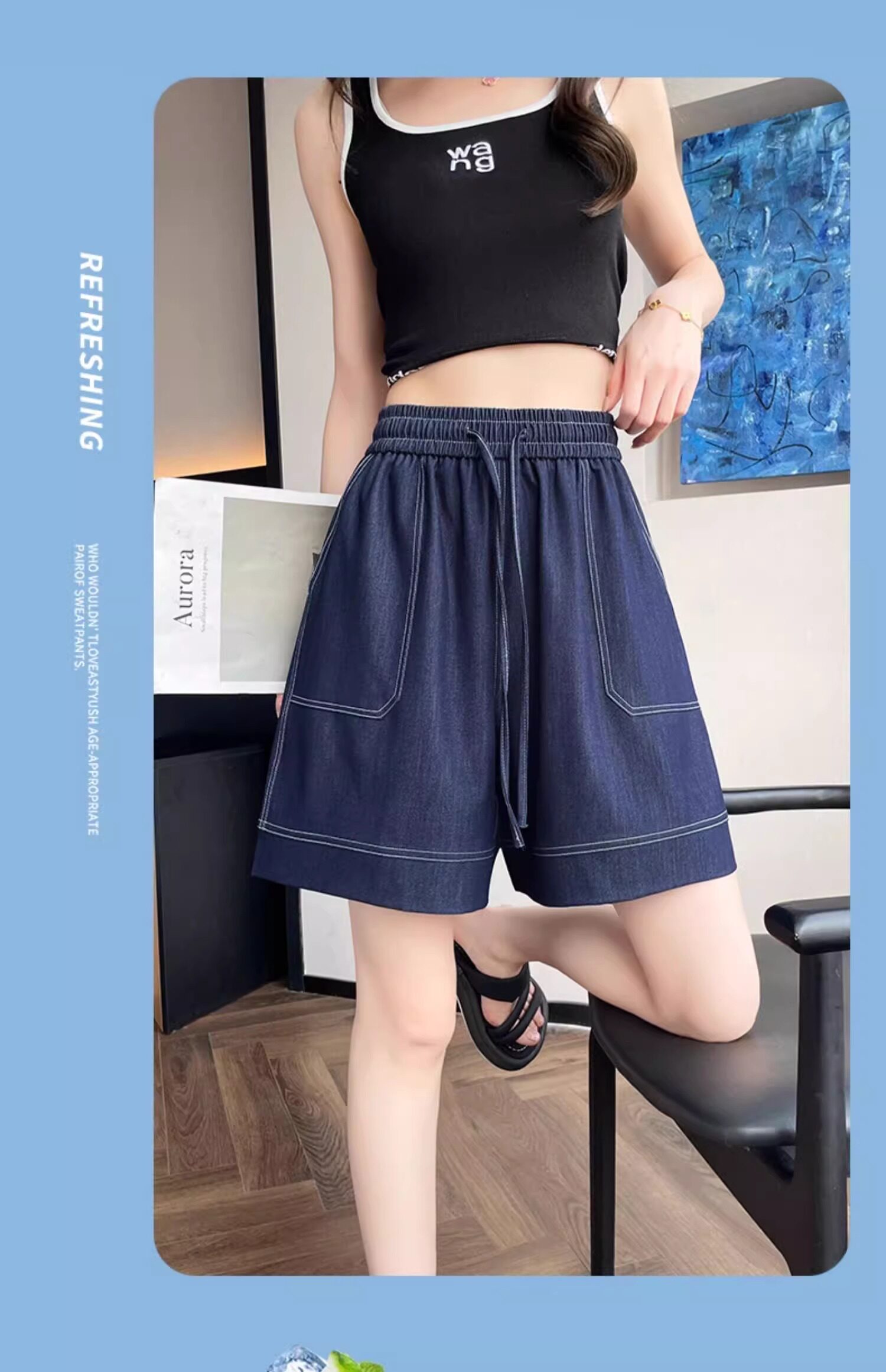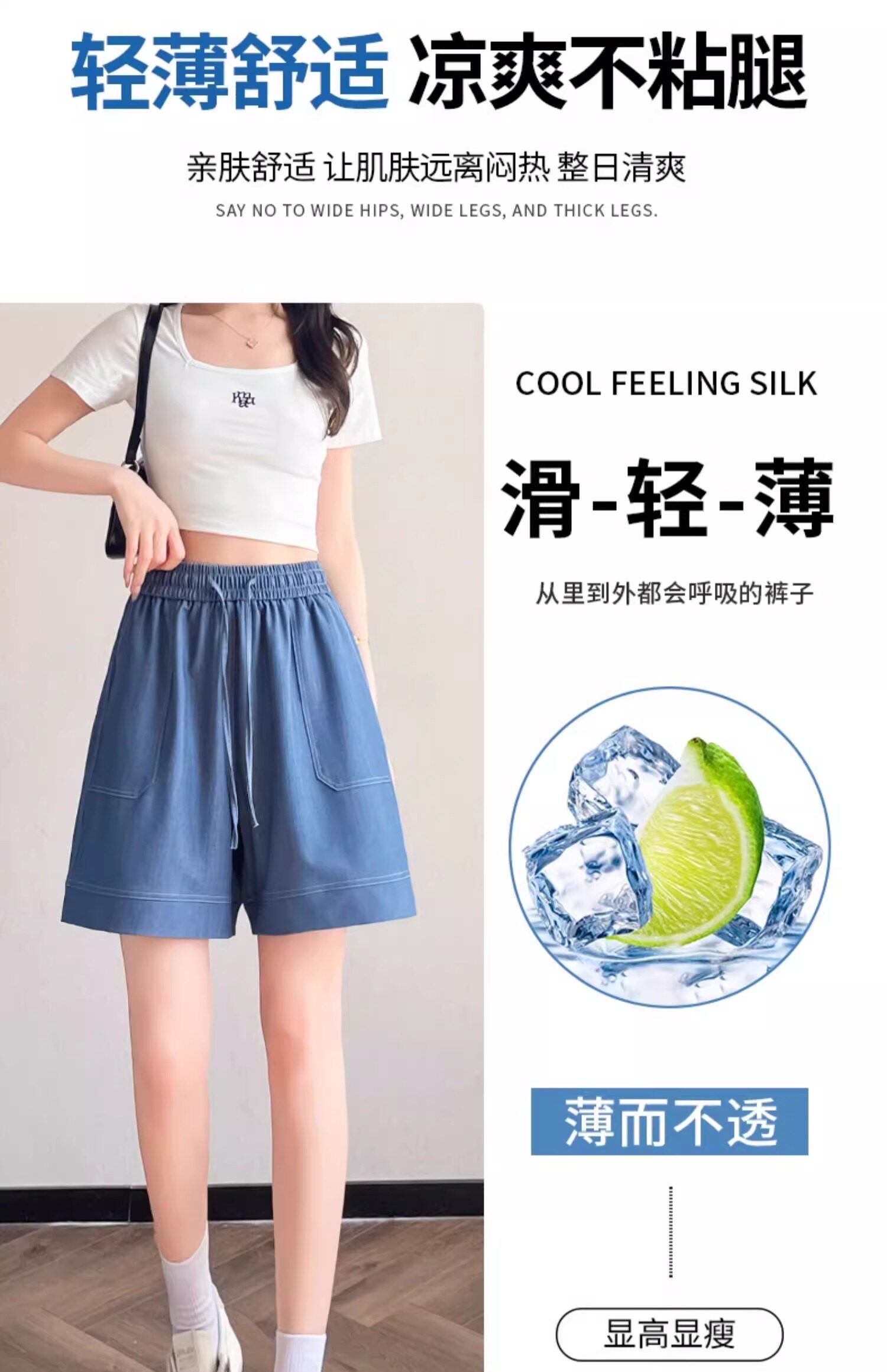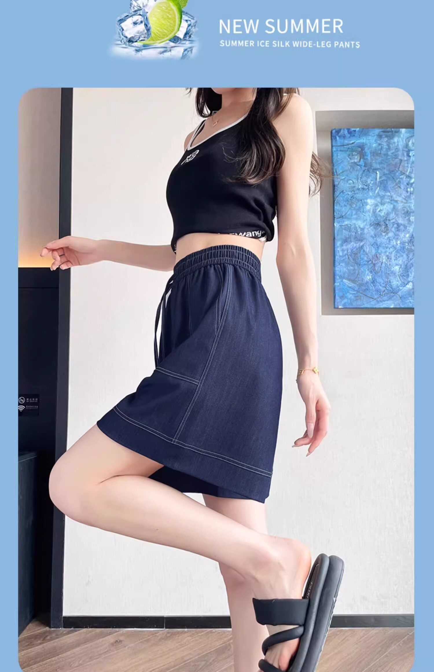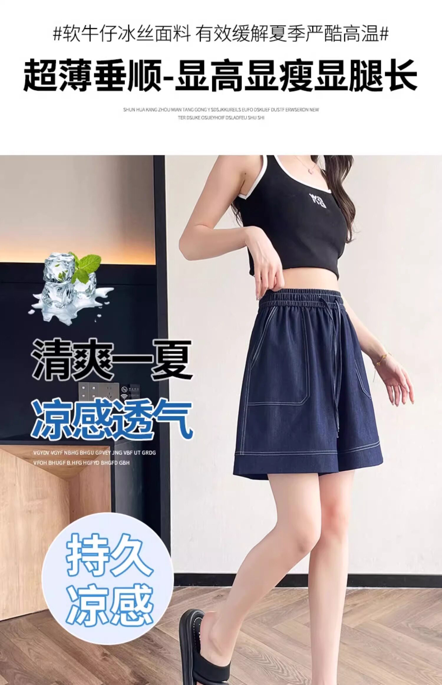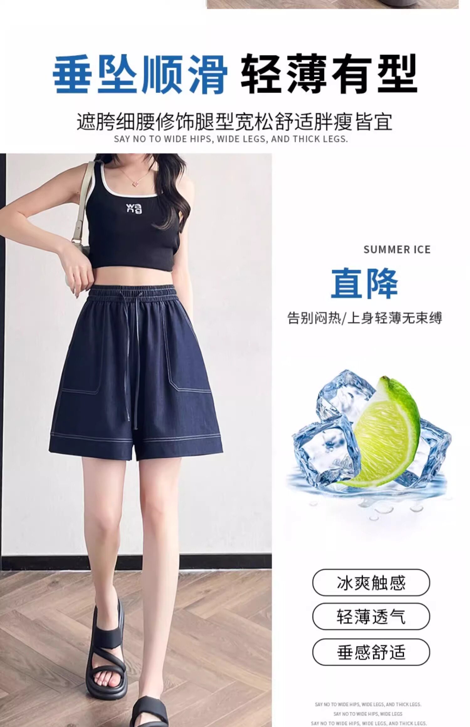 Dark blue tencel denim shorts for women 2025 new summer thin fat mm loose large size ice silk wide leg five-point pants