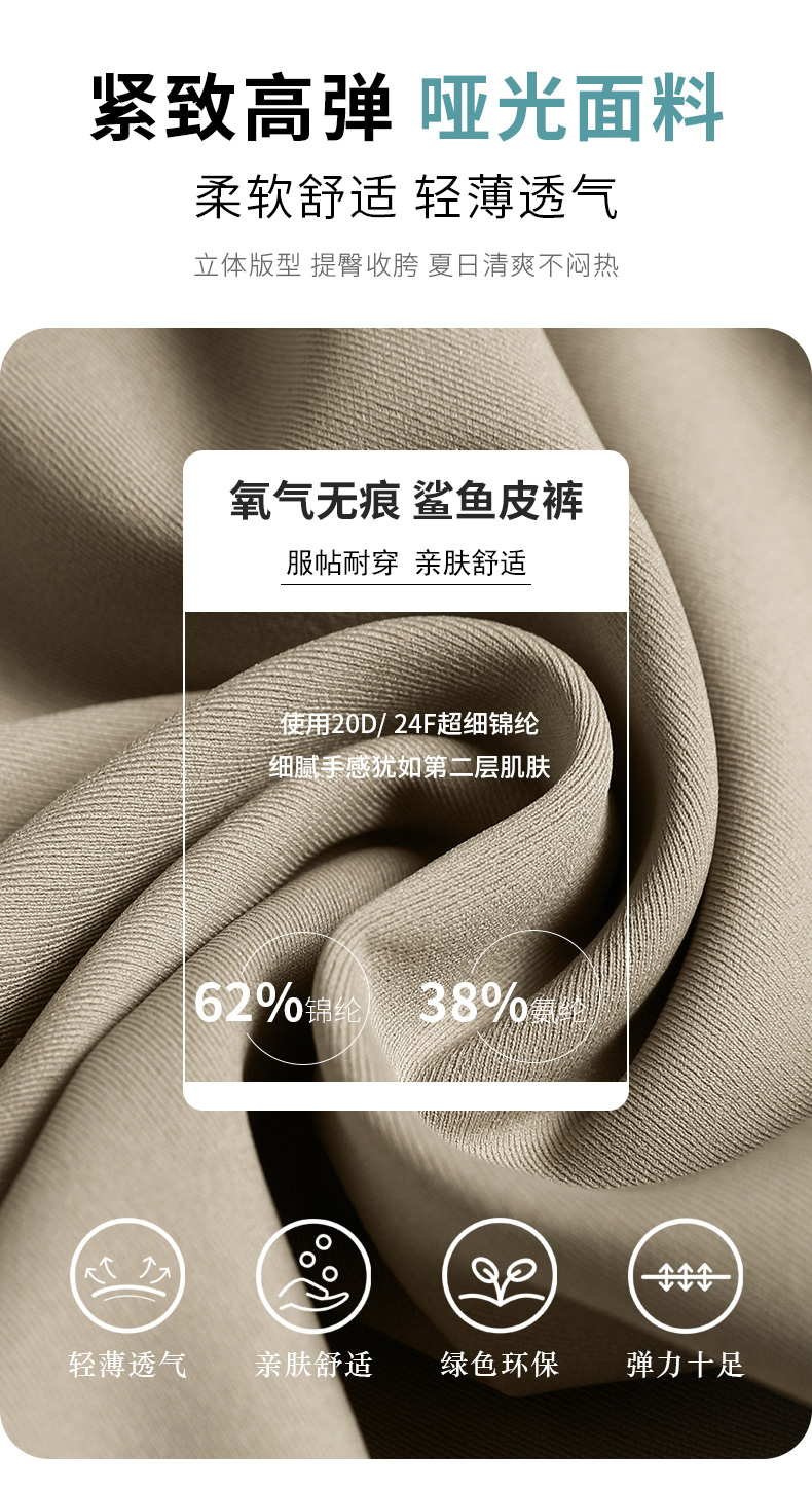 Material Composition Polyamide Fiber (Nylon) 62% Polyurethane Elastic Fiber (Spandex) 38%