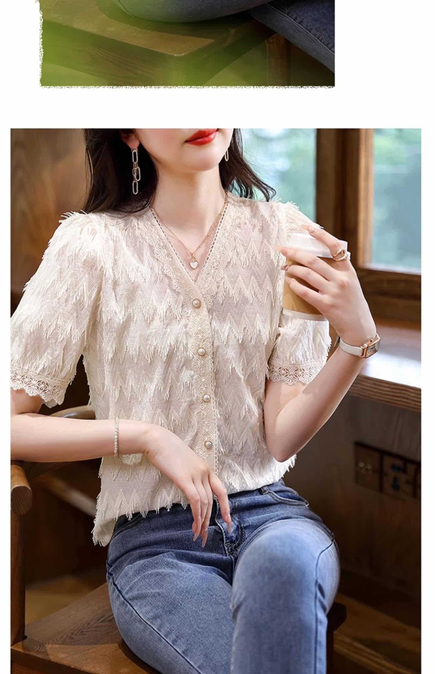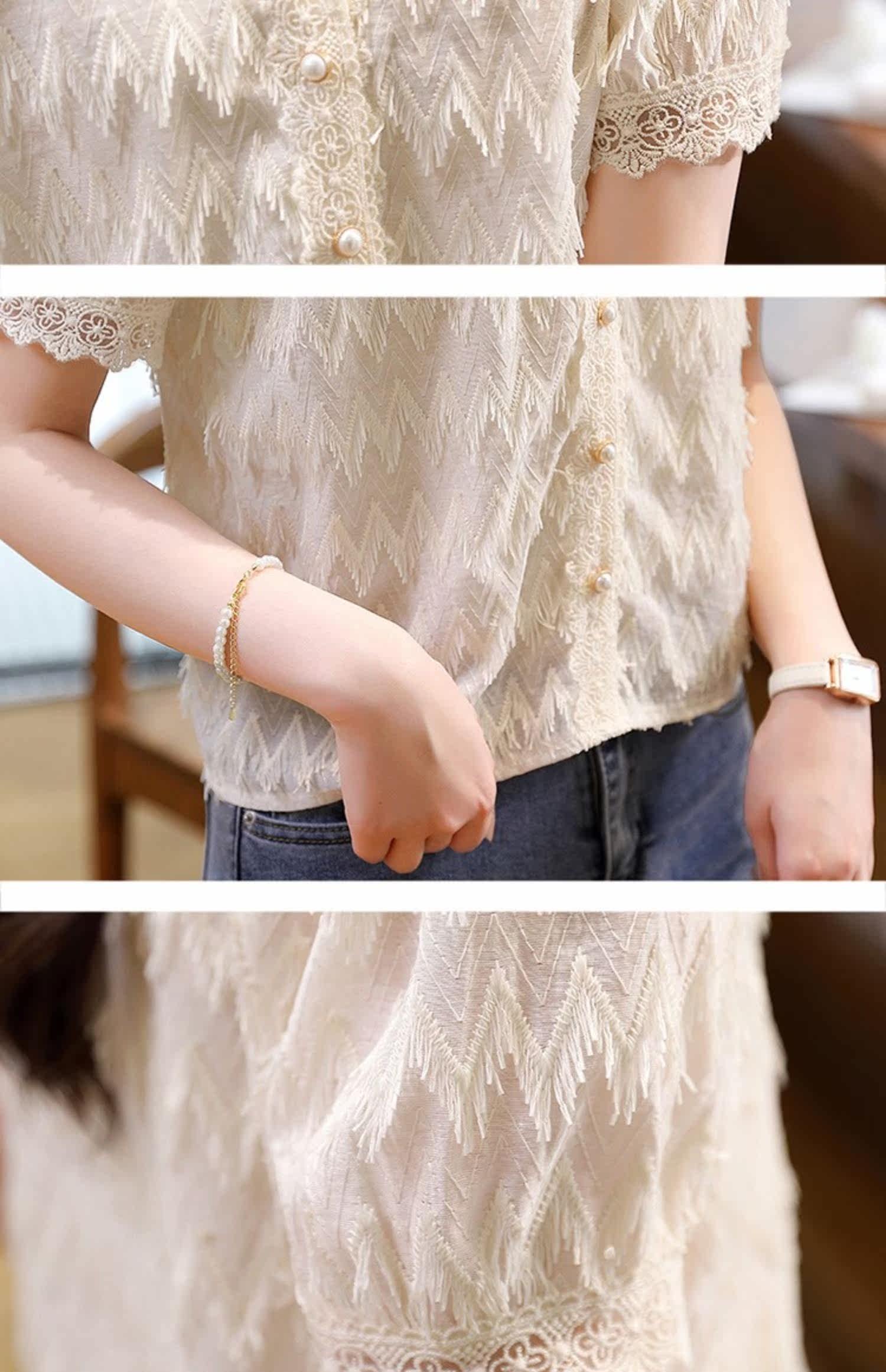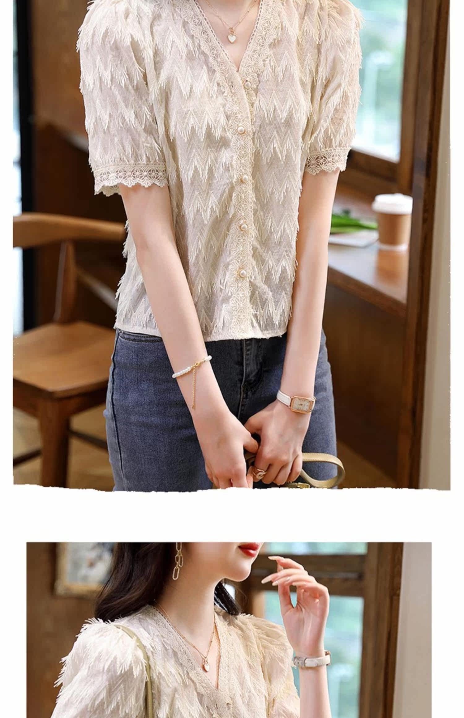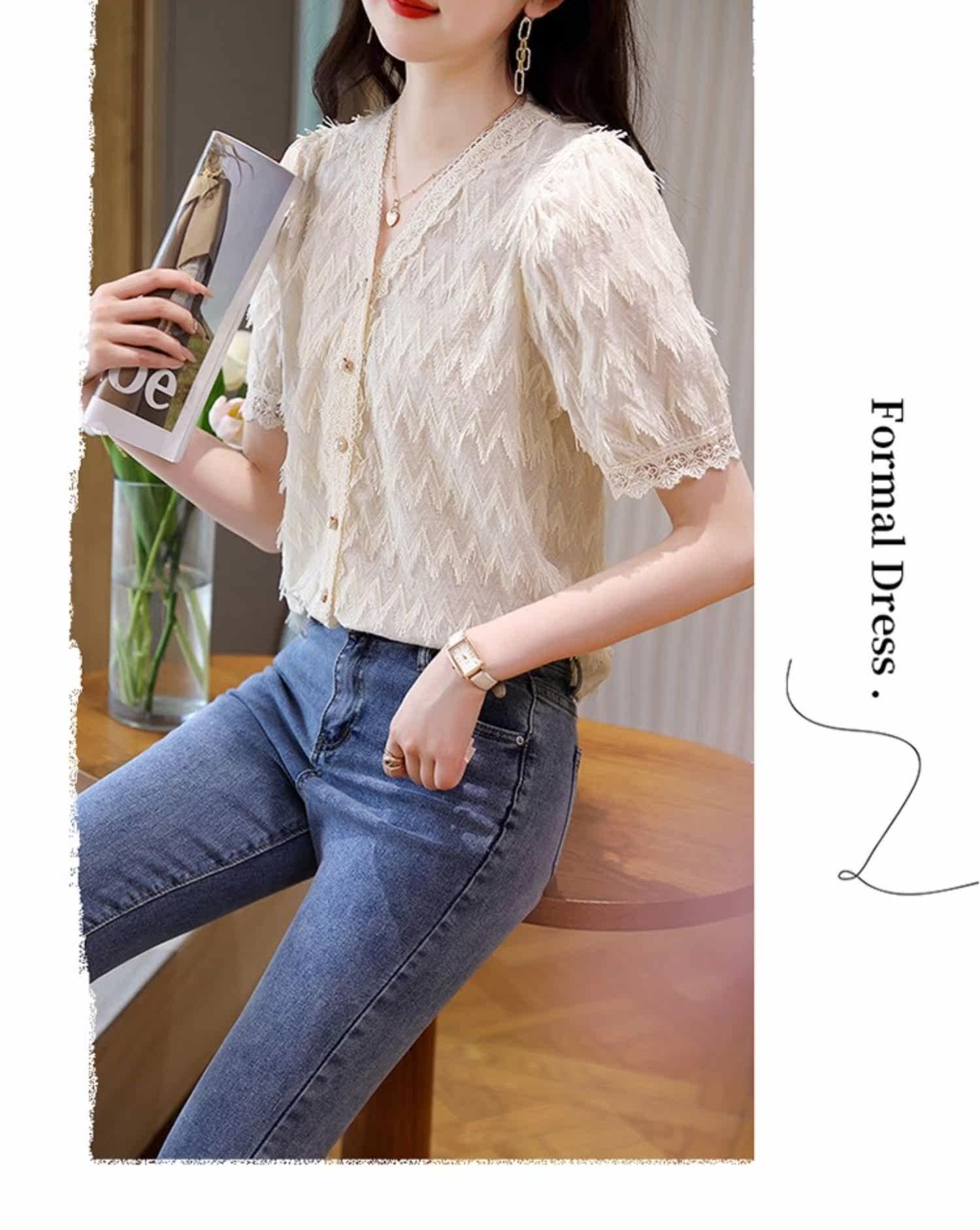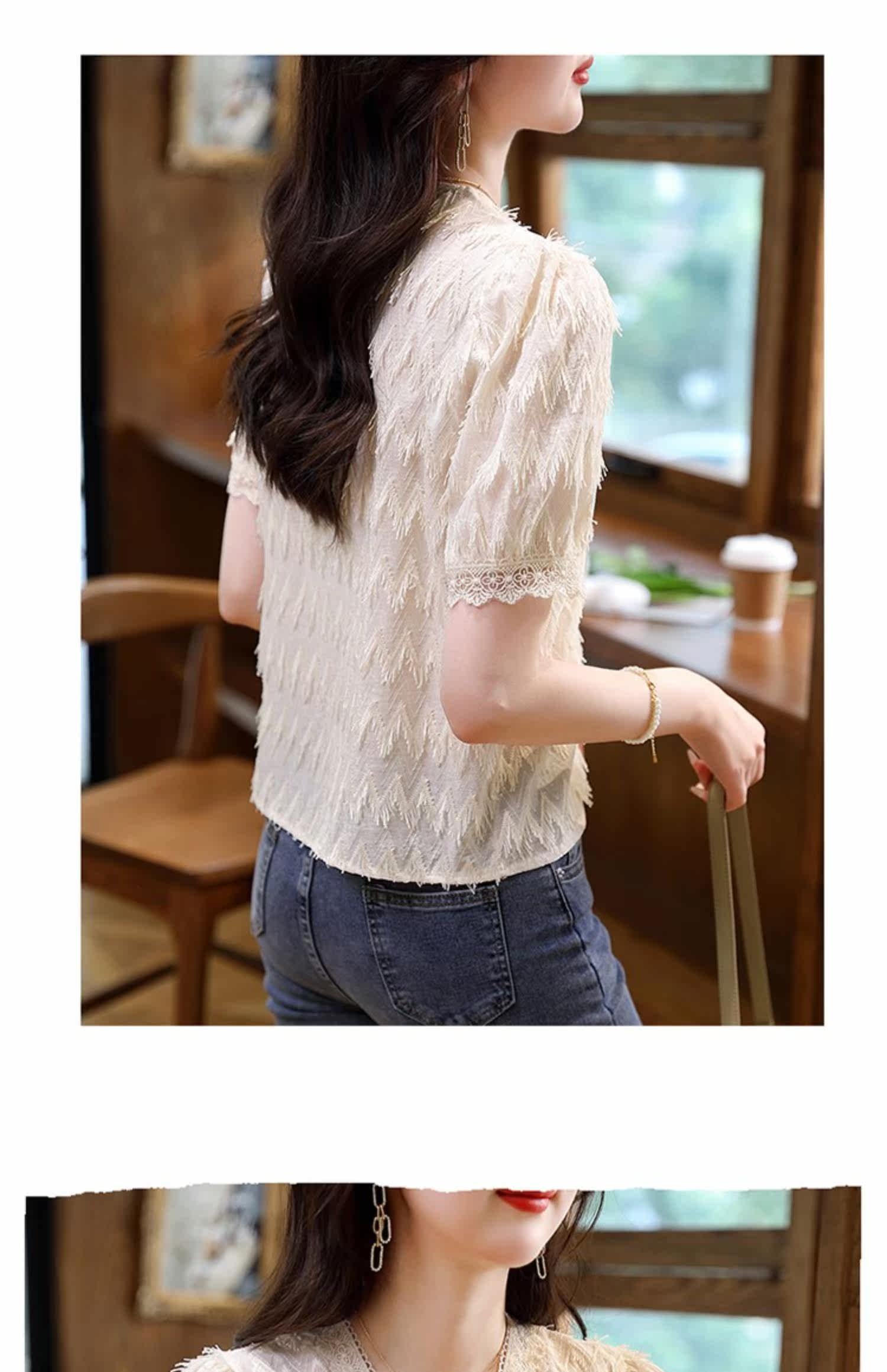 Ice Silk Chiffon Shirt for Women, New Summer Fashion V-Neck Lace Blouse, Short-Sleeved Top, Thin Large Size Shirt