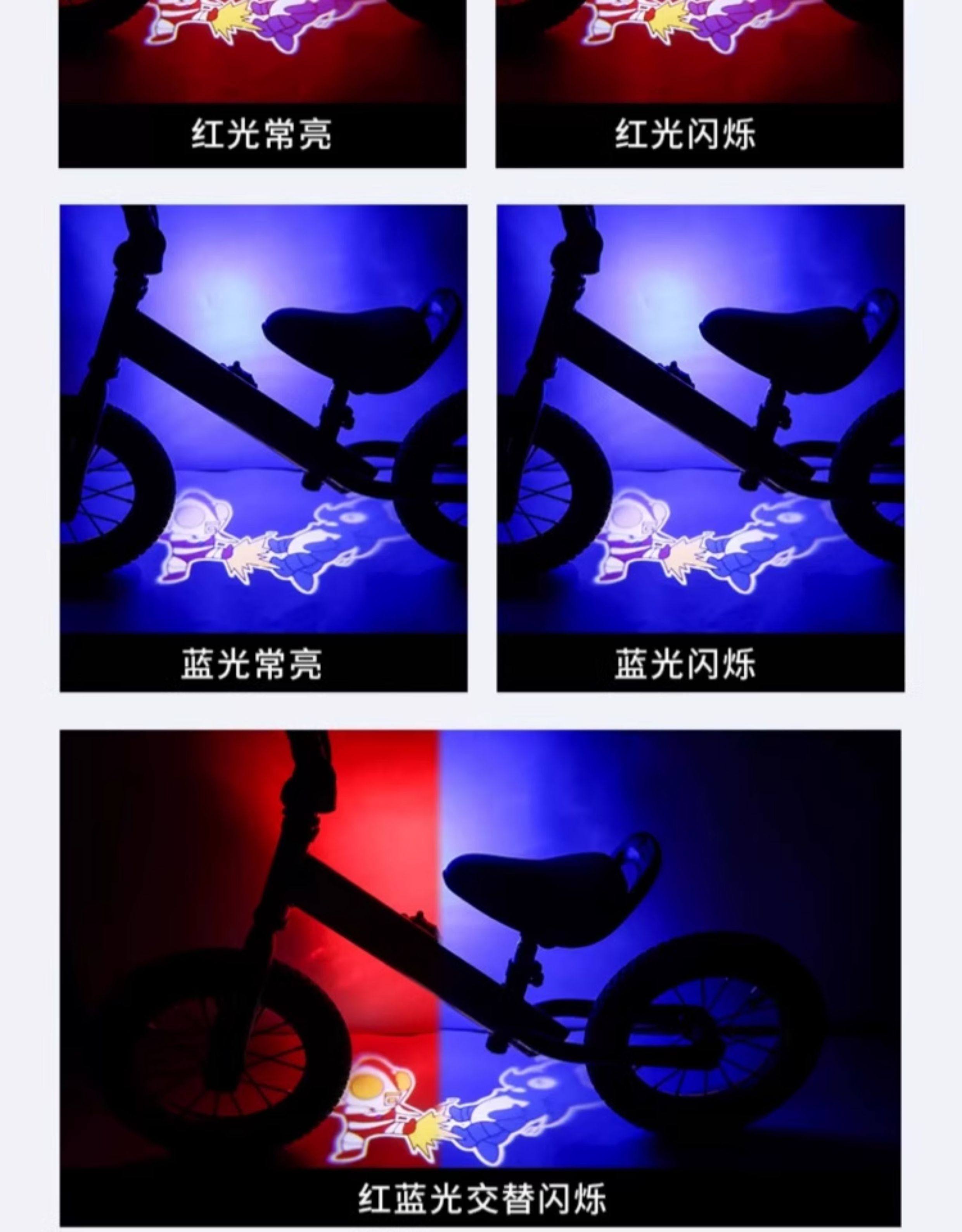 儿童平衡车灯山地自行车夜骑骑行装饰滑板电动单车夜行投影灯尾灯