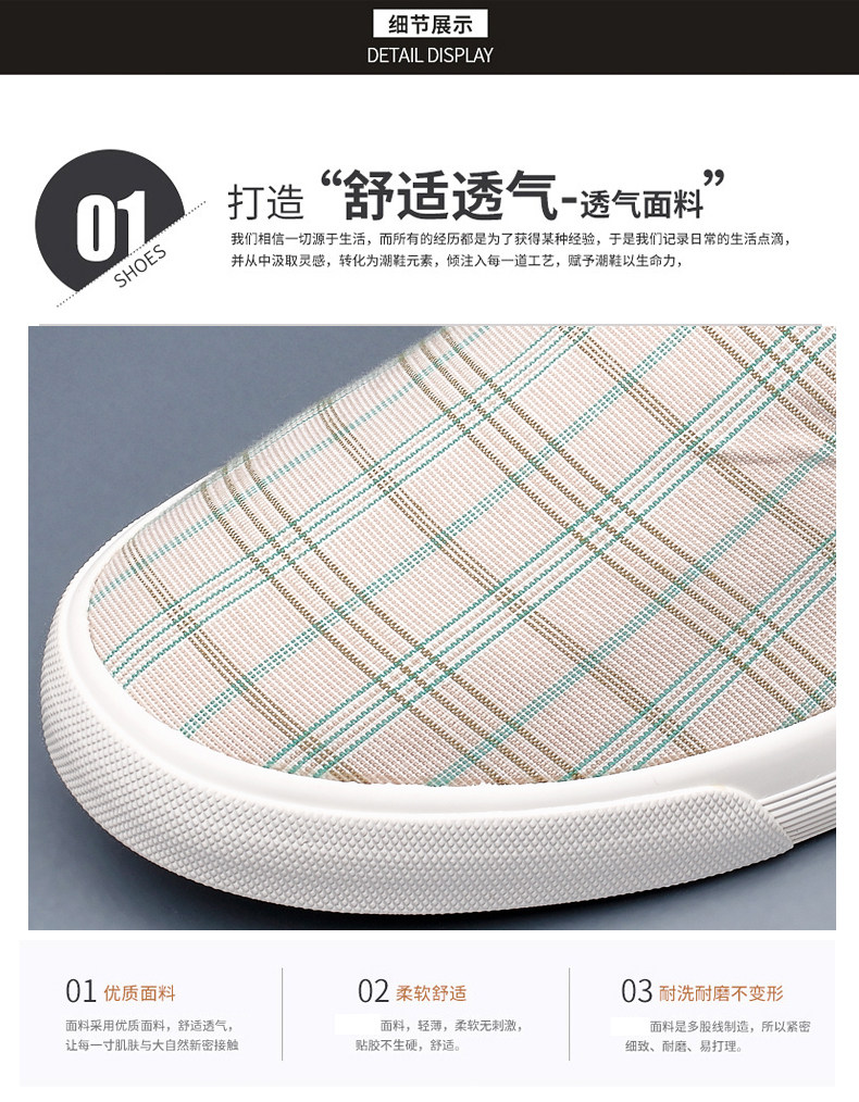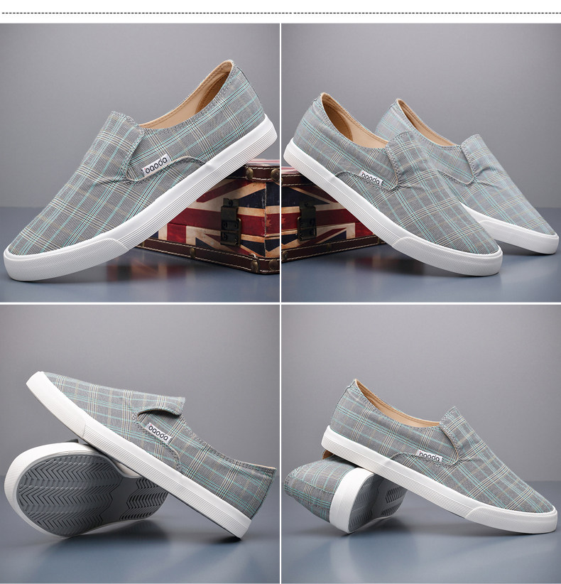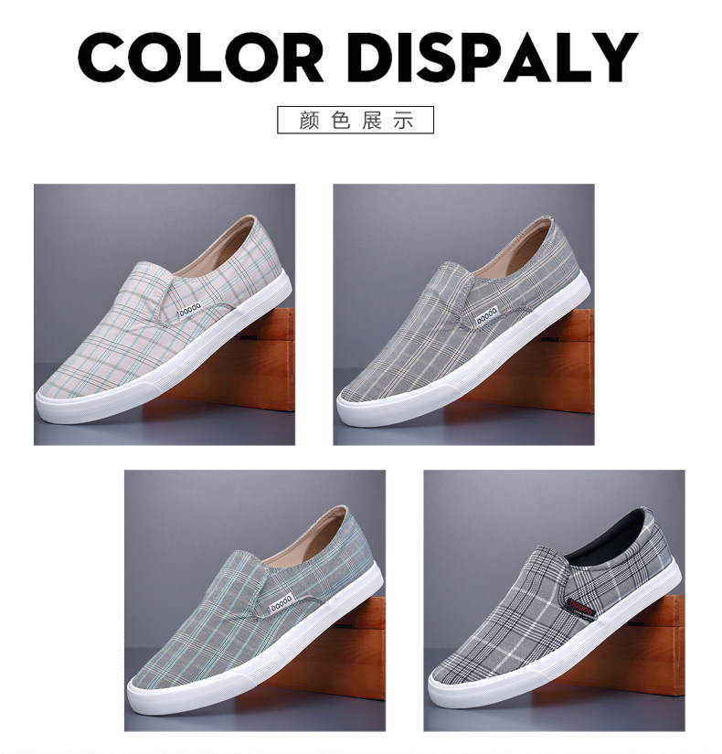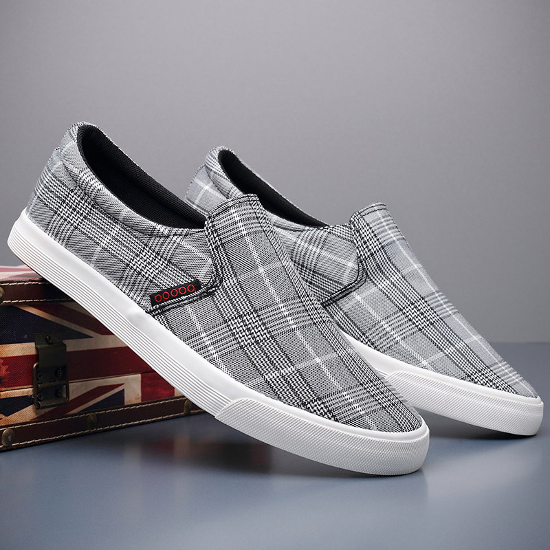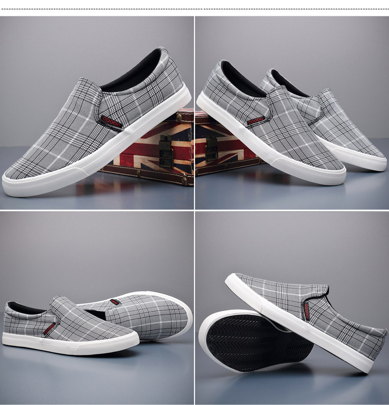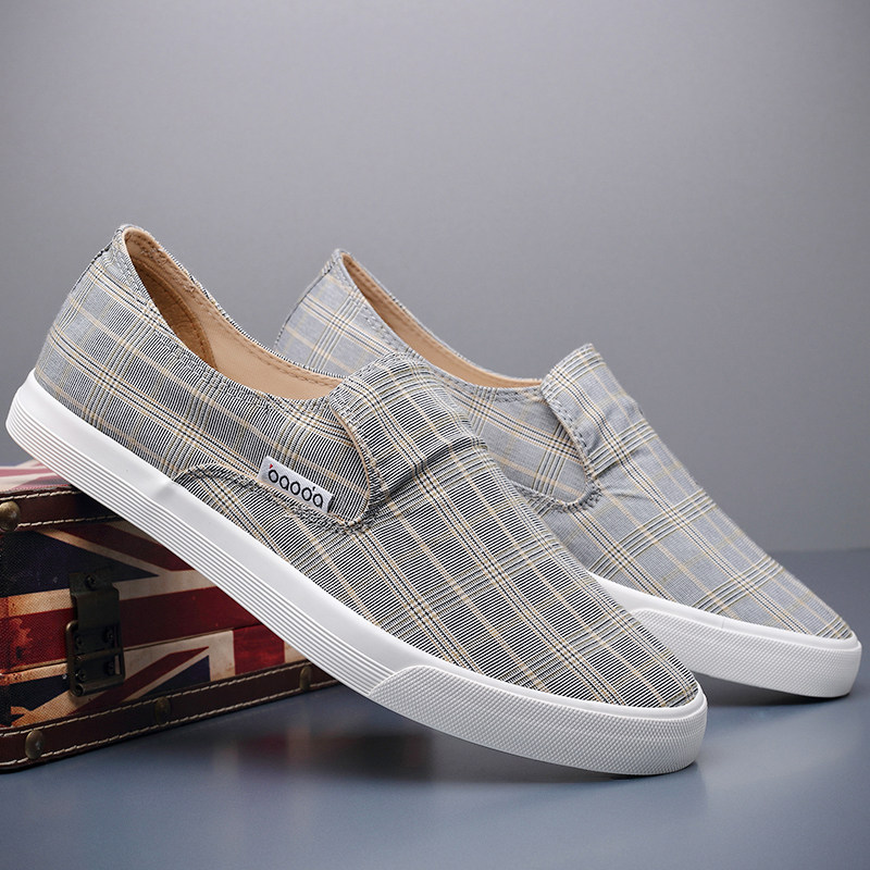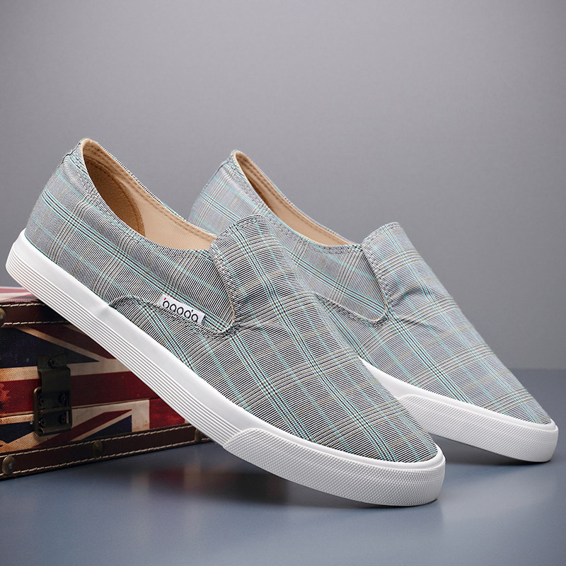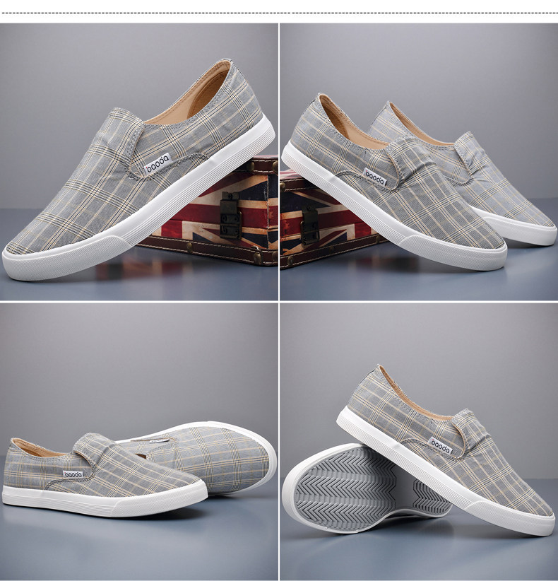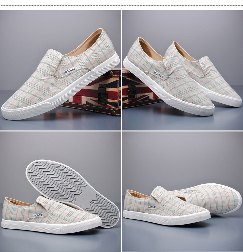 Men's summer breathable slip-on plaid cloth shoes men's low-cut trendy old Beijing canvas shoes lazy casual sneakers