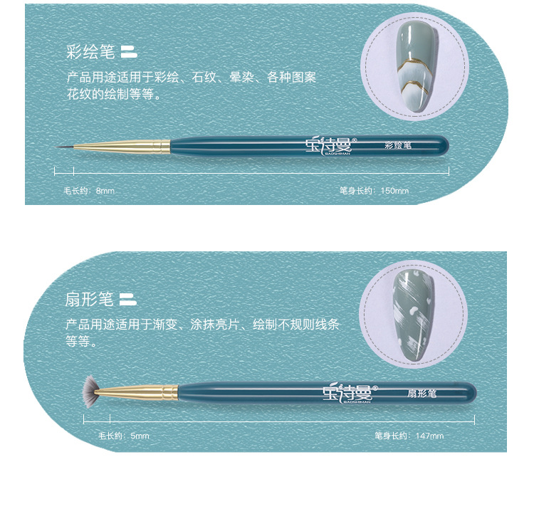 Boucherman Manicure Brush Set Manicure Tools Light Therapy Brush Painting Sweep Line Pen Professional Hook Line Pen