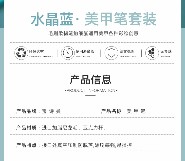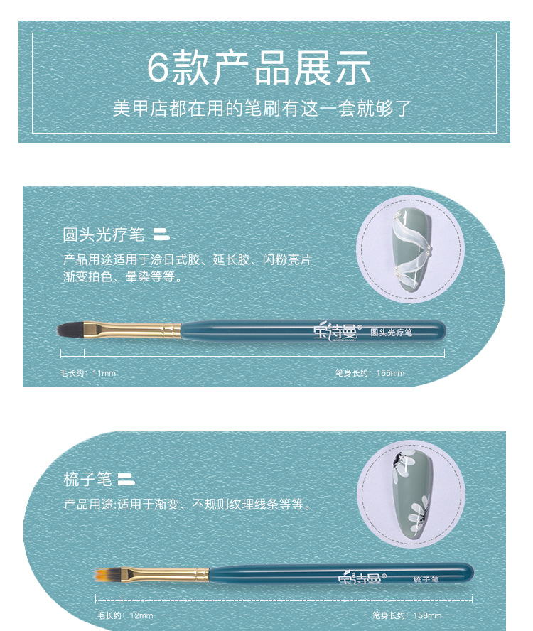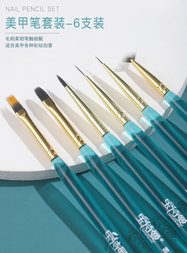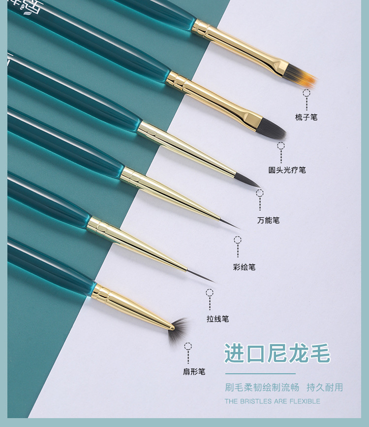 Sort by color Crystal blue manicure pen set (six pieces),Crystal blue (comb pen),Crystal blue (line pen),Crystal blue(marker pen),Crystal blue (painting pen),Crystal blue (fan pen),Crystal blue (round head phototherapy pen)