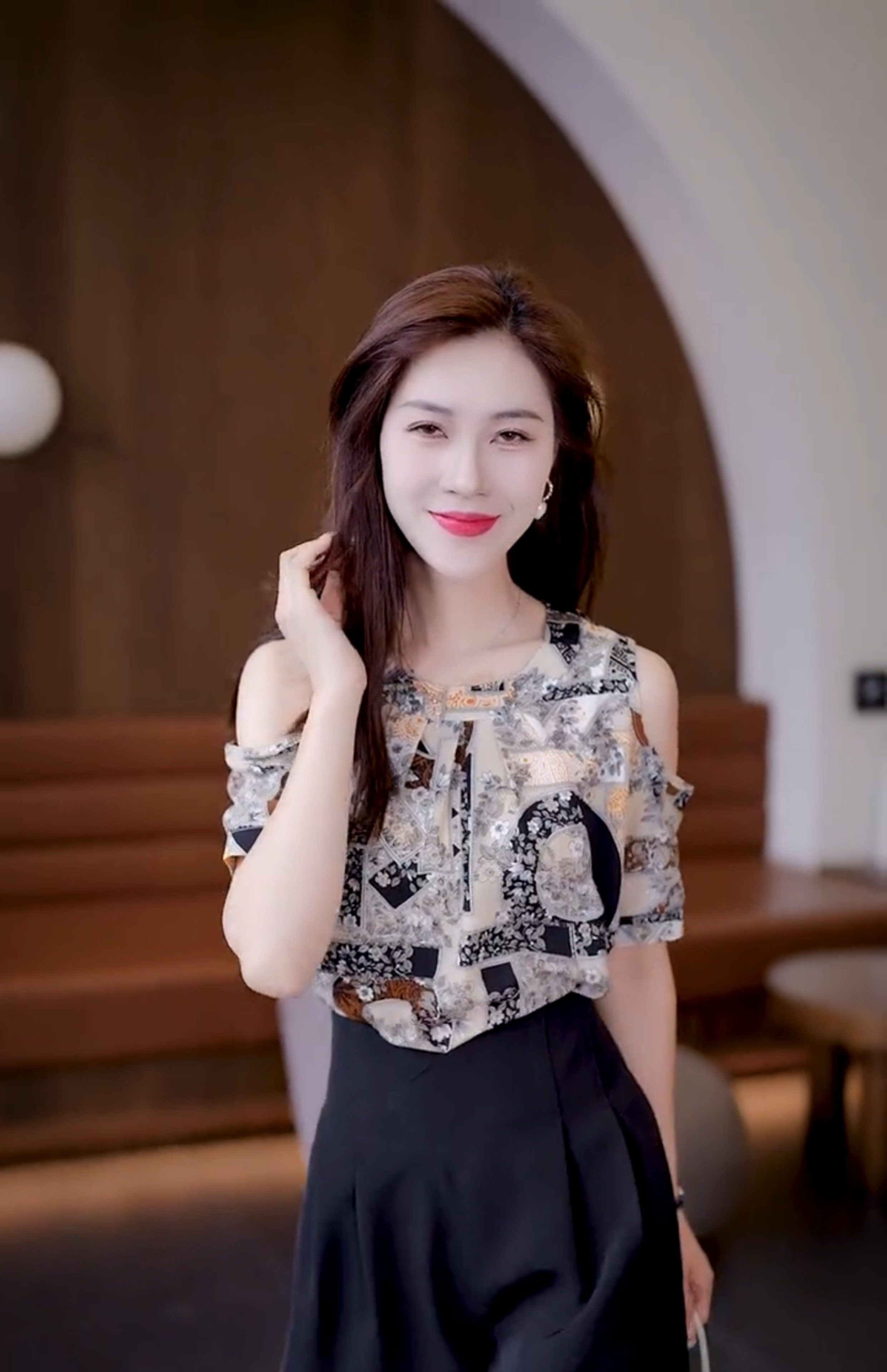 洋气碎花雪纺衫女夏季新款时尚宽松遮肚子显瘦上衣气质露肩小衫潮