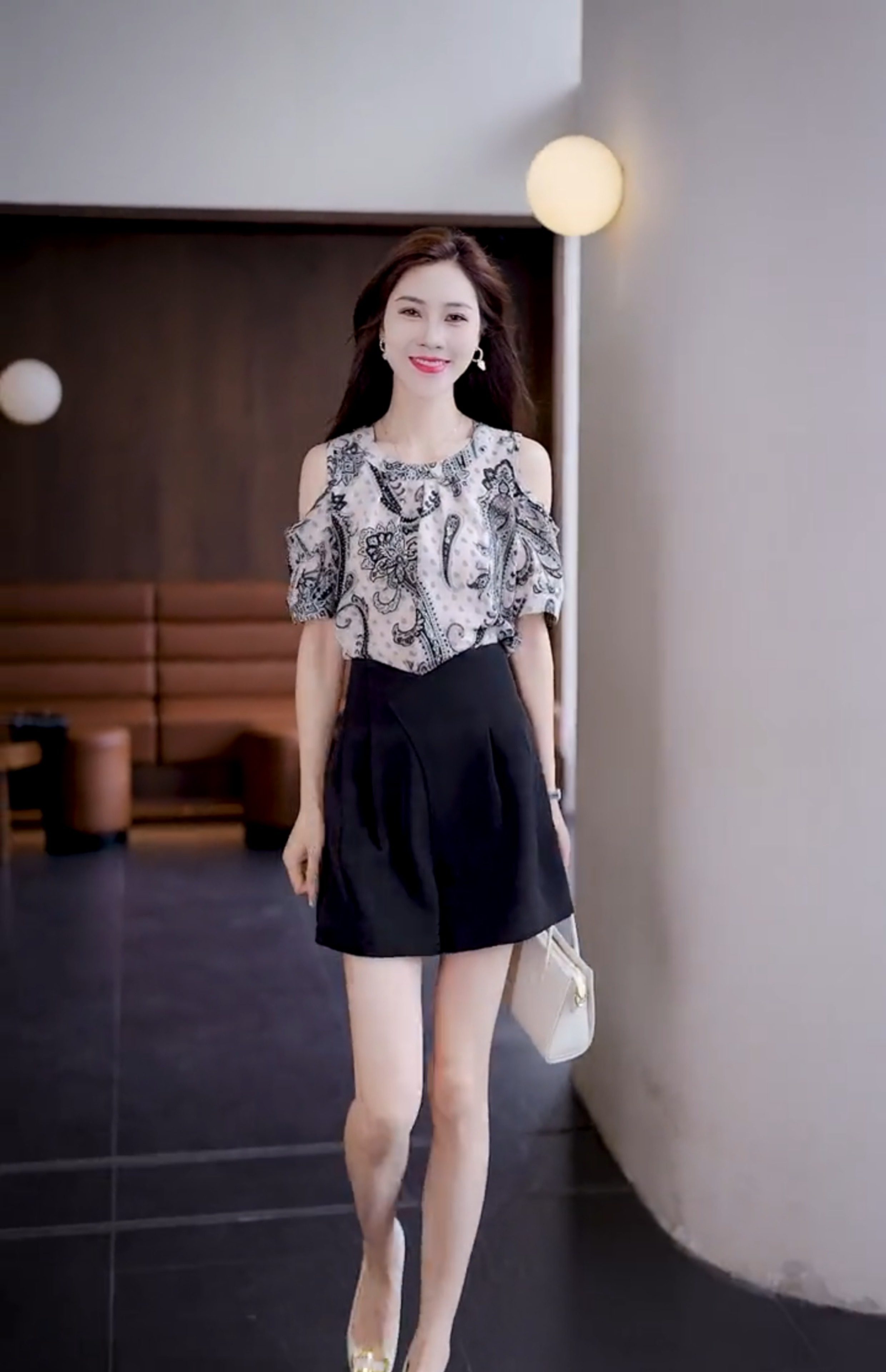 颜色分类 彩色花上衣【单件】,黑色花上衣【单件】,彩色花+黑色裤子【套装】,黑色花+黑色裤子【套装】,黑色短裤