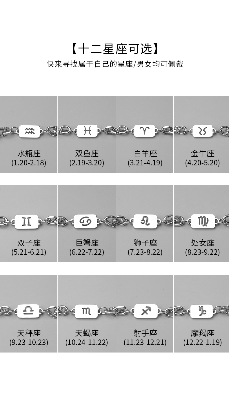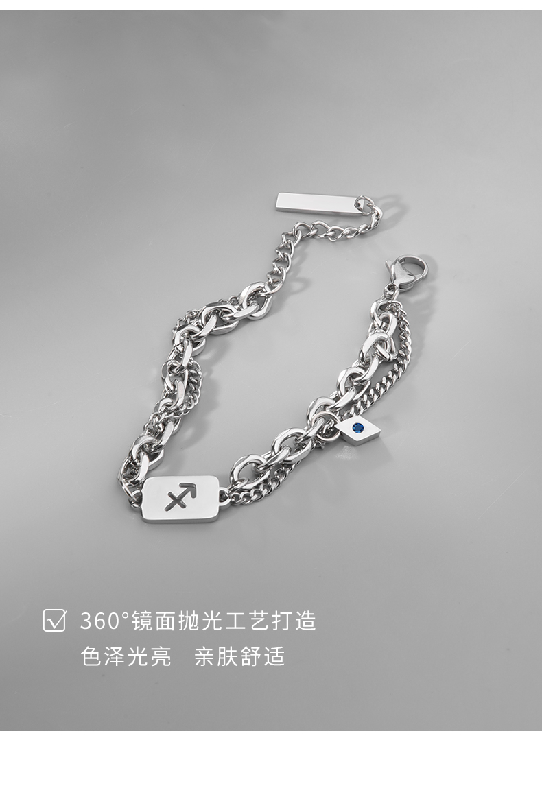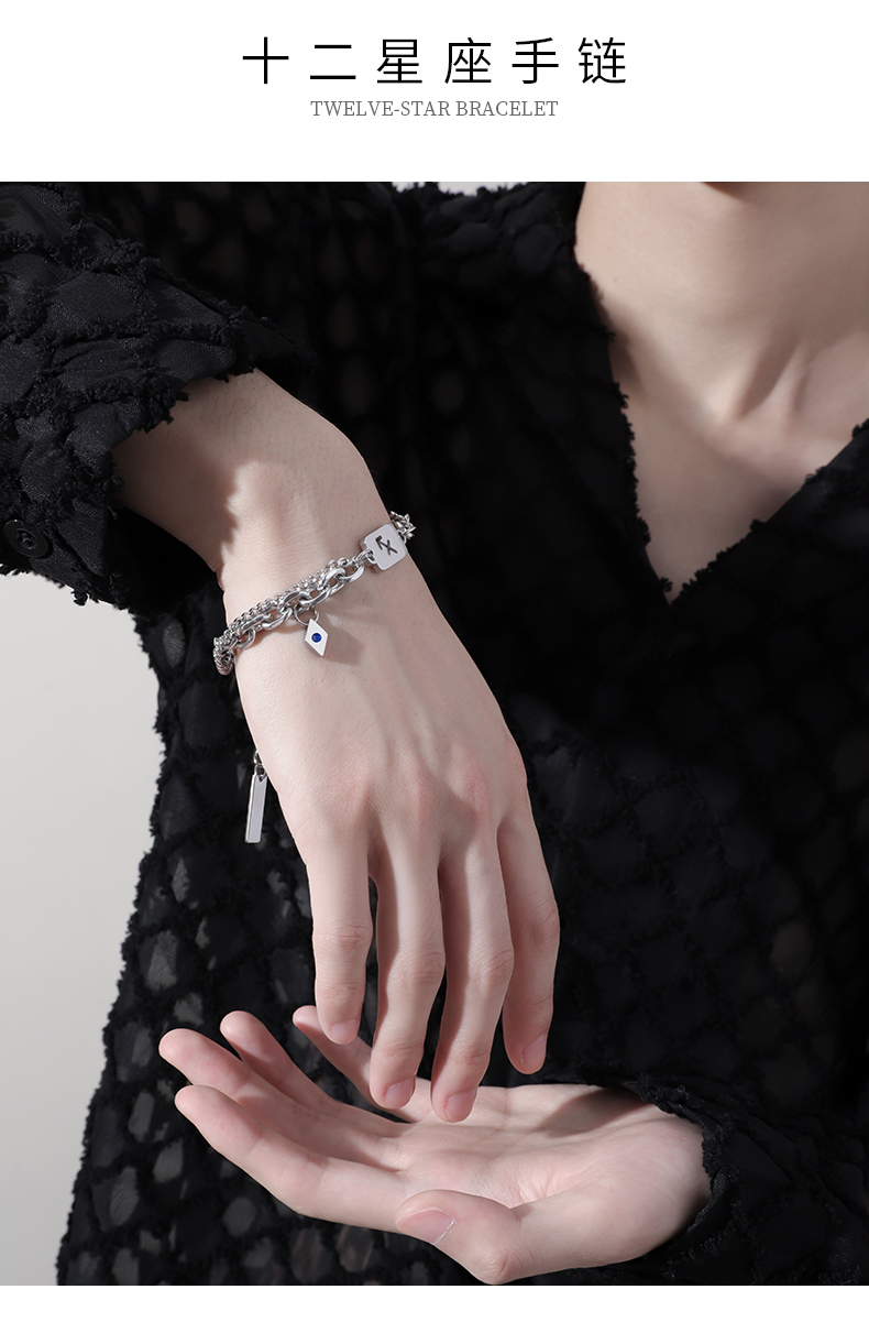 Twelve Zodiac Signs Bracelet for Men, Light Luxury Niche Design Accessories, High-End Titanium Steel Men's Versatile Student Jewelry for Women