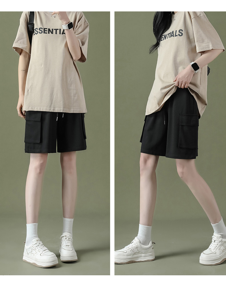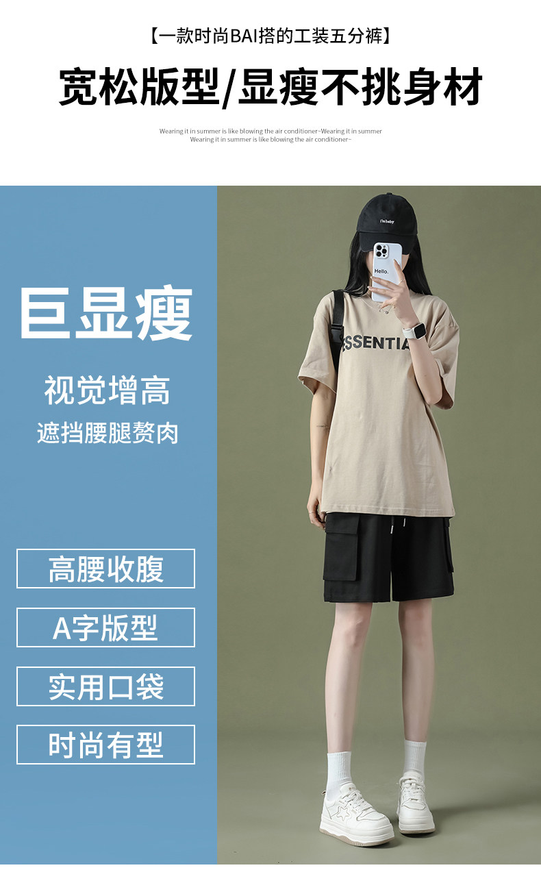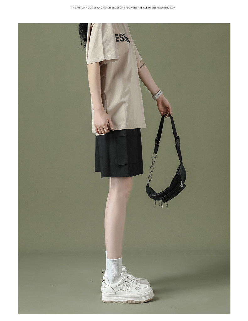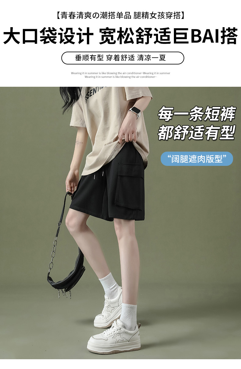 Cargo shorts for women summer large size high waist loose small straight casual wide leg a line trendy ins five point medium pants