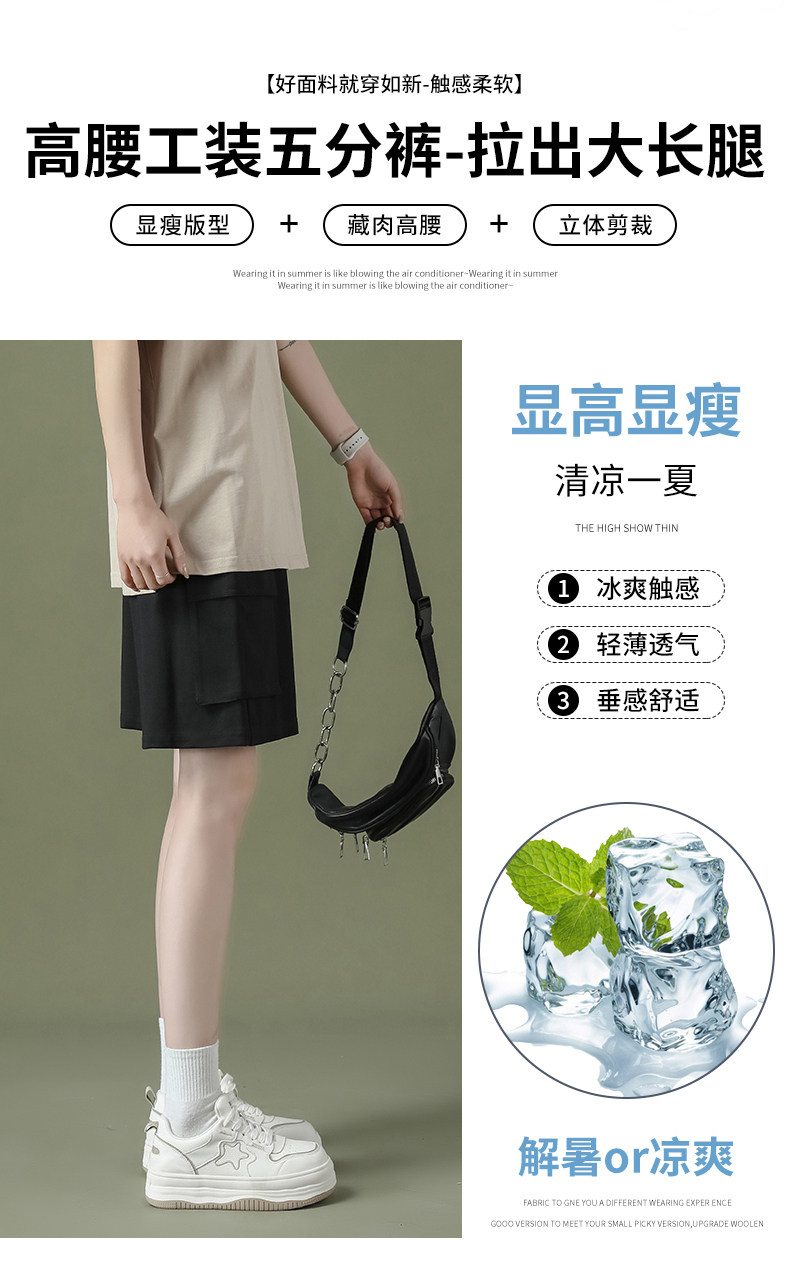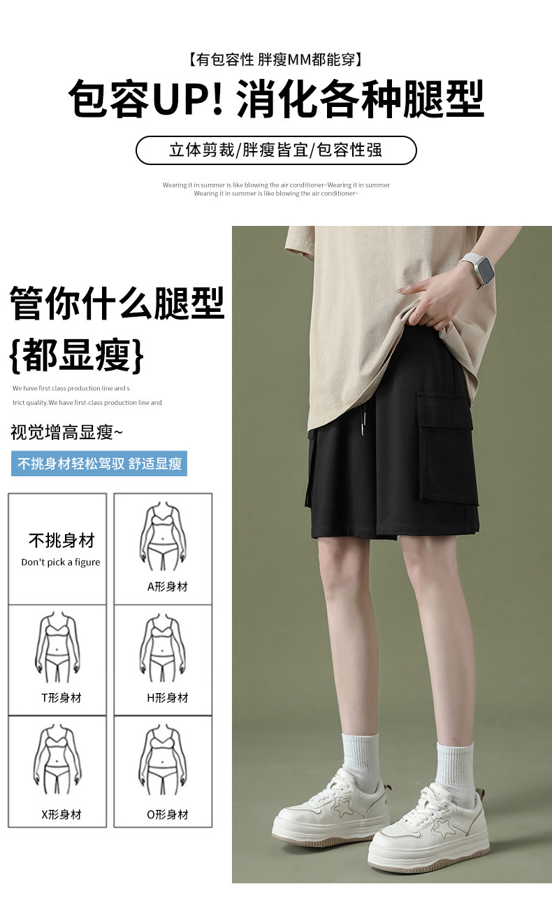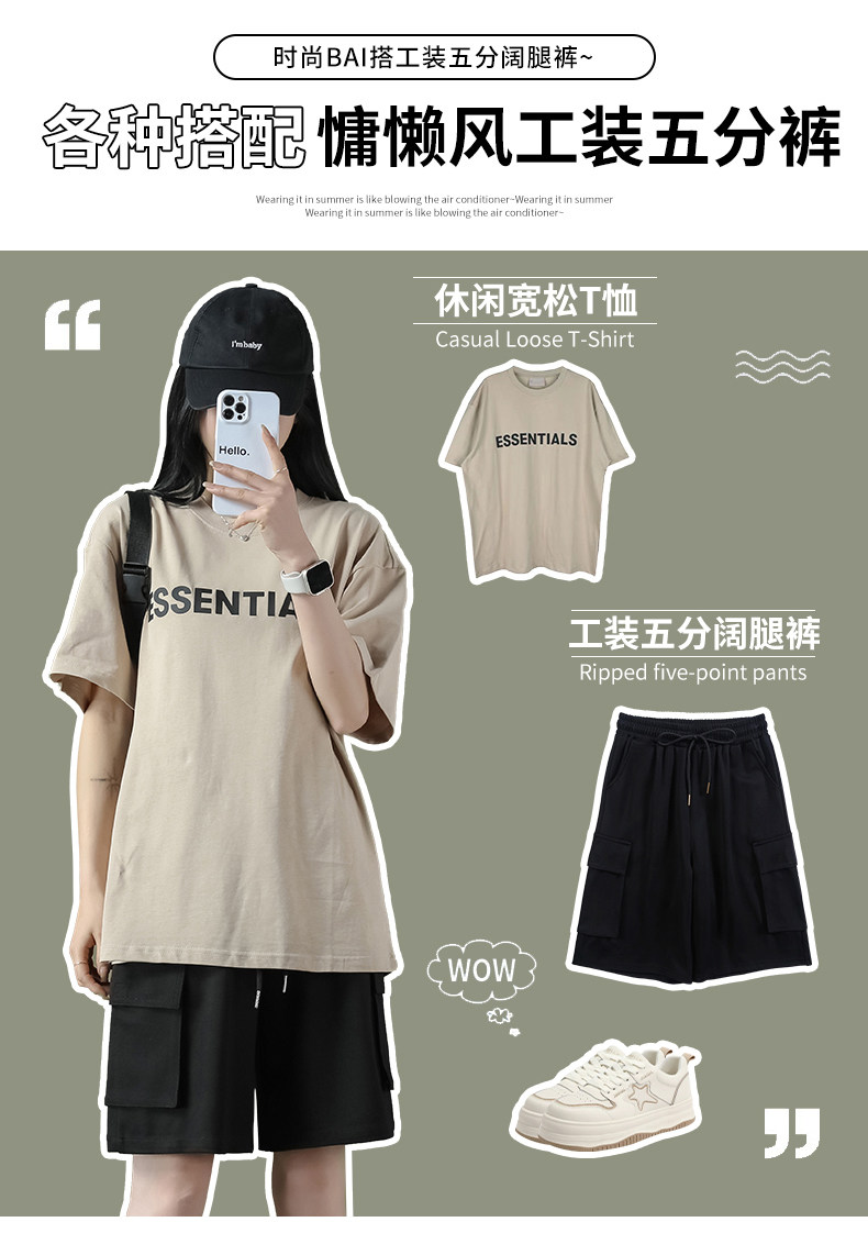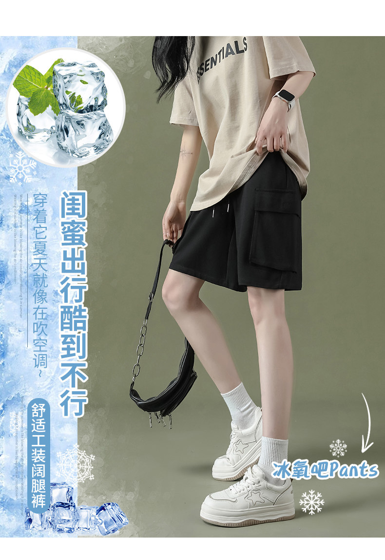 Cargo shorts for women summer large size high waist loose small straight casual wide leg a line trendy ins five point medium pants