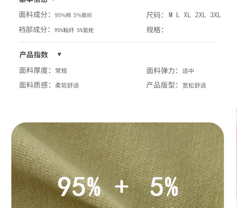 Crotch material composition Viscose fiber (viscose fiber) 95% Polyurethane elastic fiber (spandex) 5%
