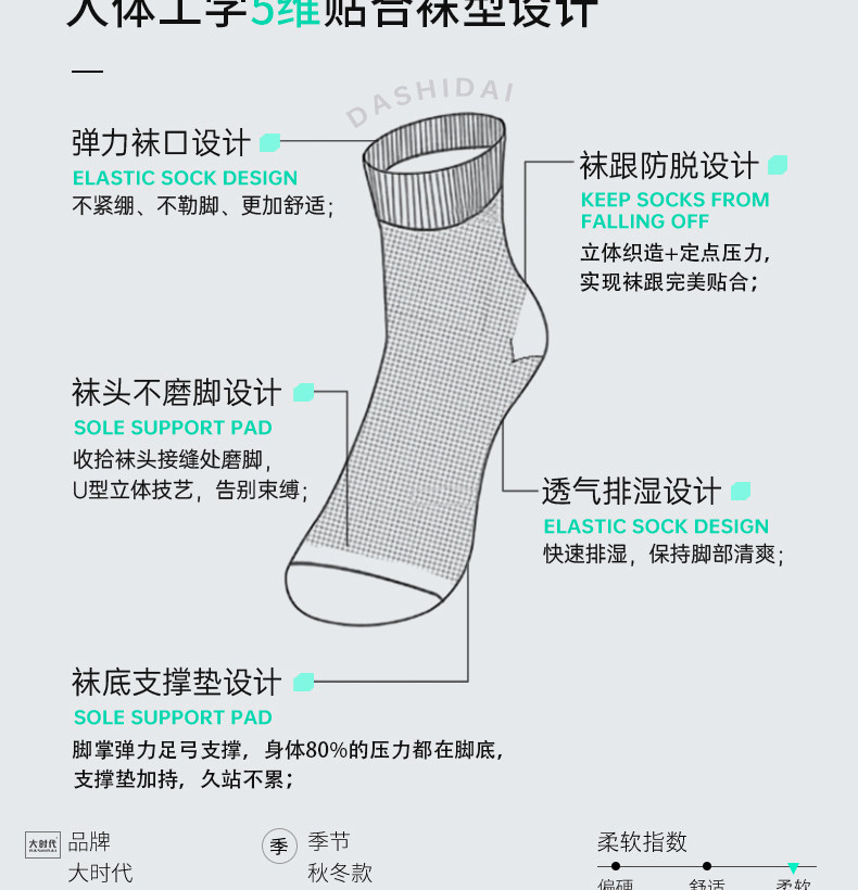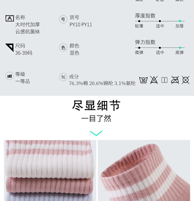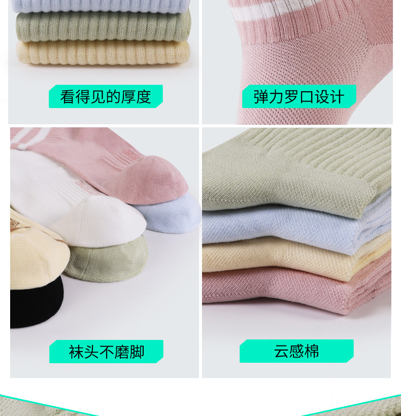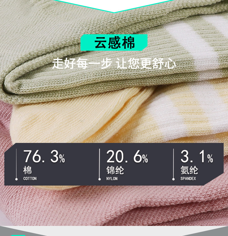 Big era cloud-sense antibacterial women's mid-calf socks, college style casual, versatile, soft and comfortable striped stockings, 6 pairs