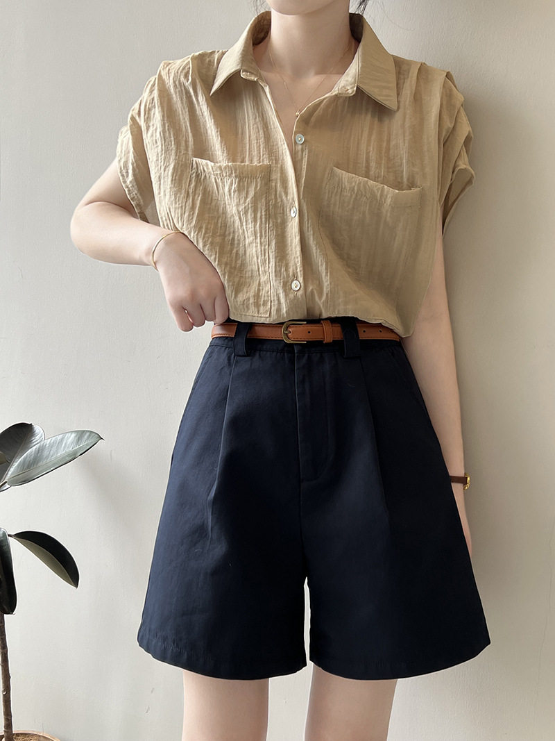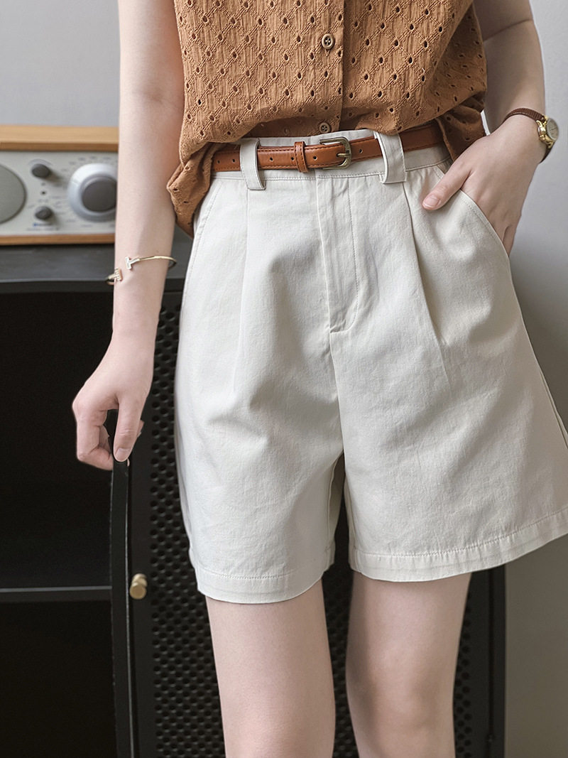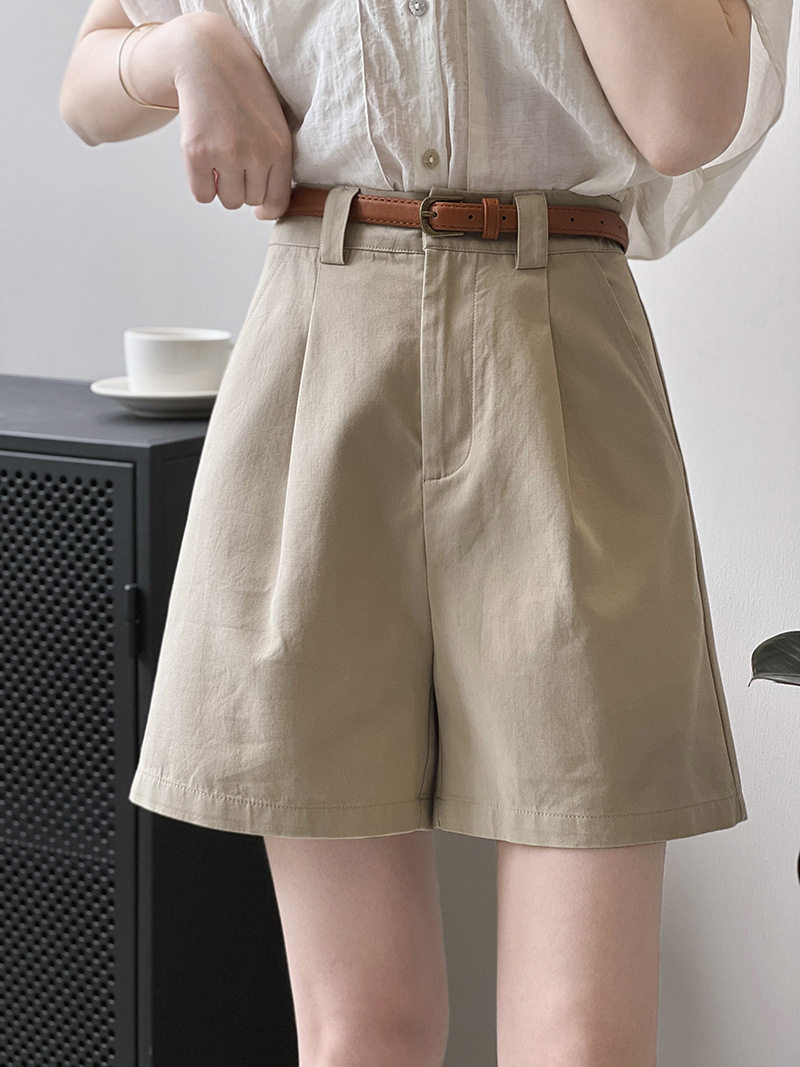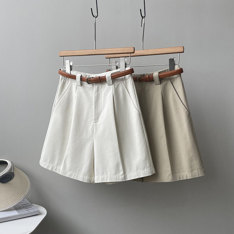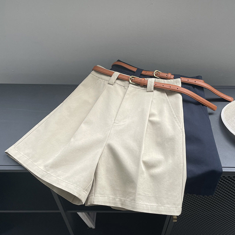 Japanese work shorts for women in summer, thin, small, pear-shaped, plus size, slim, high-waisted, wide-legged, mid-length pants