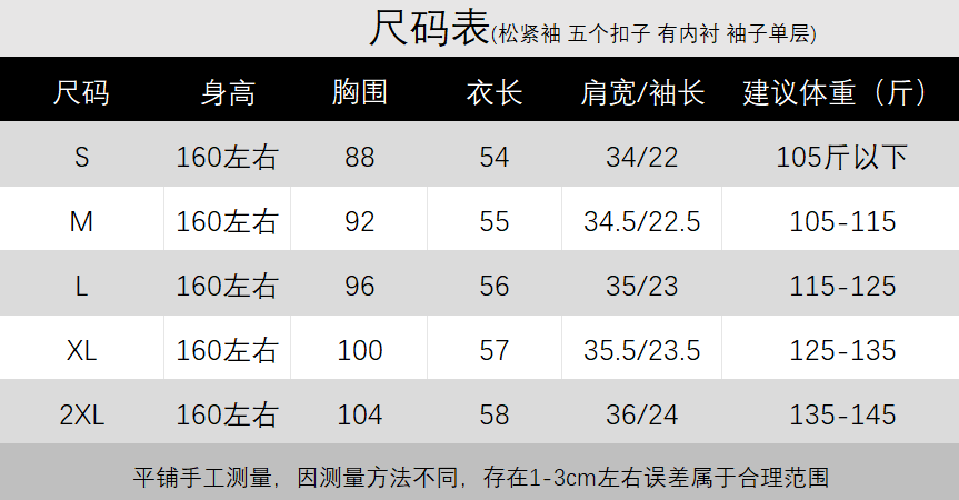 China (cm) 160-165/84-86 165-170 / 88-90 167-172 / 92-96 168-173 / 98-102 170-176 / 106-110