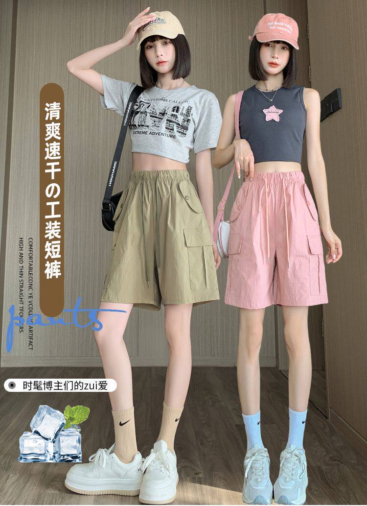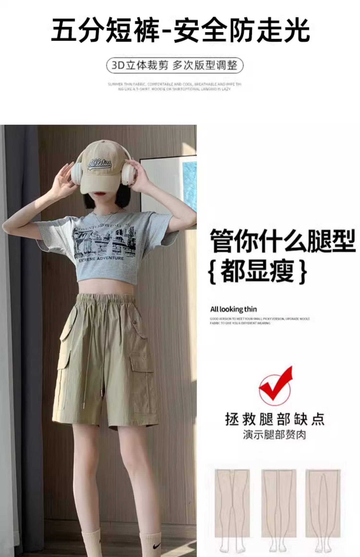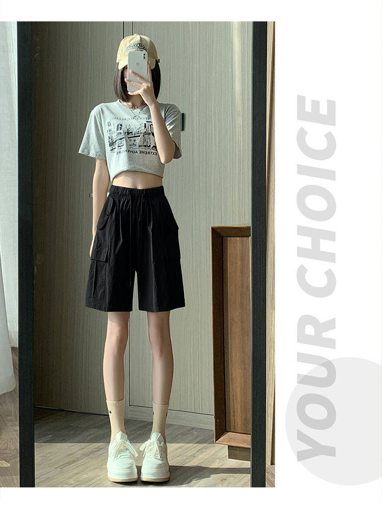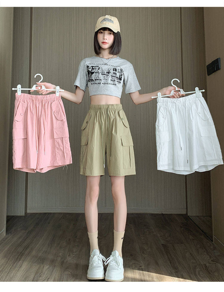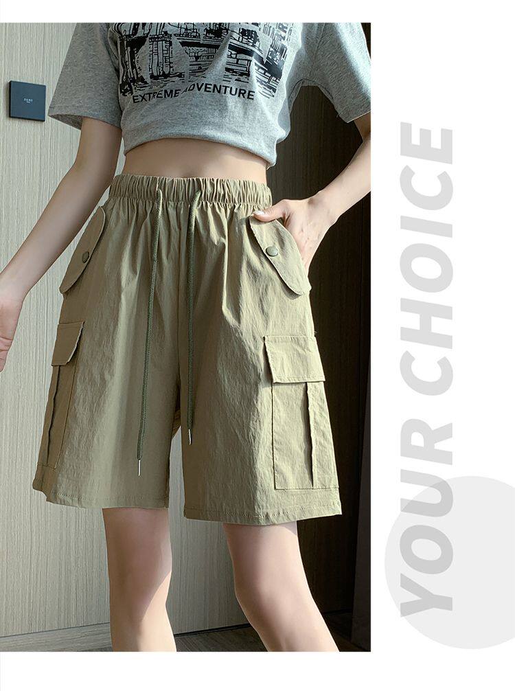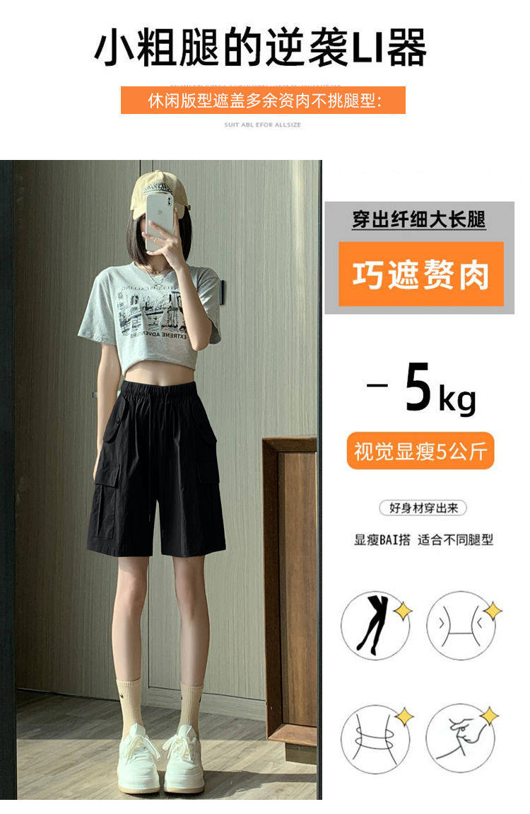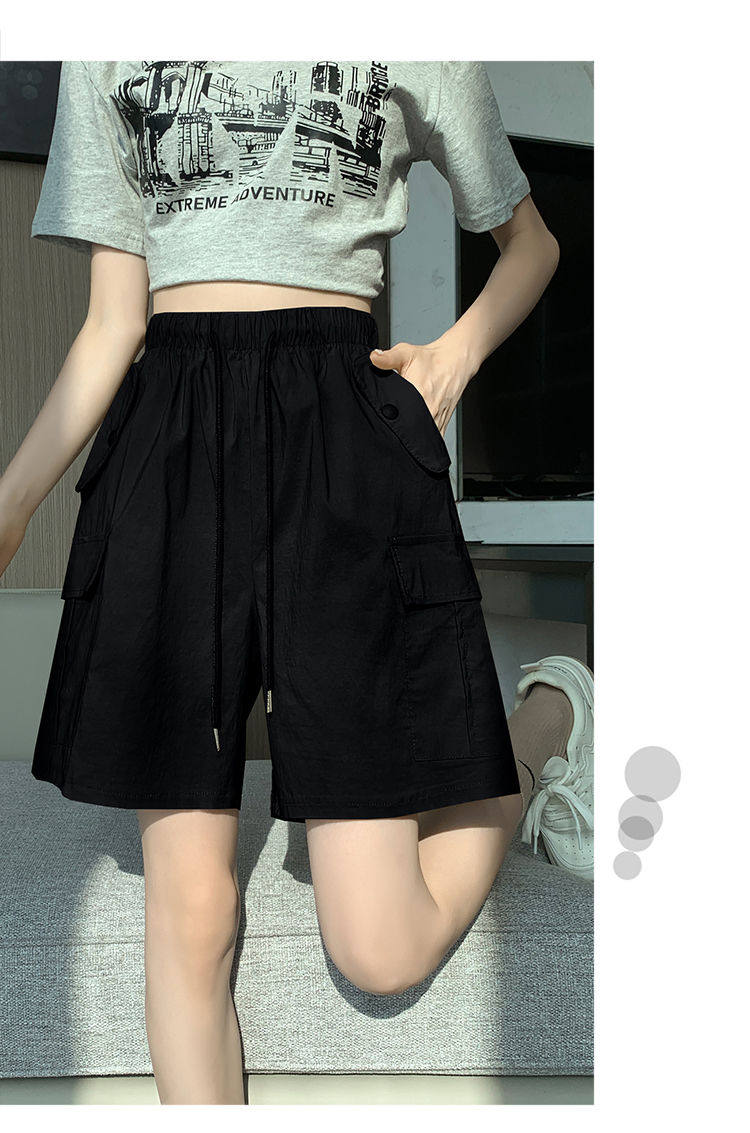 Extra large size korean style loose casual versatile quarter pants trendy fat sister 300jin jin is equal to 0.5kg summer high waist pocket shorts for women