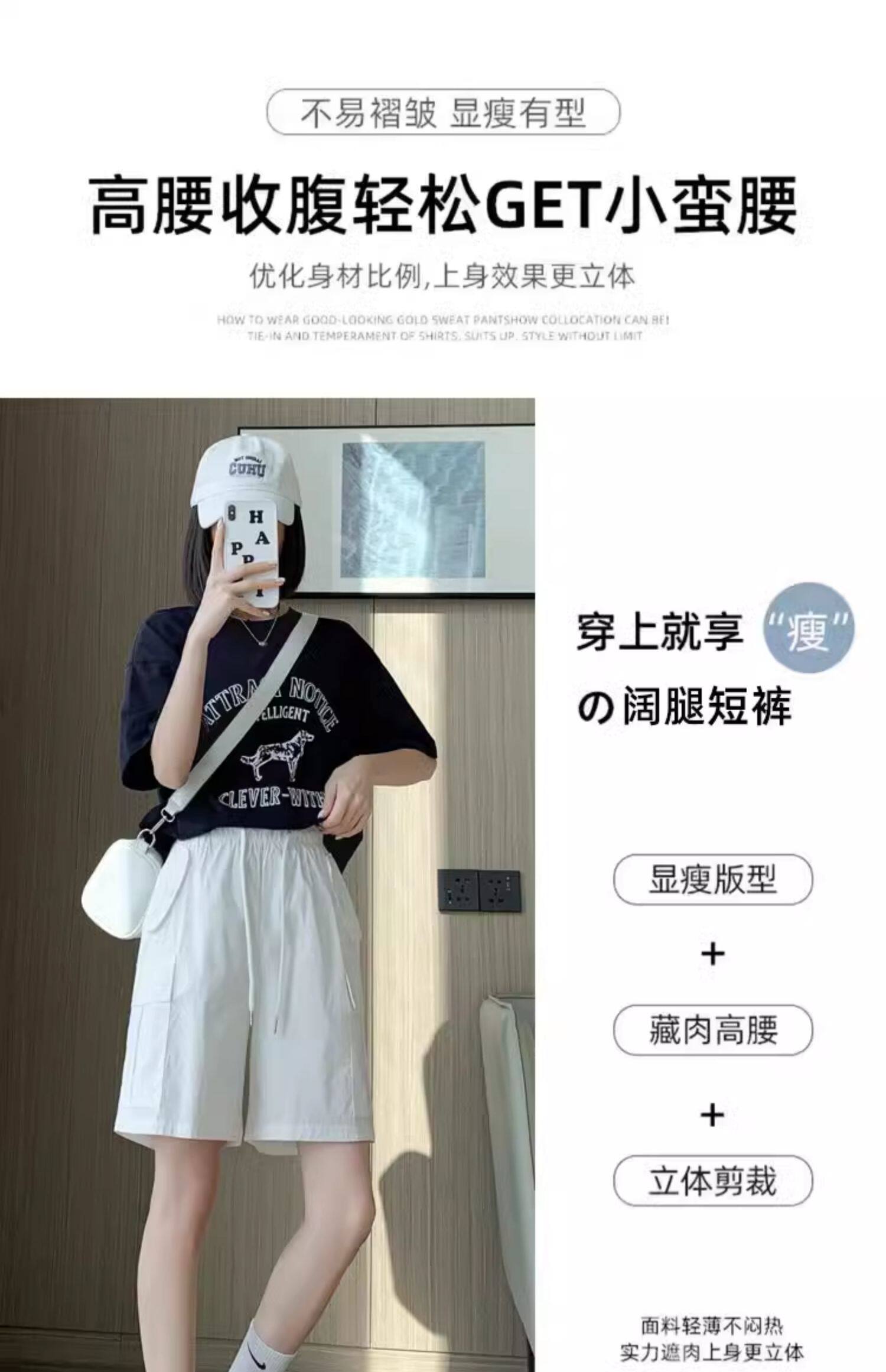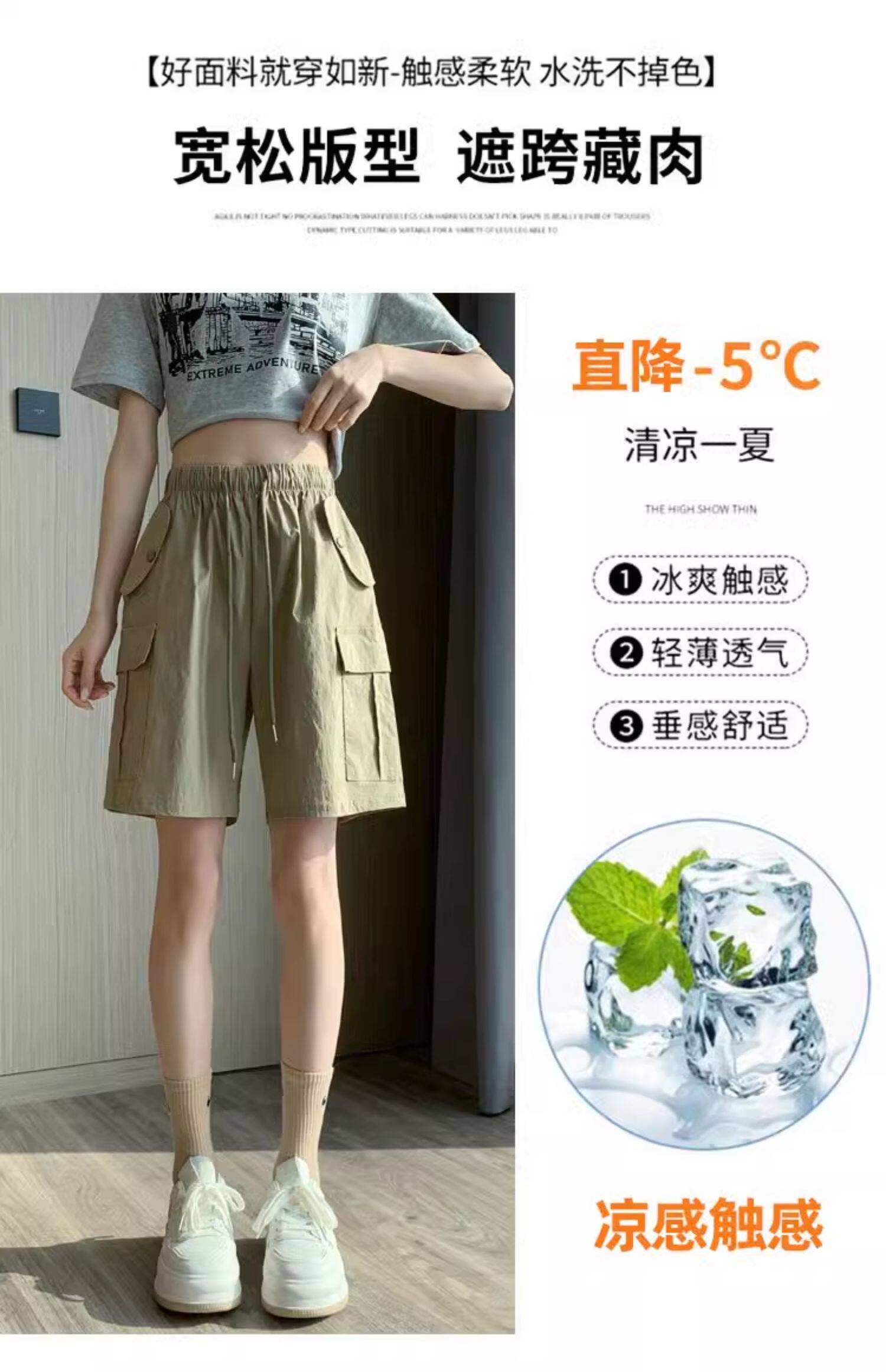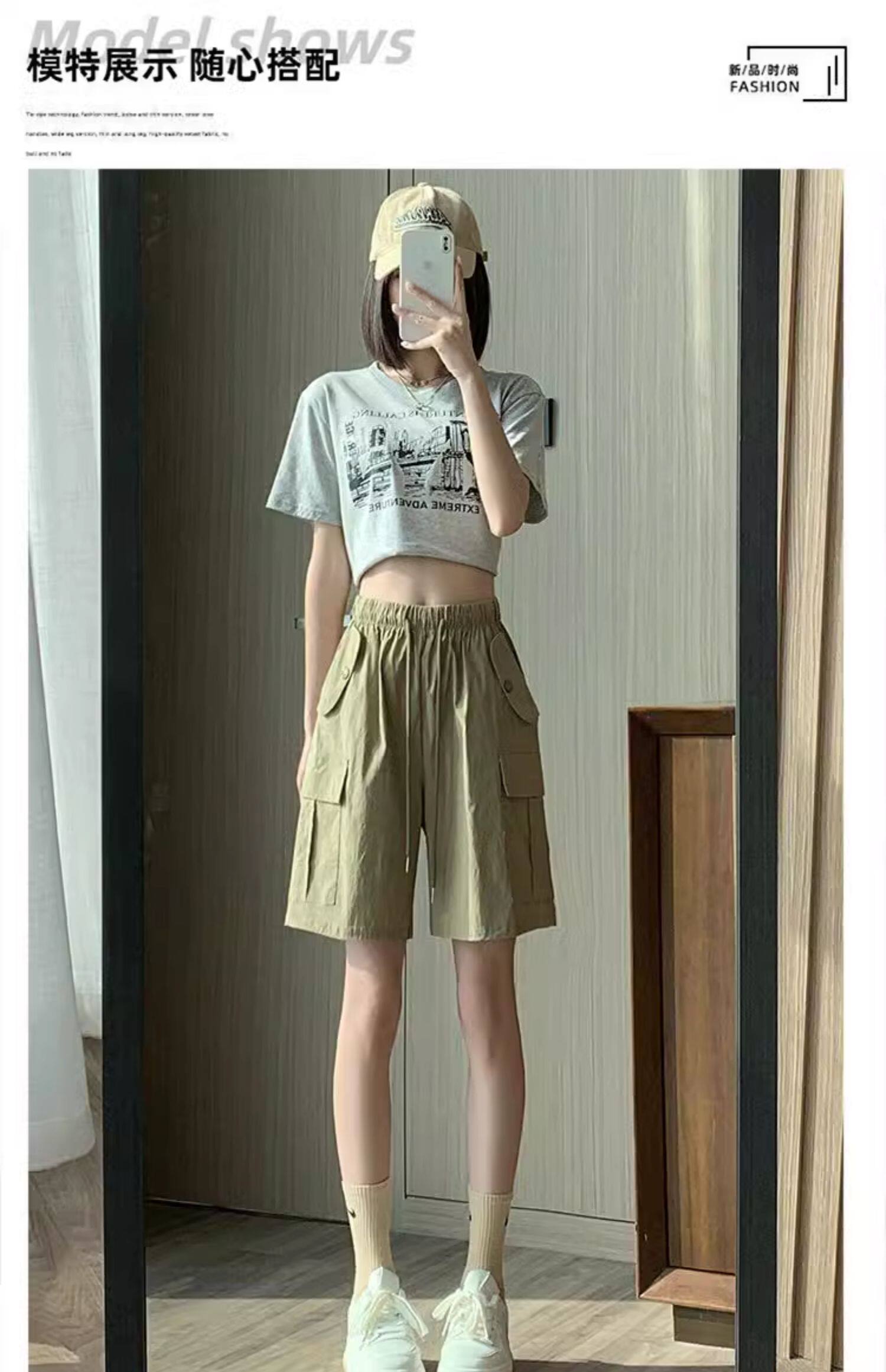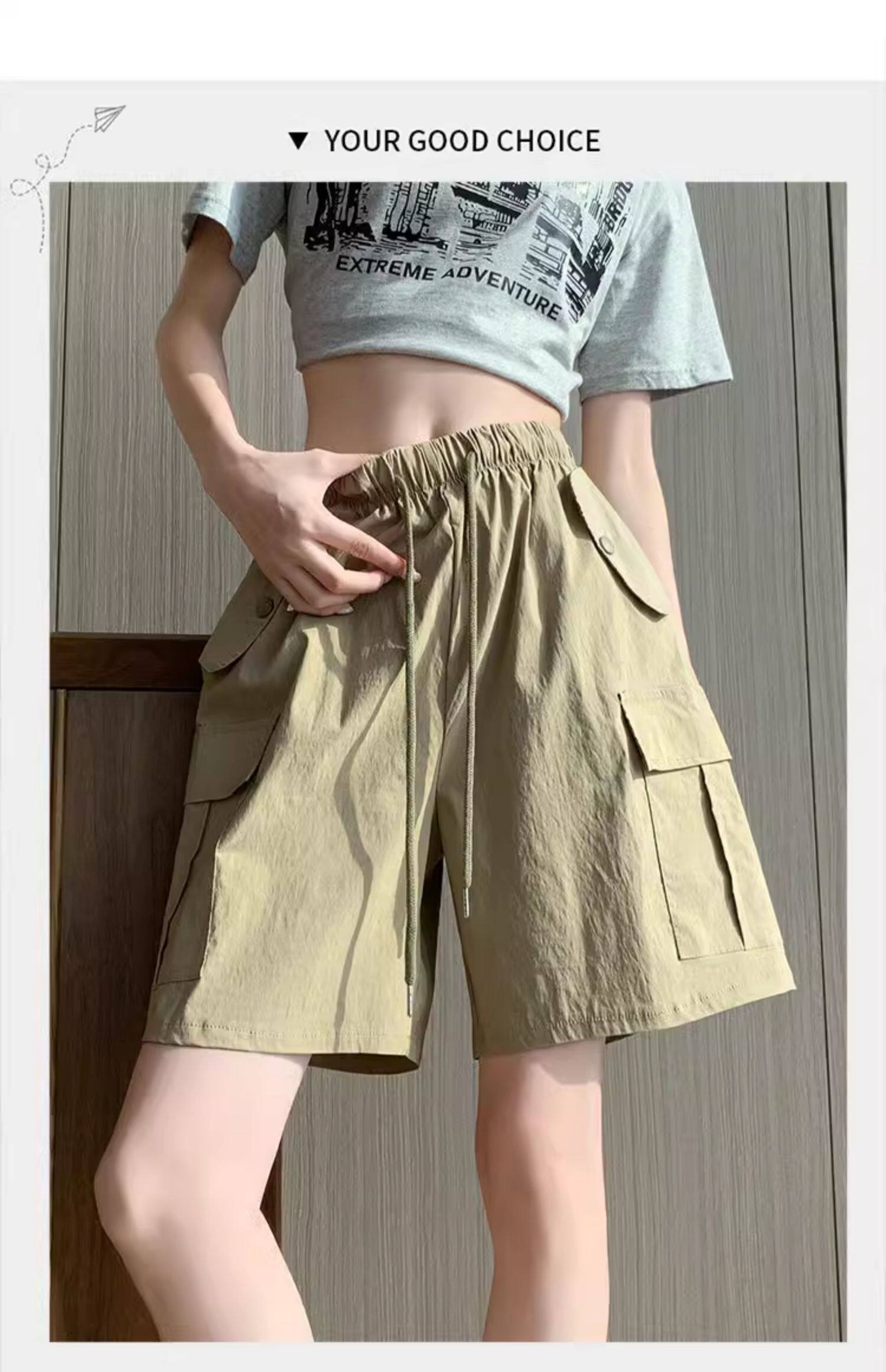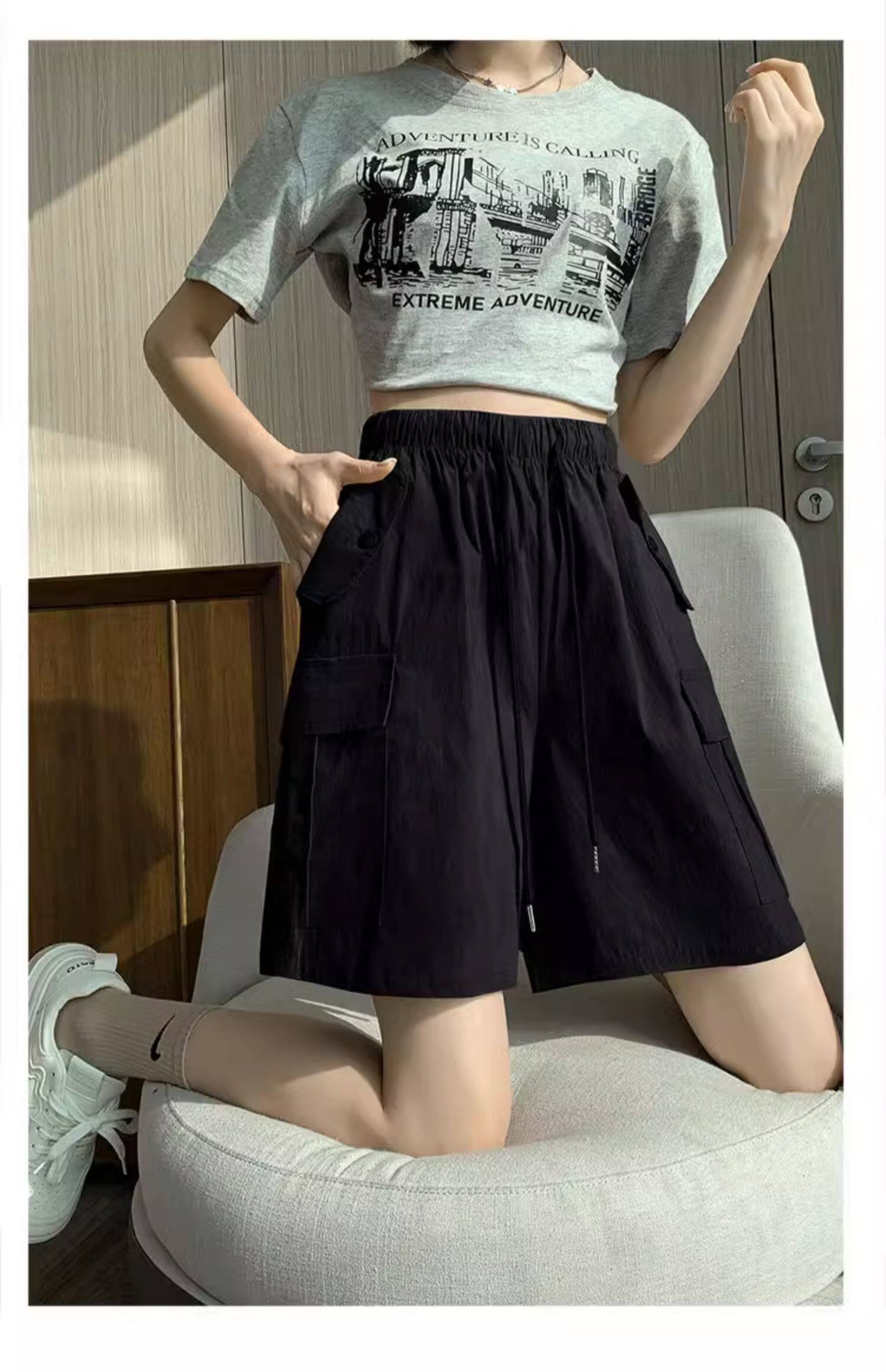 Extra large size korean style loose casual versatile quarter pants trendy fat sister 300jin jin is equal to 0.5kg summer high waist pocket shorts for women