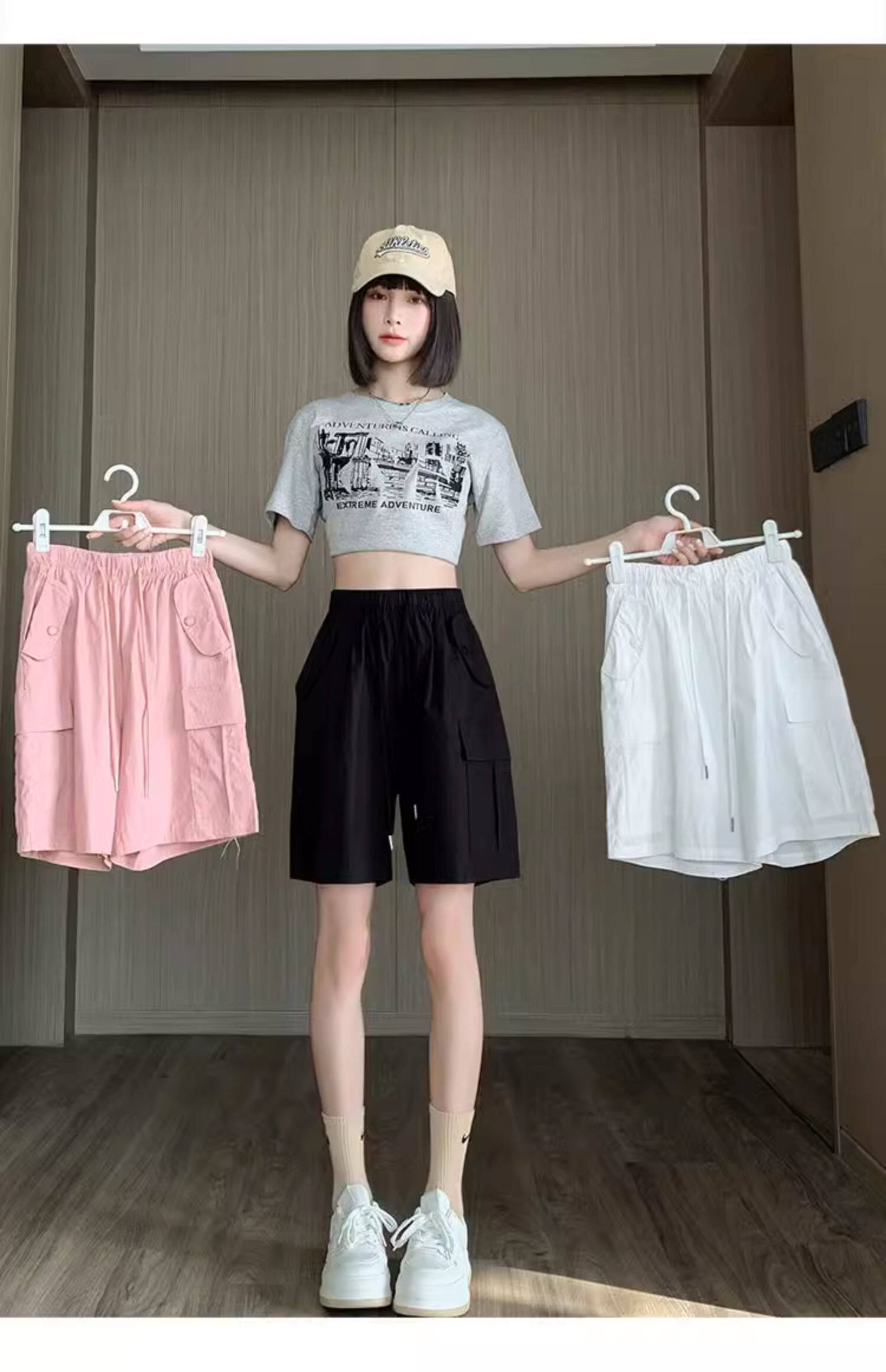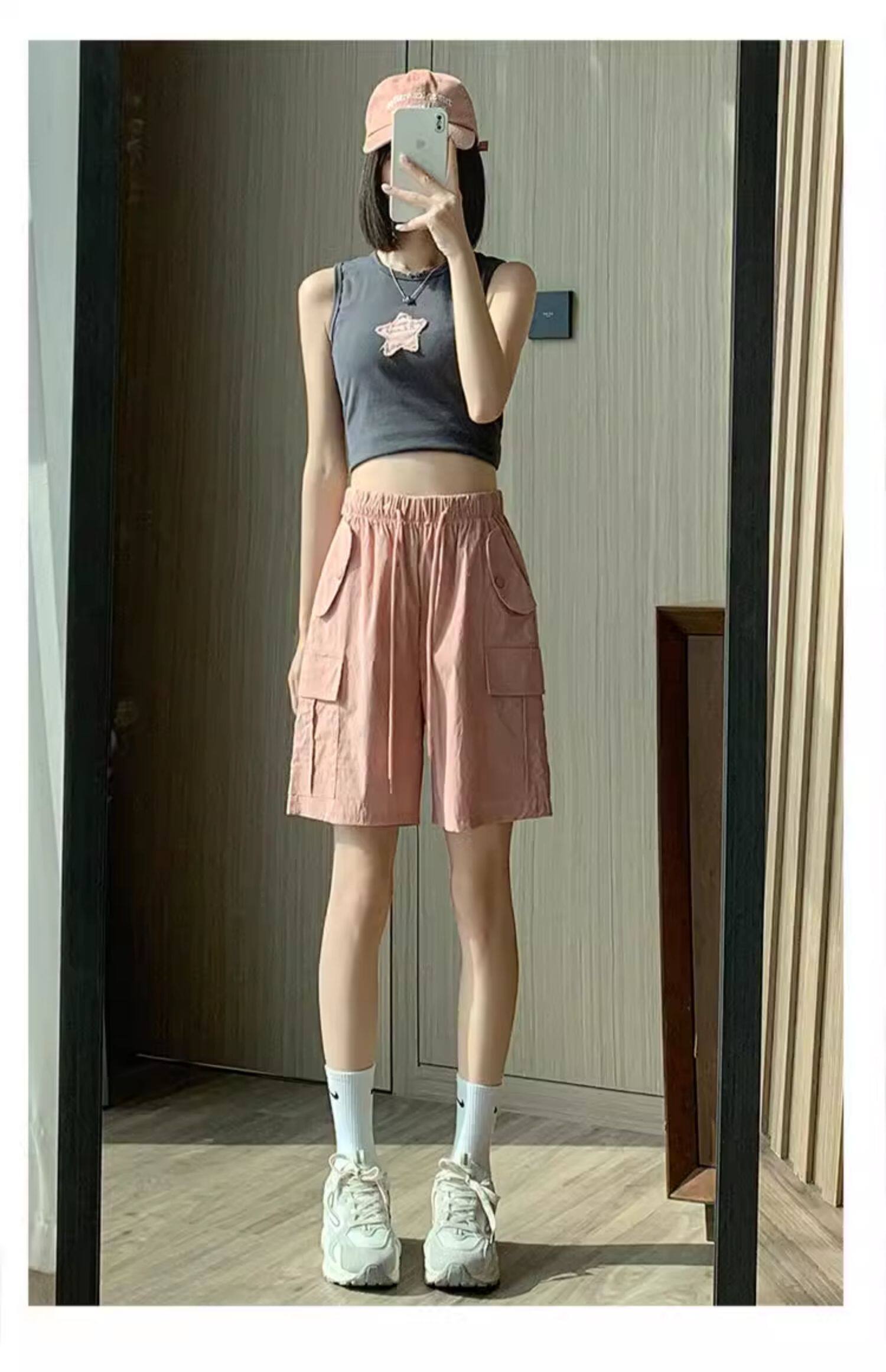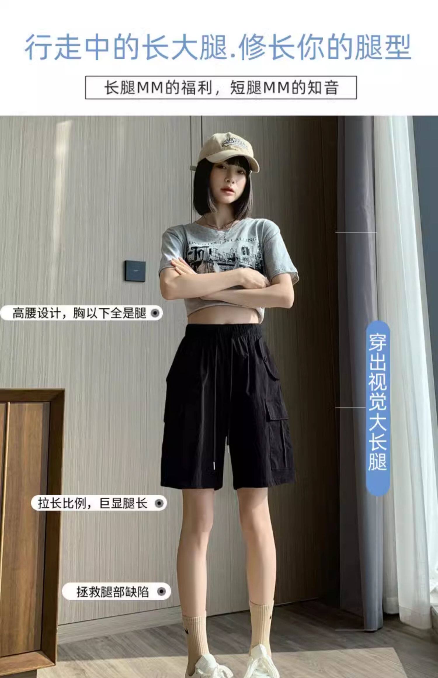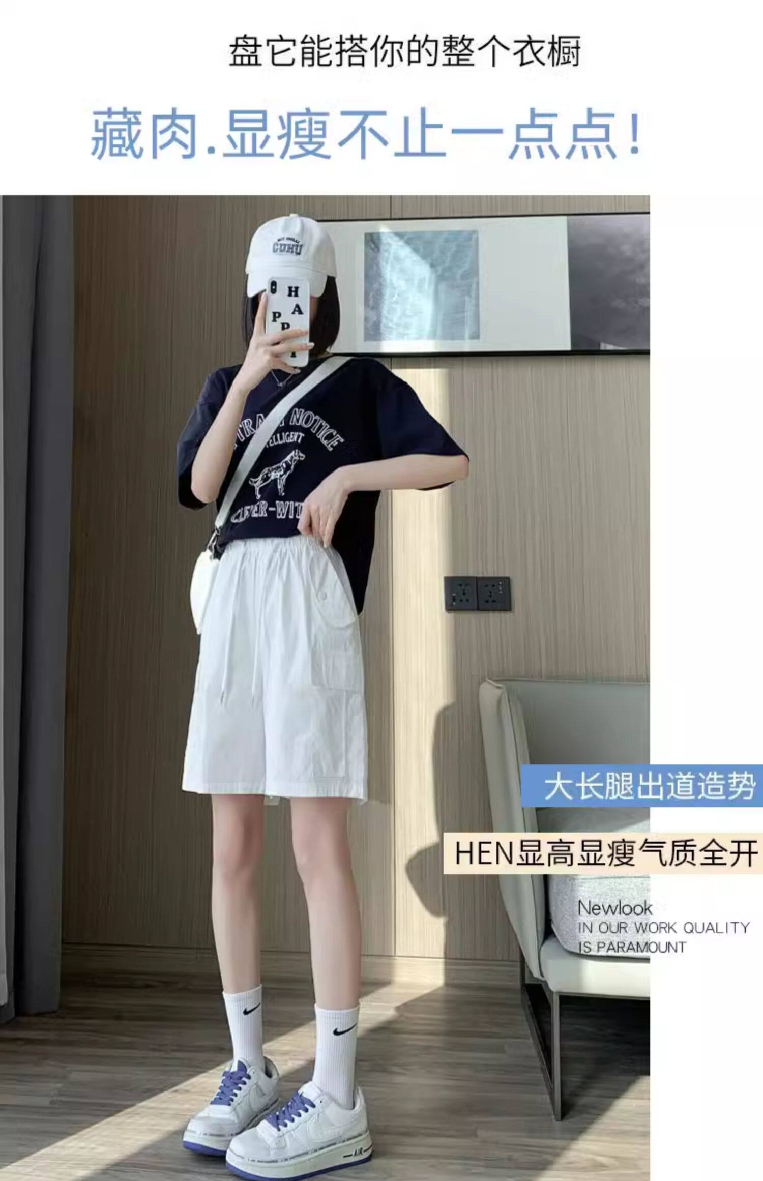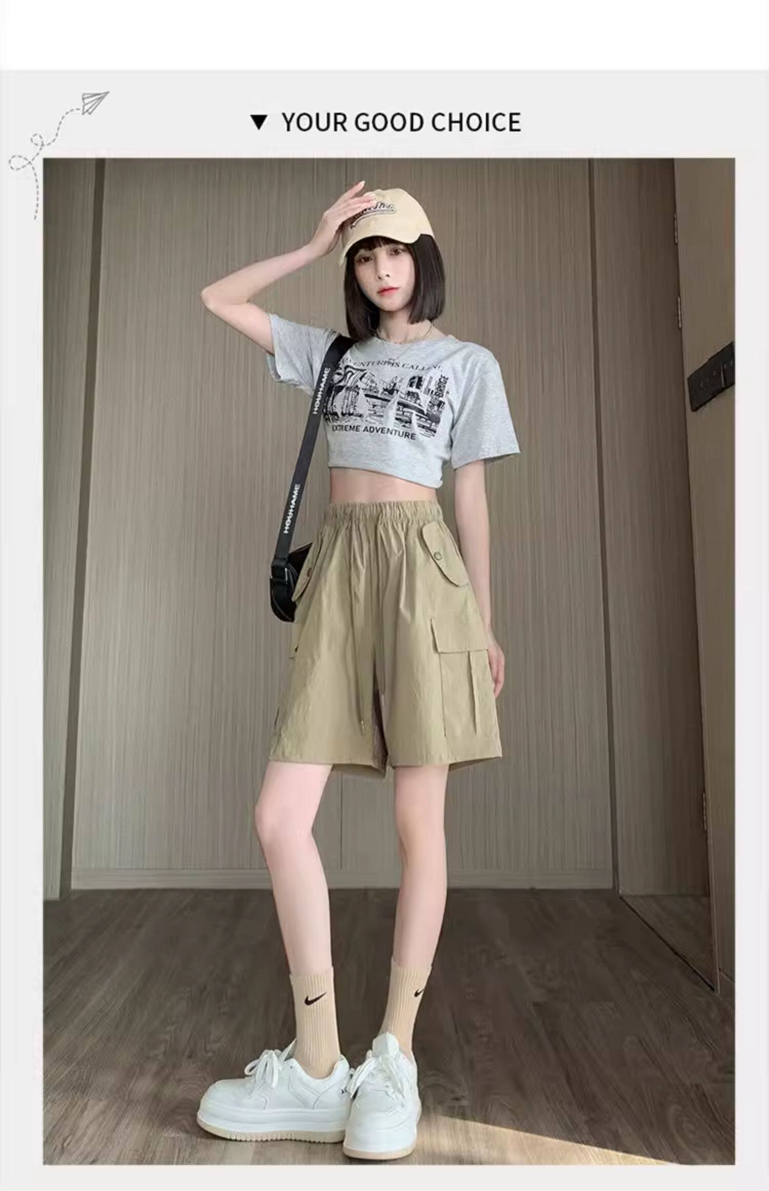 Extra large size korean style loose casual versatile quarter pants trendy fat sister 300jin jin is equal to 0.5kg summer high waist pocket shorts for women