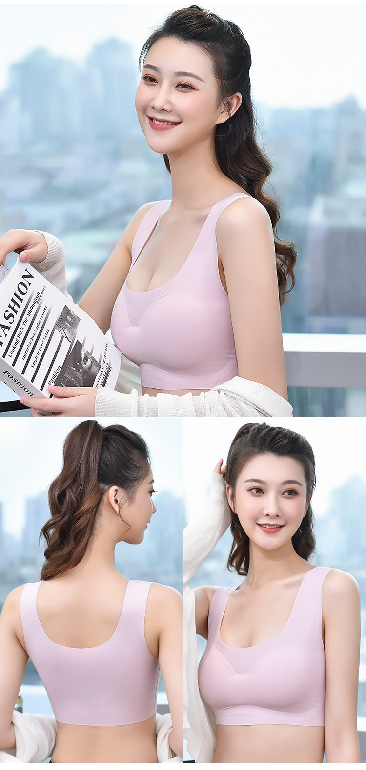 Popular japanese fashion product anxin generation seamless underwear one-piece women's ice silk beautiful back sports yoga vest bra