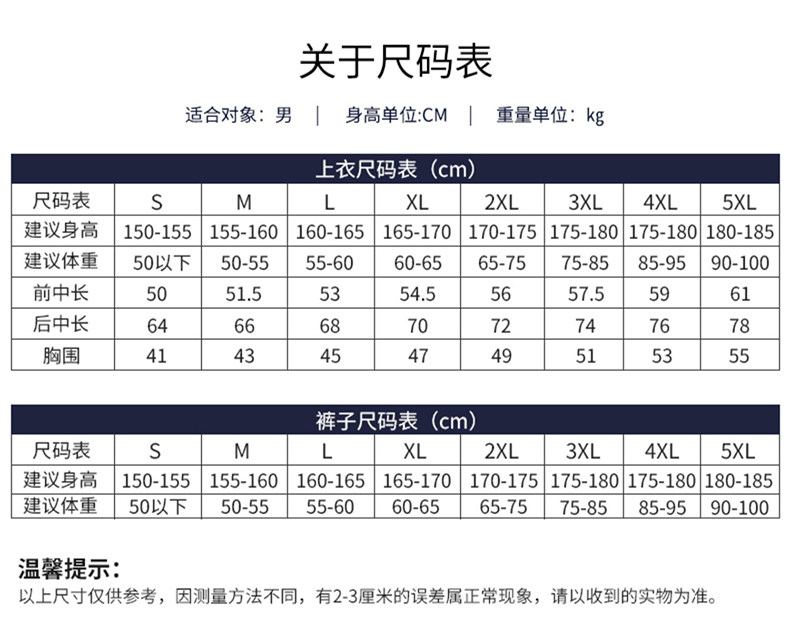 China (cm) 165 / 88-90 170 / 96-98 175 / 108-110 180 / 118-122 185 / 126-130