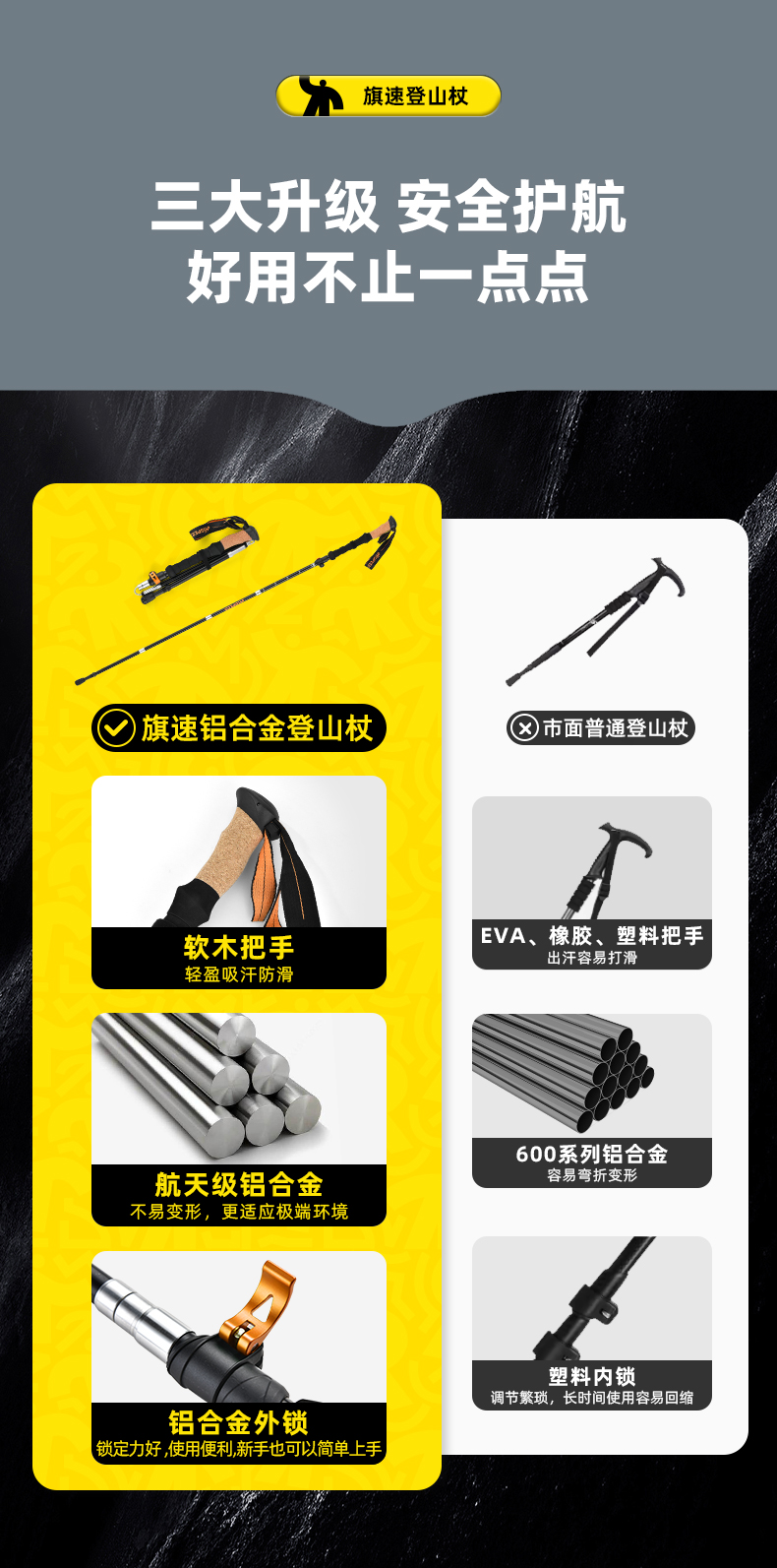 Flag Speed Hiking Poles, Lightweight Foldable Carbon Fiber Telescopic Walking Sticks, Professional Outdoor Hiking Equipment, Climbing Sticks