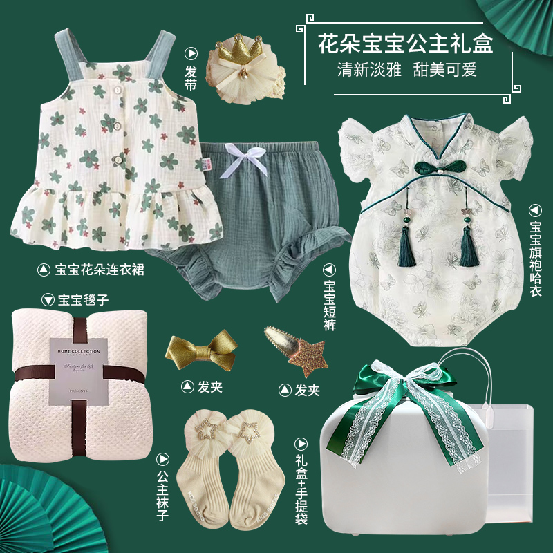 Autumn and Winter Clothing, Chinese Style Cheongsam, Newborn Meeting Gift Box, Baby Girl Spring Suit, Newborn Baby Clothes, Full-Month Baby Gift