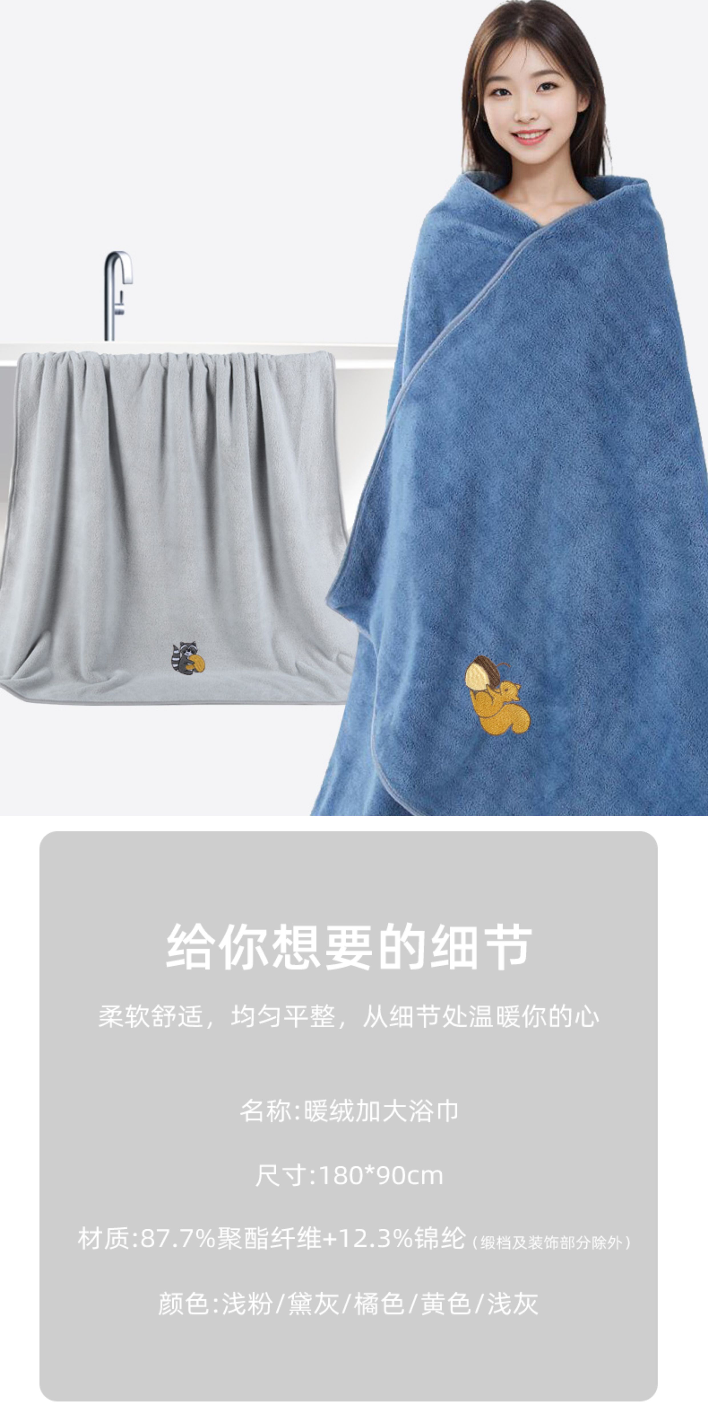 Color Classification [Thickened Single Pack]Orange (Extra Large 180X90Cm Soft Coral Velvet),[Thickened Single Pack]Gray (Extra Large 180X90Cm Soft Coral Velvet),[Thickened Single Pack]Dark Blue (Extra Large 180X90Cm Soft Coral Velvet),[Thickened 2 Pack]Orange + Dark Blue (Extra Large 180X90Cm),[Thickened 2 Pack]Orange + Gray (Extra Large 180X90Cm),[Thickened 2 Pack]Pink + Dark Blue (Extra Large 180X90Cm),[Thickened Single Pack]Yellow (Extra Large 180X90Cm Soft Coral Velvet),[Thickened Single Pack]Pink (Extra Large 180X90Cm Soft Coral Velvet),[Thickened 2 Pack]Gray + Dark Blue (Extra Large 180X90Cm),[Thickened 2 Pack]Pink + Gray (Extra Large Size 180X90Cm),[Thickened 2 Pack]Gray + Yellow (Extra Large Size 180X90Cm),[Thickened 2 Pack]Pink + Yellow (Extra Large Size 180X90Cm),[Thickened 2 Pack]Orange + Yellow (Extra Large Size 180X90Cm),[Thickened 2 Pack]Pink + Orange (Extra Large Size 180X90Cm),[Thickened 2 Pack]Yellow + Dark Blue (Extra Large 180X90Cm),[Thickened Single Pack]Red Powder (Absorbent Cotton, Extra Large Size 180X90Cm),[Thickened Single Pack]Indigo (Absorbent Cotton, Extra Large Size 180X90Cm),[Thickened Single Pack]Gray (Absorbent Cotton, Extra Large Size 180X90Cm),[Thickened Single Pack]Autumn Leaves Yellow (Water-Absorbent Pure Cotton, Extra Large Size 180X90Cm),[2 Pack]Pink + Dark Gray (Extra Large Size 150X80Cm Soft Coral Velvet),[2 Pack]Pink + Sky Blue (Extra Large Size 150X80Cm Soft Coral Velvet),[2 Pack]Sky Blue + Dark Gray (Extra Large Size 150X80Cm Soft Coral Velvet),[2 Pack]Pink + Dark Gray (Regular 140X70Cm Soft Coral Velvet),[2 Pack]Sky Blue + Dark Gray (Regular 140X70Cm Soft Coral Velvet),[2 Pack]Off-White + Dark Gray (Regular 140X70Cm Soft Coral Velvet),[2 Pack]Pink + Sky Blue (Regular 140X70Cm Soft Coral Velvet),[2 Pack]Off-White + Sky Blue (Regular 140X70Cm Soft Coral Velvet),[2 Pack]Off-White + Pink (Regular 140X70Cm Soft Coral Velvet)
