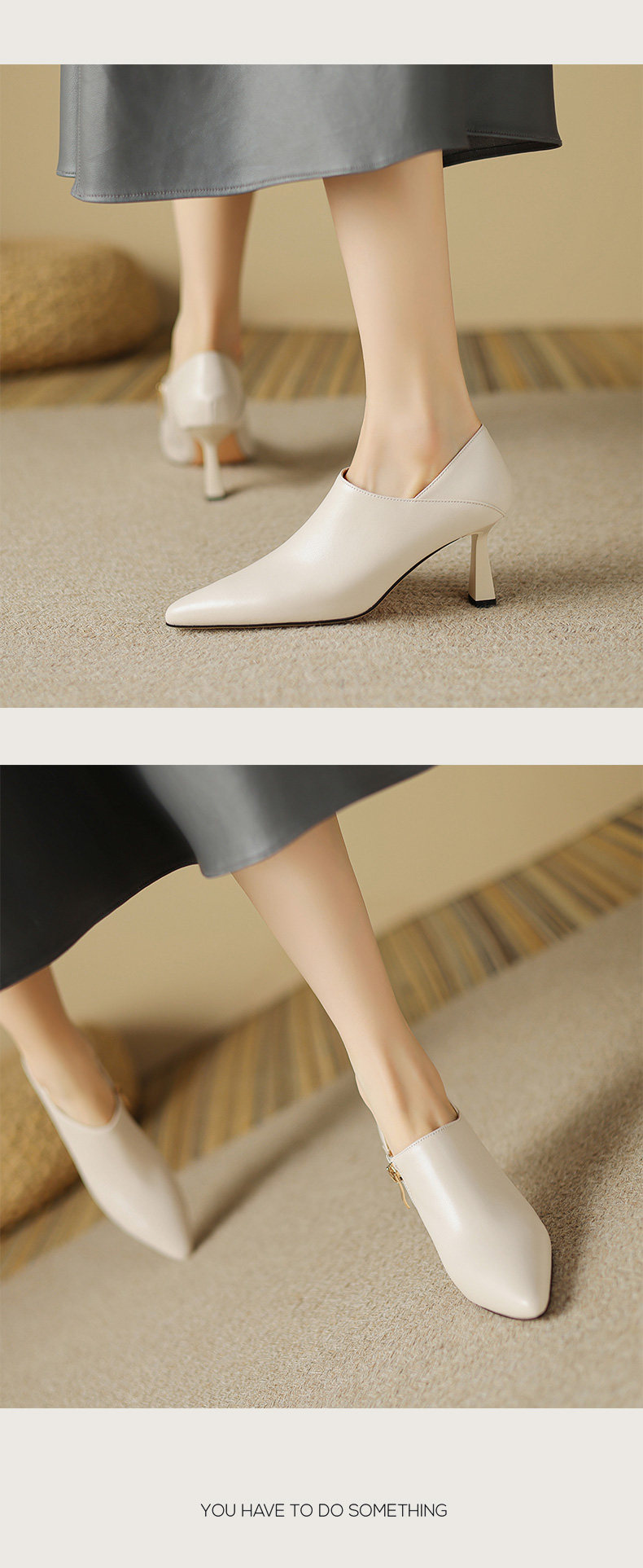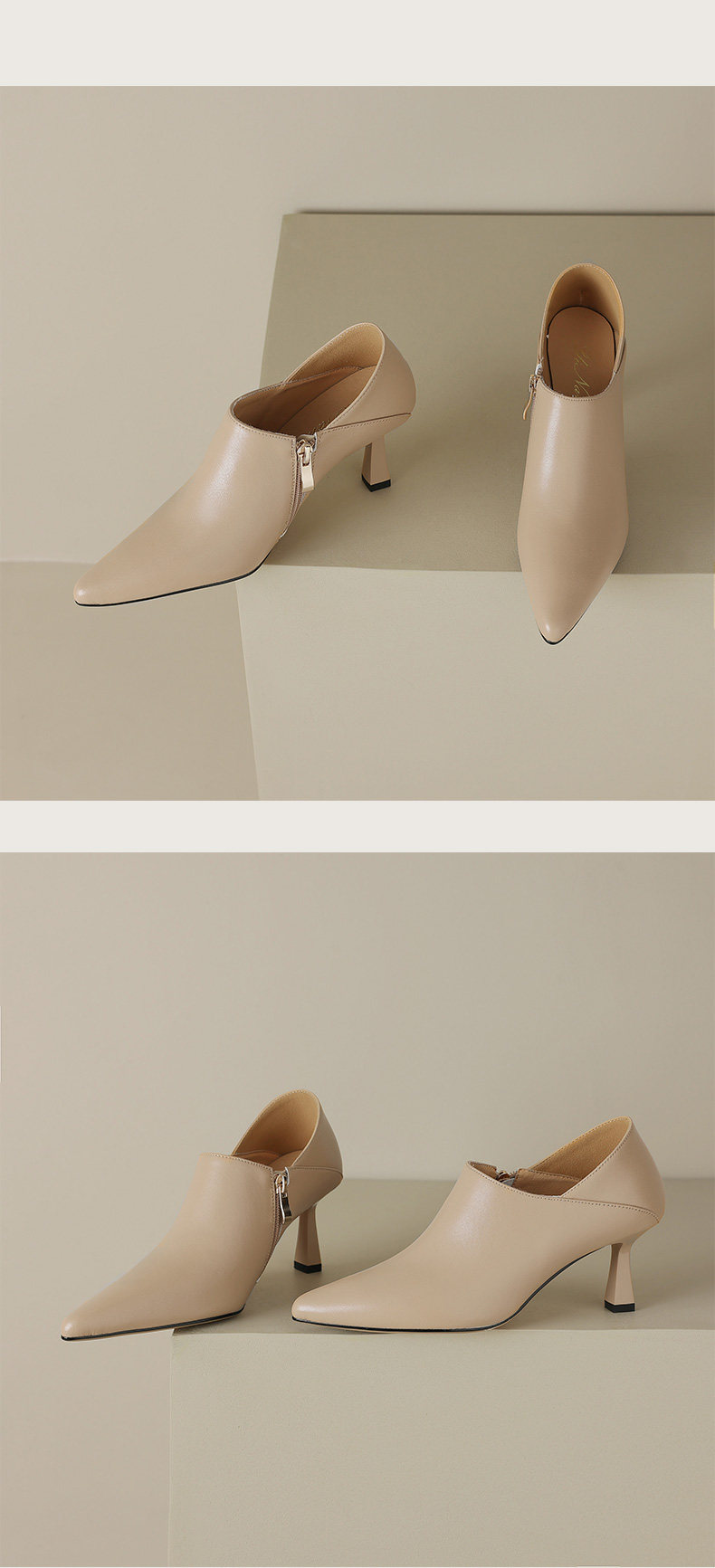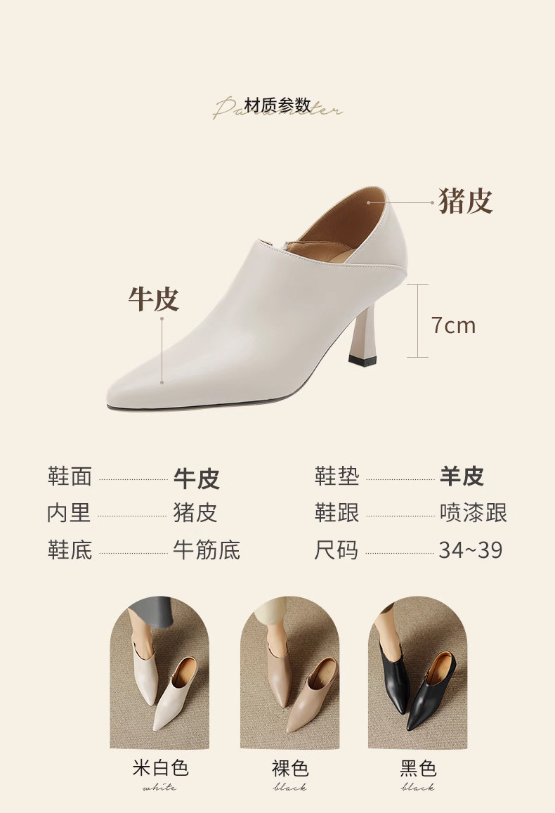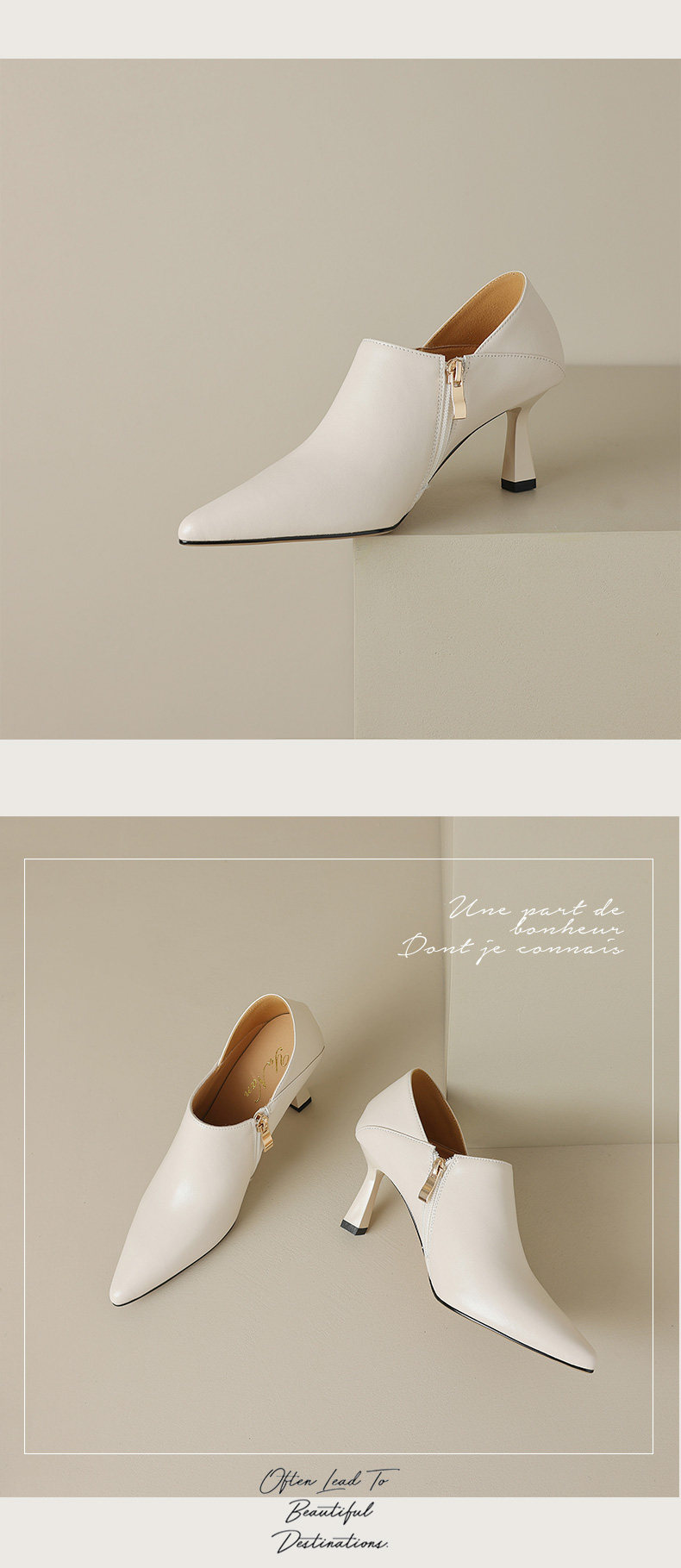 French ankle boots for women spring pointed toe nude high heels women's stiletto white deep mouth single shoes wrapped feet small short boots