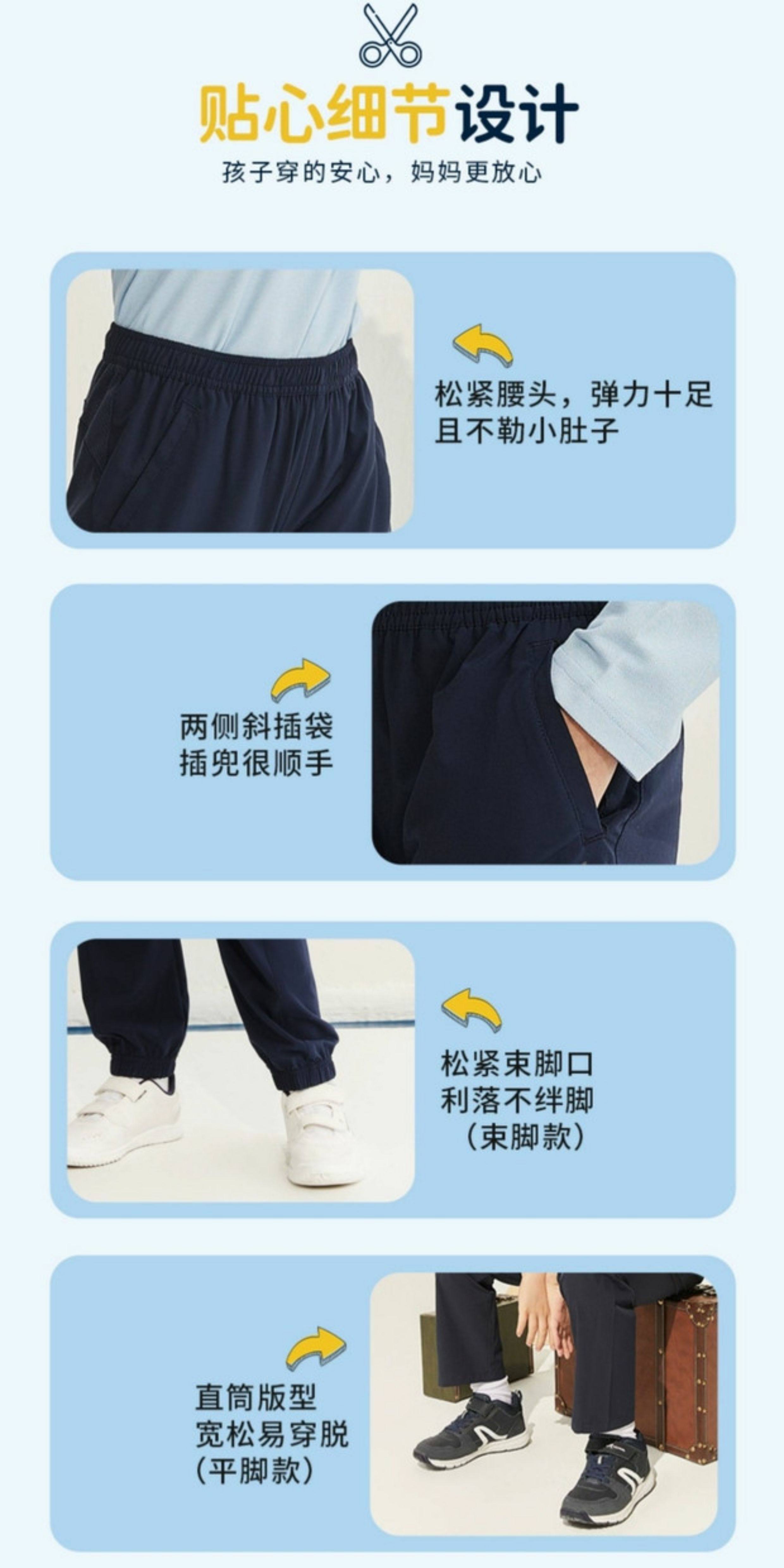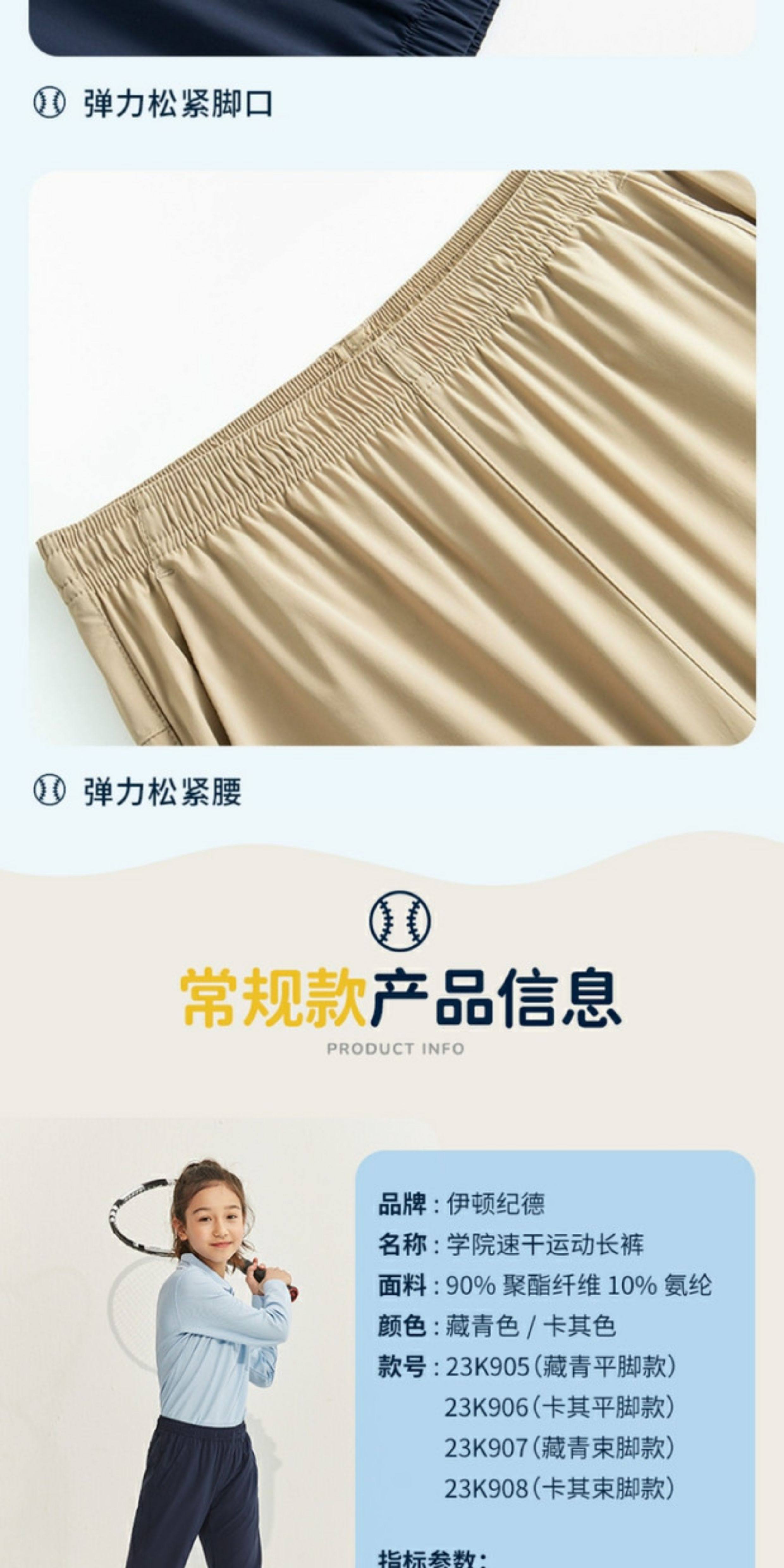 Eton Gide School Uniform College Boys and Girls Spring and Summer Quick-Drying Pants Breathable Children's Casual Straight Thin Sports Trousers