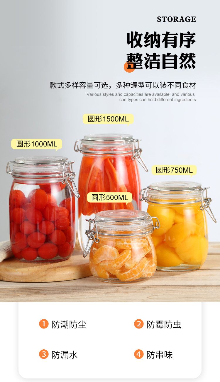 Sealed Jar Glass Food Bottle Honey Lemon Passion Fruit Sparkling Wine Pickles Earthen Jar For Home Storage Storage Jar
