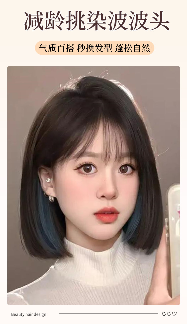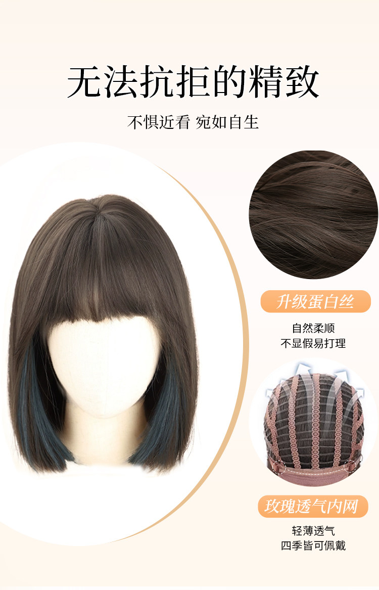 Color Classification Fashionable and Whitening [Cold Brown Highlights Haze Blue] + Care Set,Light Luxury High-End Customized Short Hair [Cold Brown],Light Luxury High-End Customized Short Hair [Dark Brown]