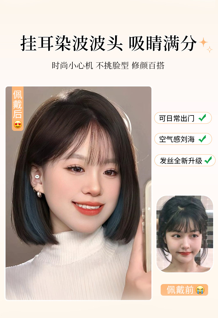 Wig Bangs Classification Can Be Worn Straight or with a Side-Swept Fringe