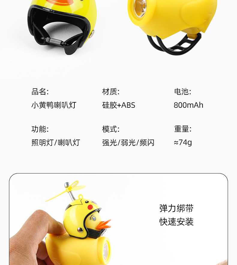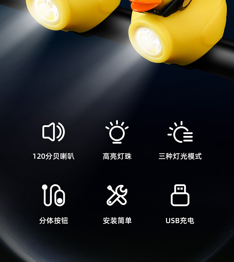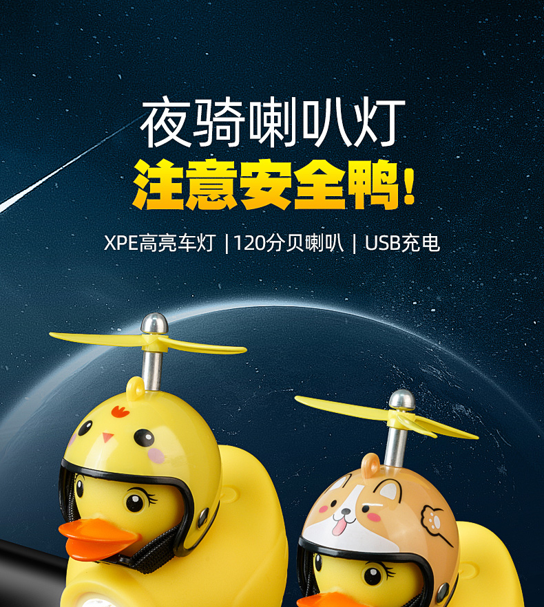Bicycle Night Riding Light Universal Wind-Breaking Duck Children's Balance Bike Light Night Riding Little Yellow Duck Horn Light Little Duck Bell