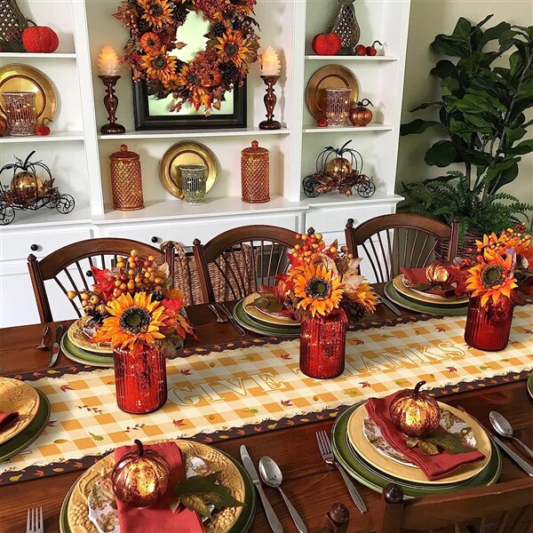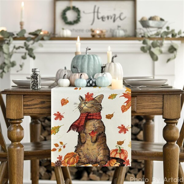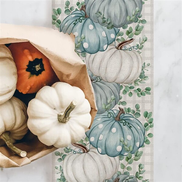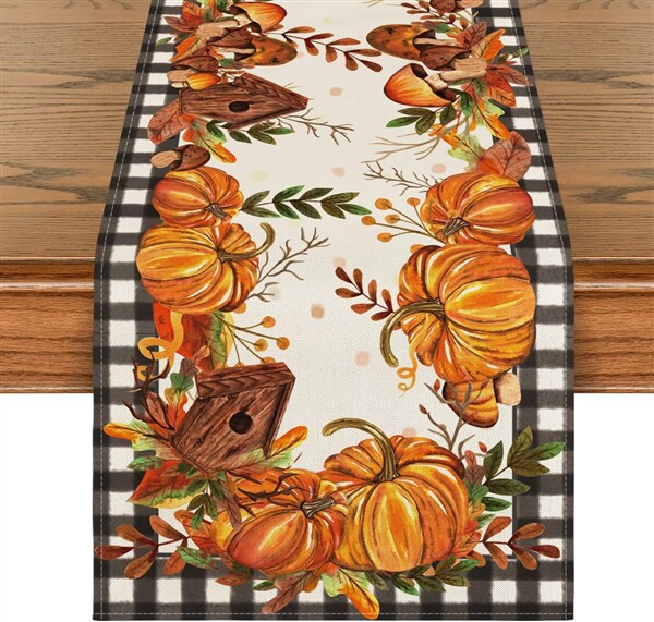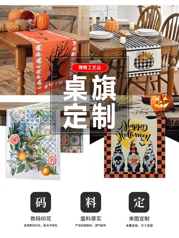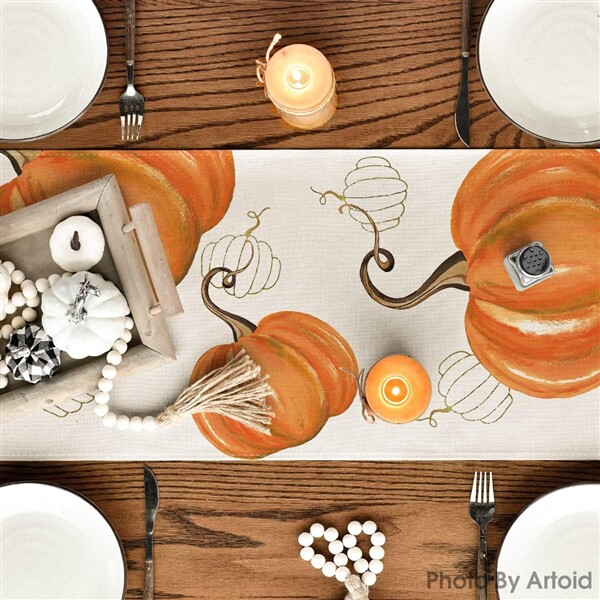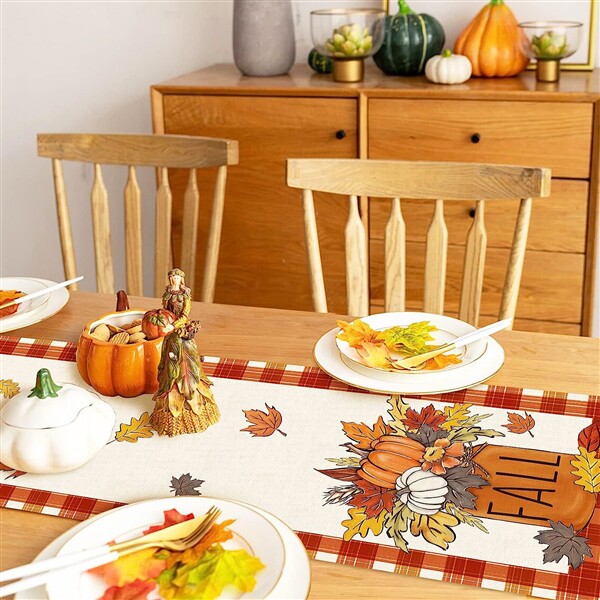 Autumn thanksgiving atmosphere decoration tablecloth coffee table tv cabinet cover pumpkin maple leaf printed polyester table runner