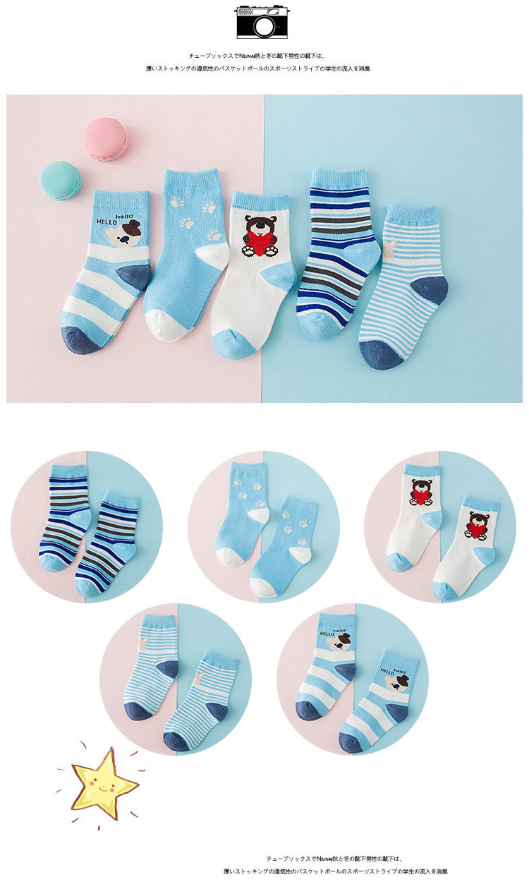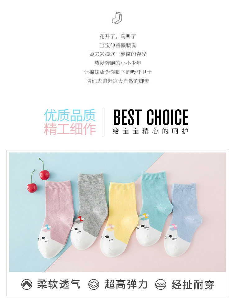 Children's socks pure cotton 1-3-5-7-9 years old thin spring and autumn medium-sized children's medium tube girls baby boys socks thin summer